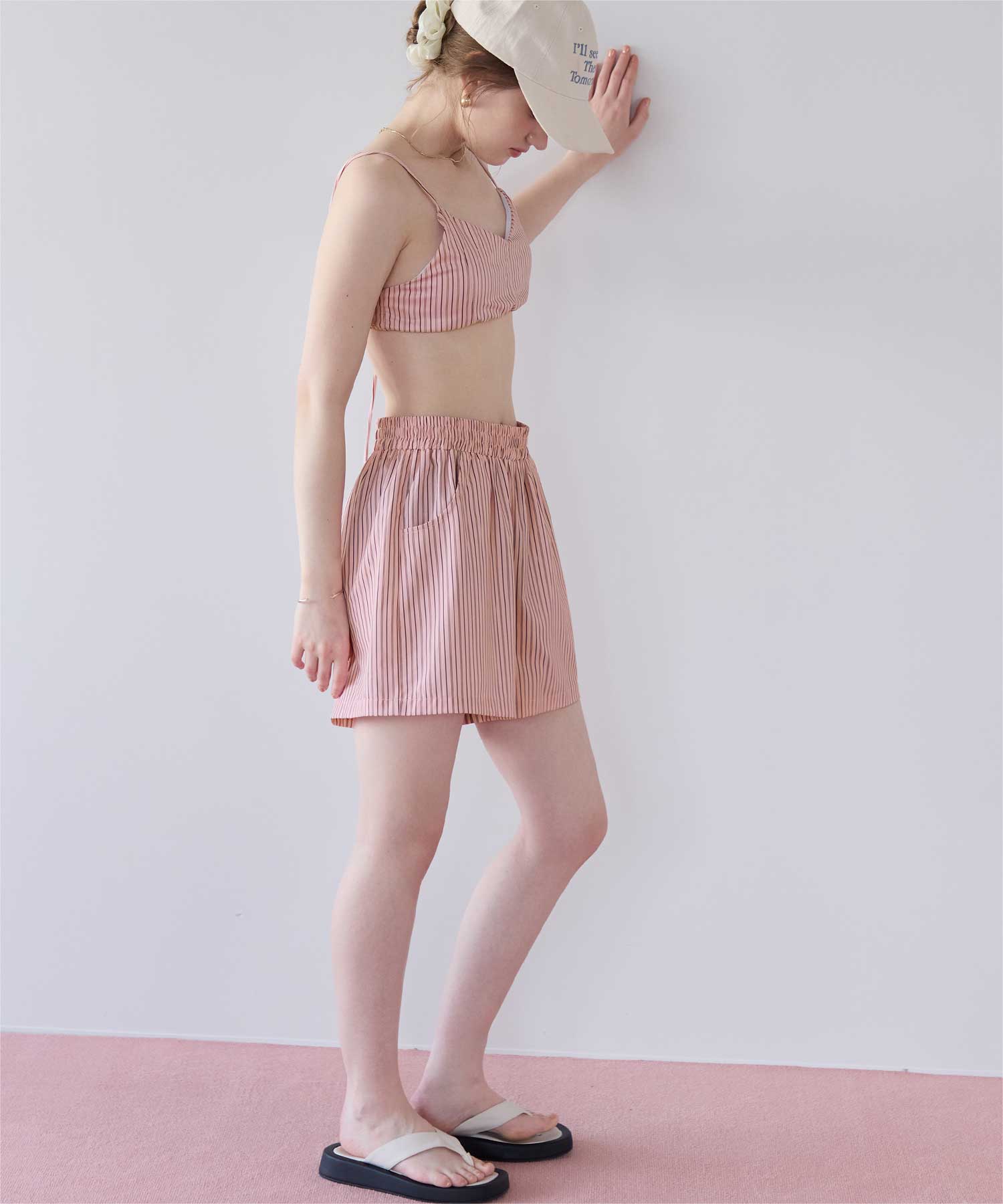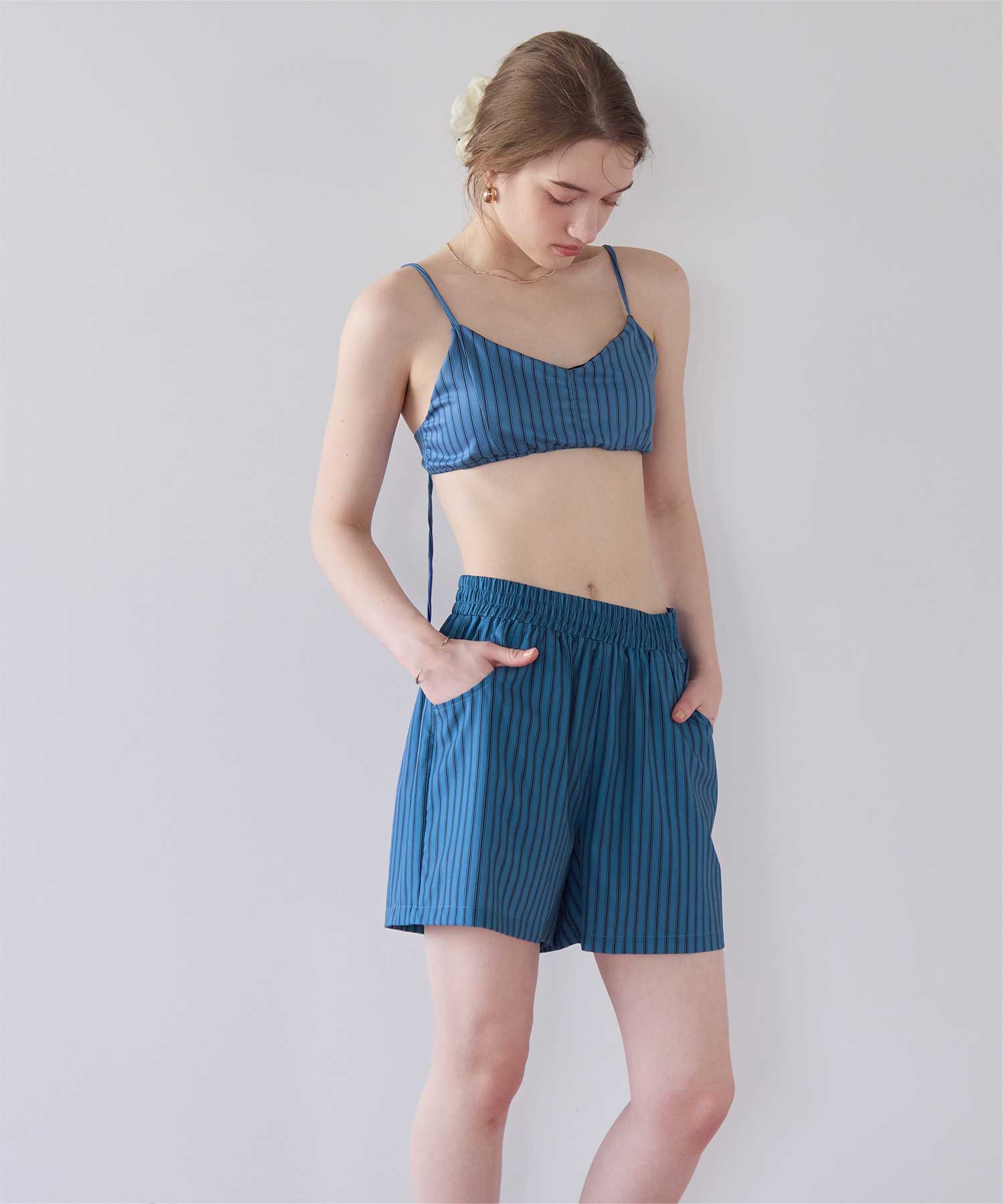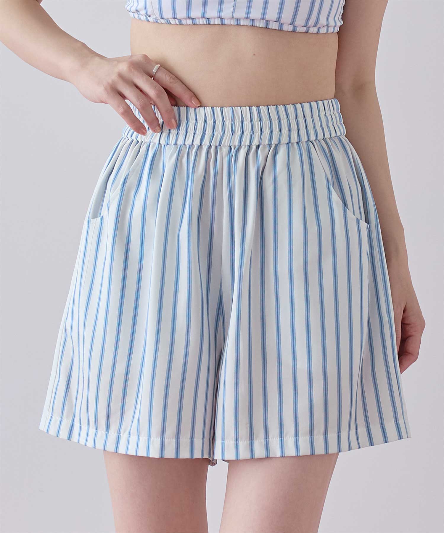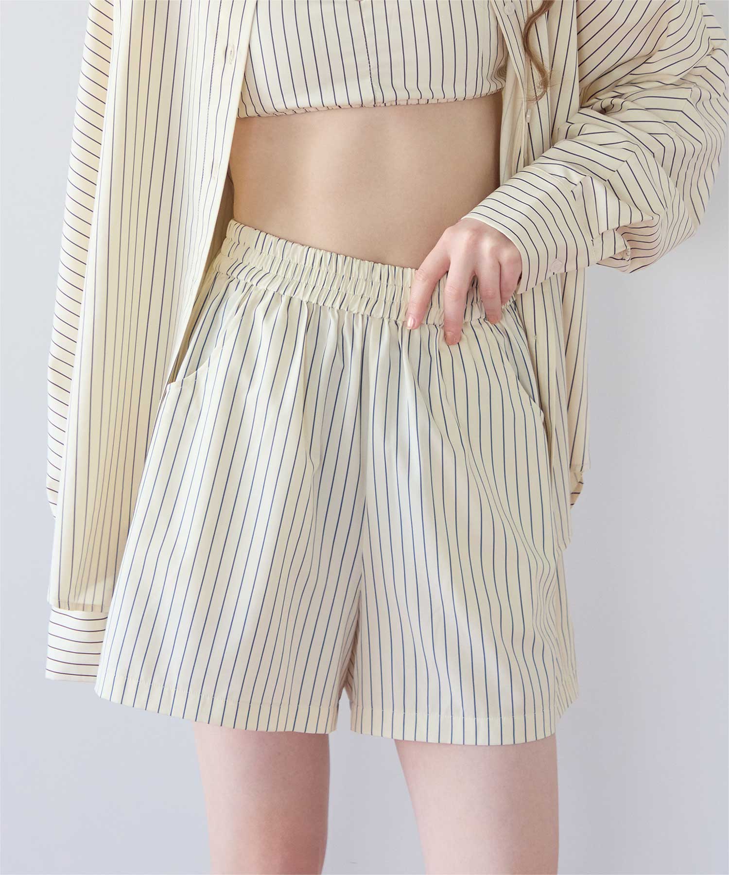 同じストライプ柄の商品展開もあるので、一緒にコーディネートできるラッシュショートパンツです◎