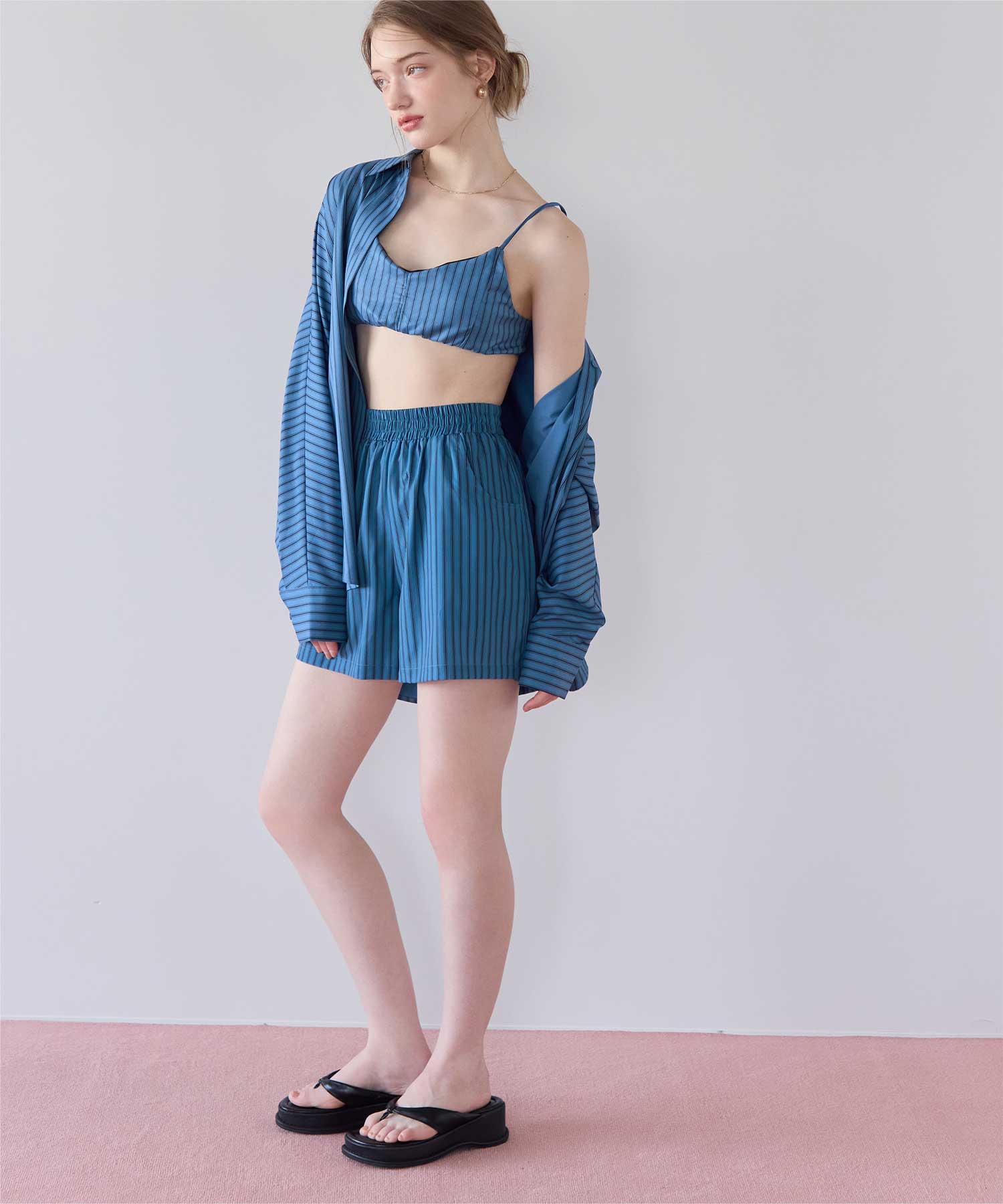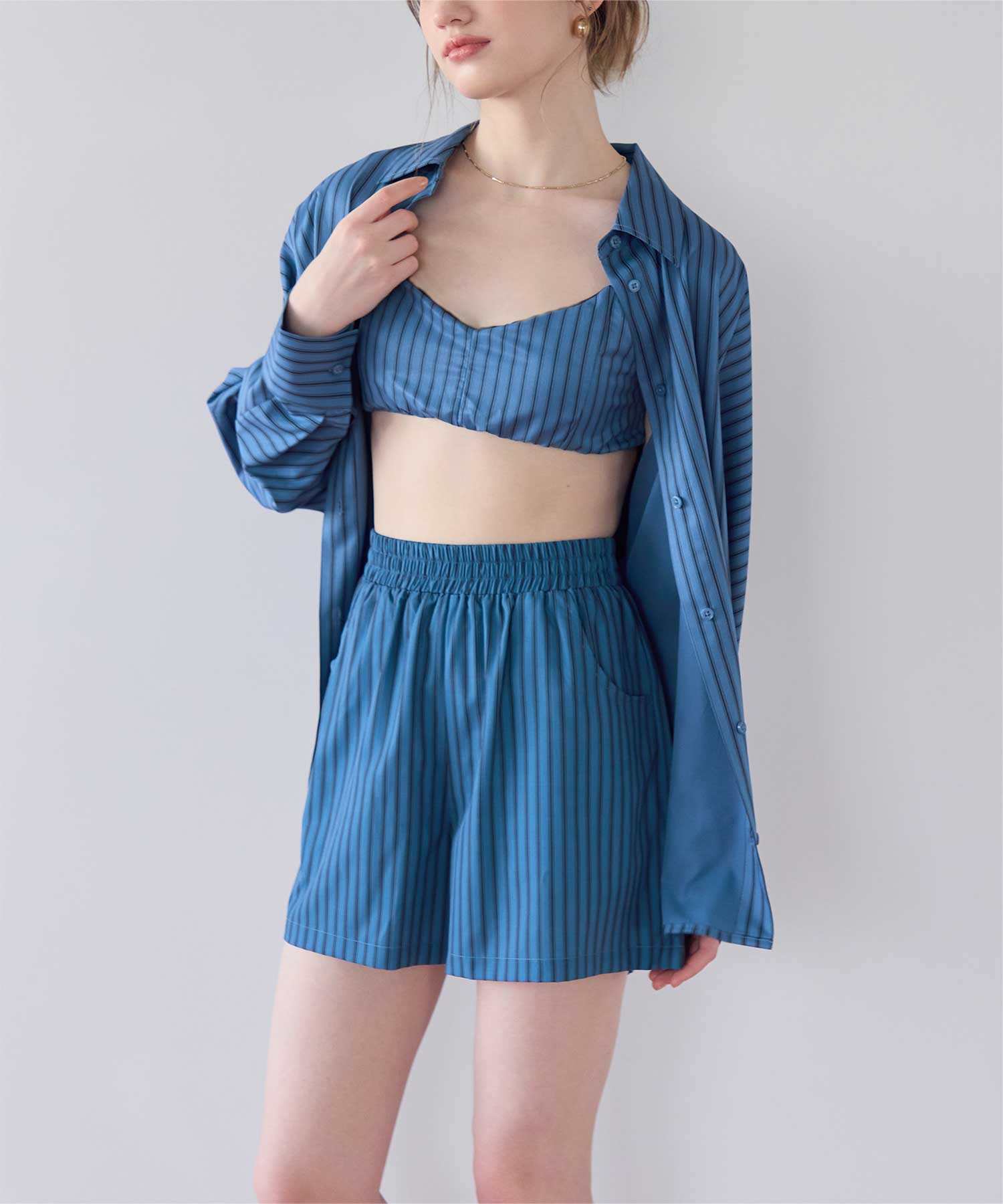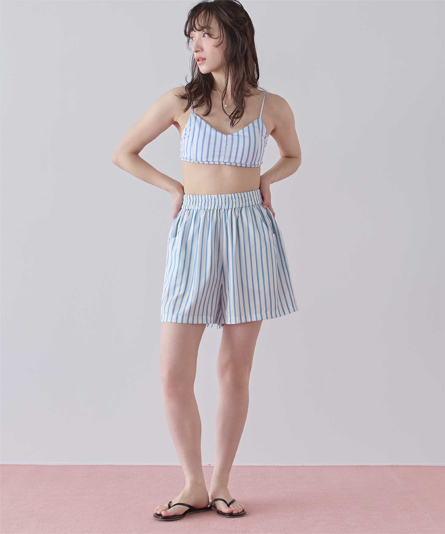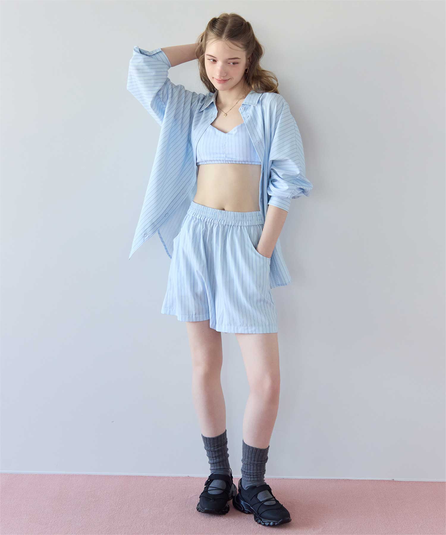 同じストライプ柄の商品展開もあるので、一緒にコーディネートできるラッシュショートパンツです◎