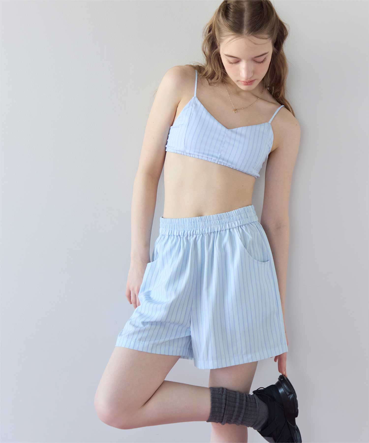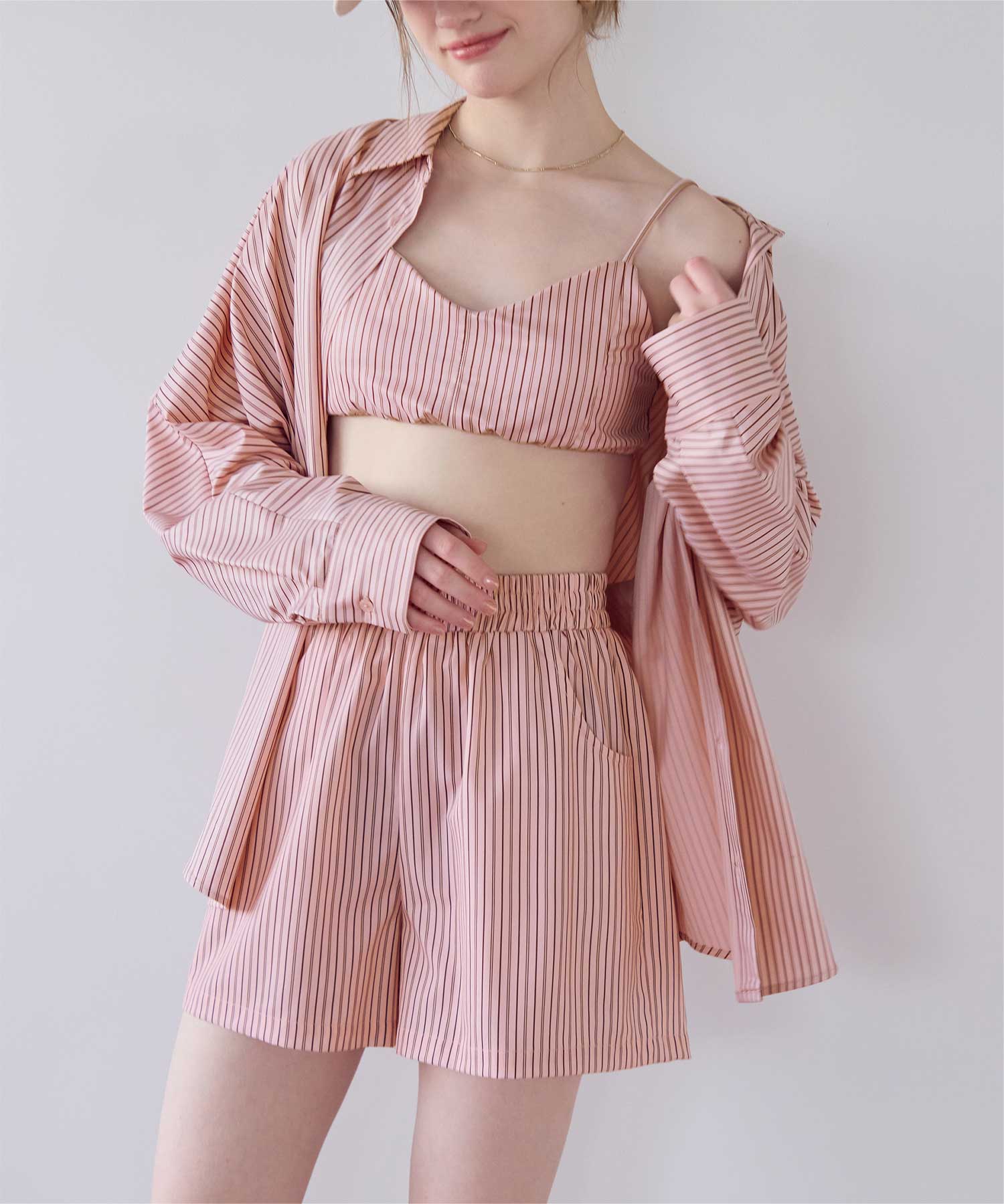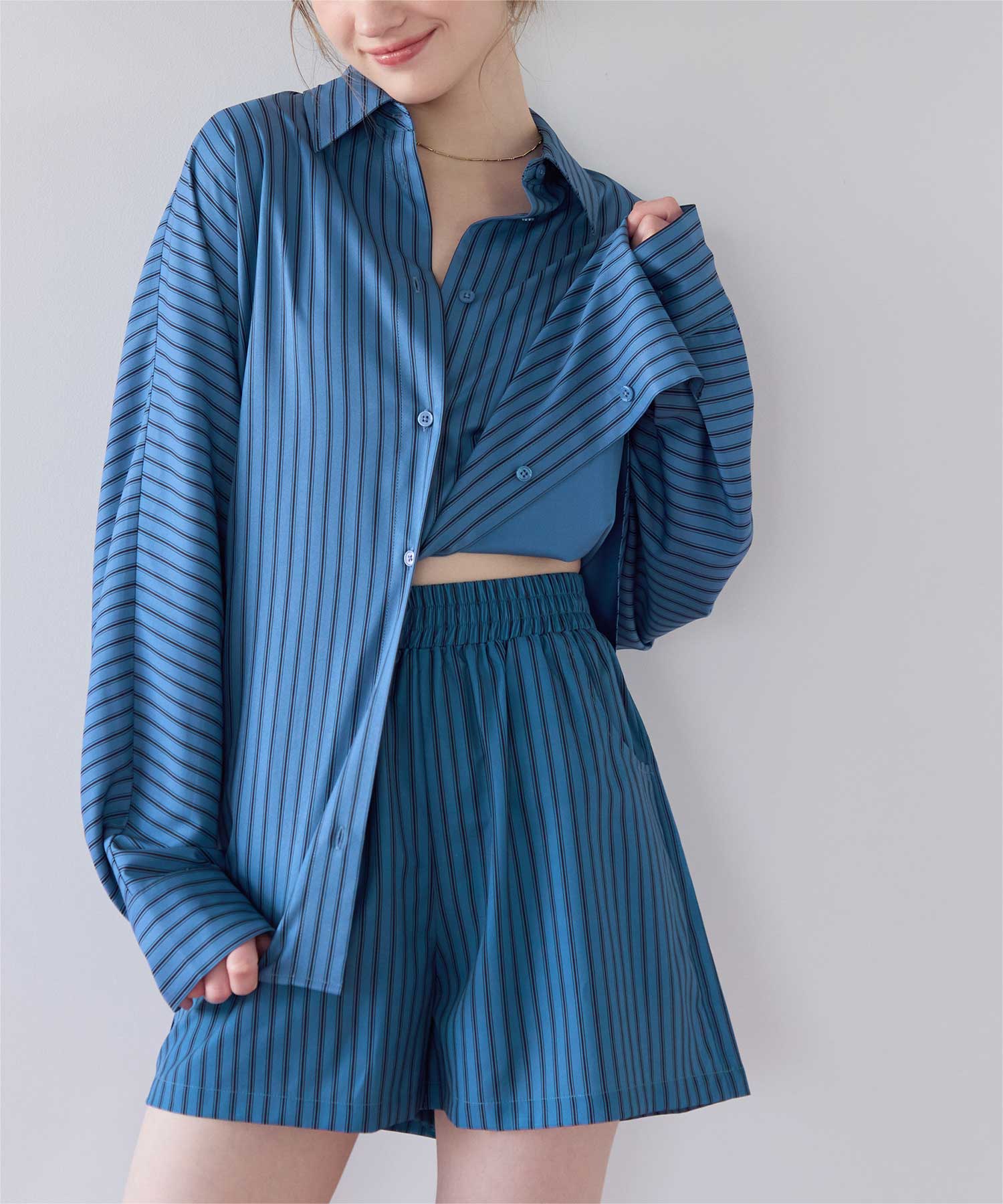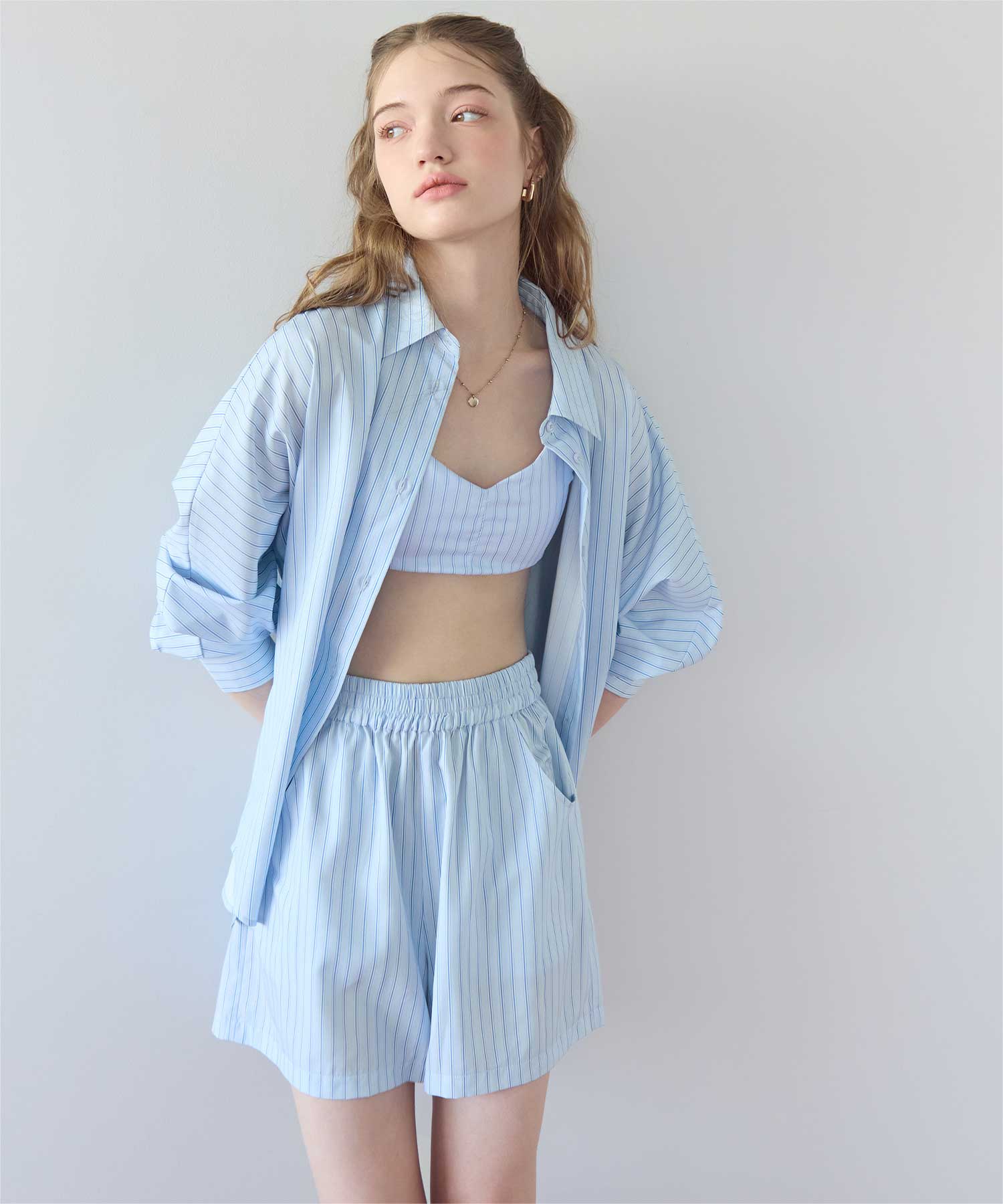同じストライプ柄の商品展開もあるので、一緒にコーディネートできるラッシュショートパンツです◎