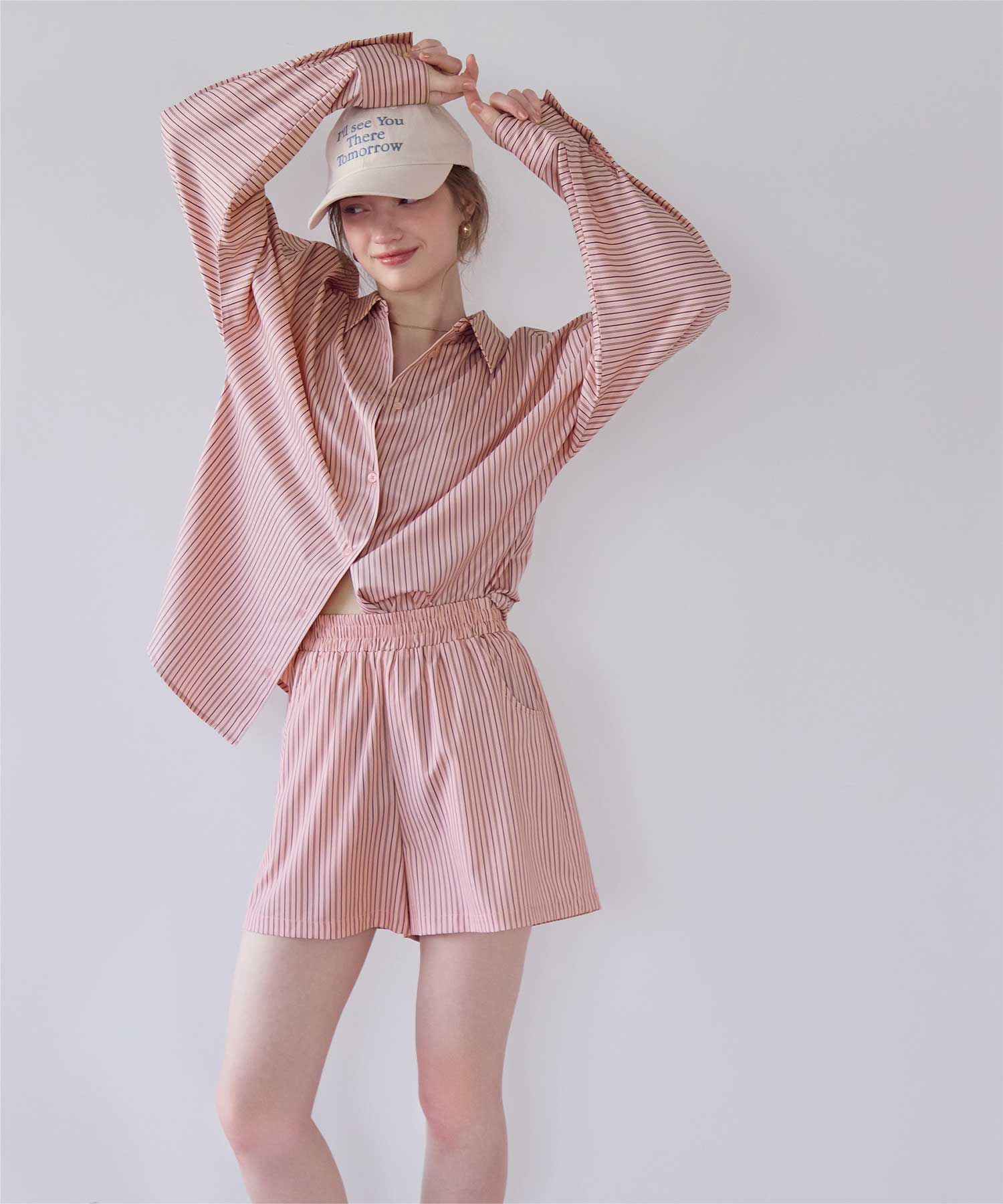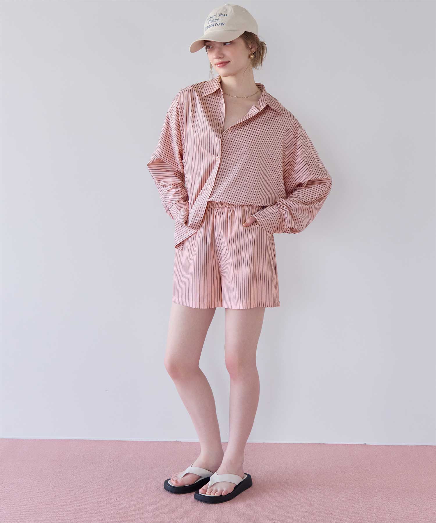 着用 / サイズ:M カラー:ピンク、ブルー、ストライプ/ブルー、ストライプ/チャコール、オフホワイト