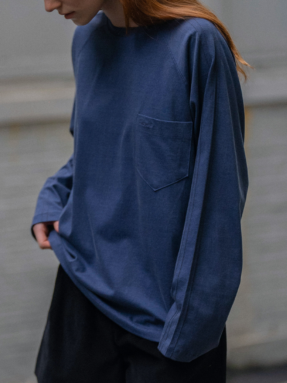 Front pocket raglan longsleeve T-shirt [KNFW03TS12]_Blue