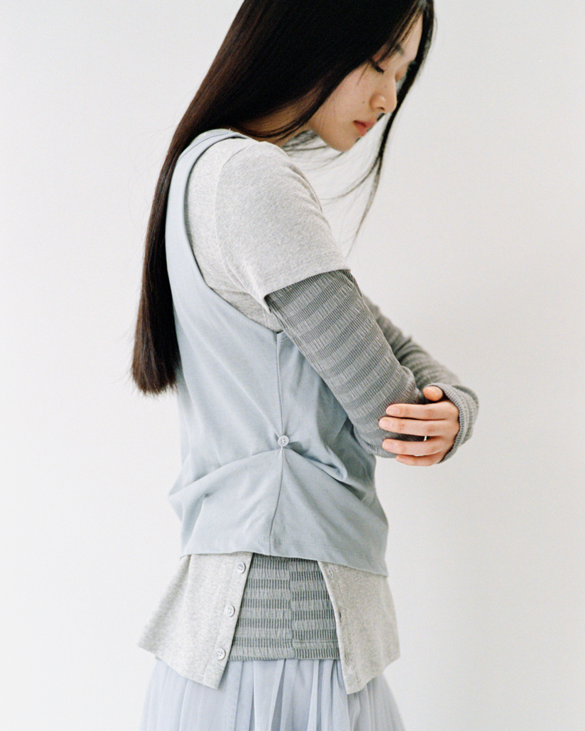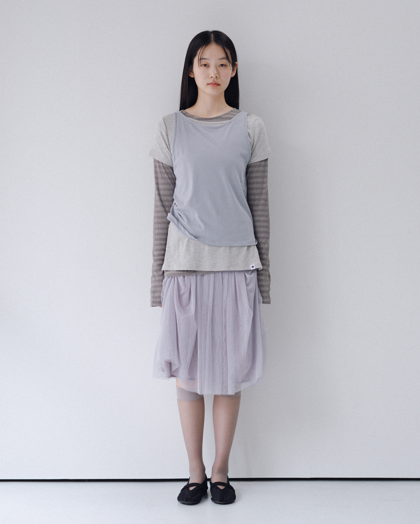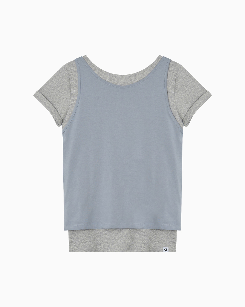 TWO-WAY LAYERED T-SHIRT, GRAY