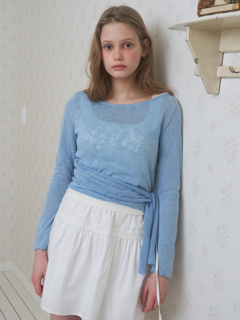 A BOAT-NECK TIE T-SHIRT_LIGHT BLUE