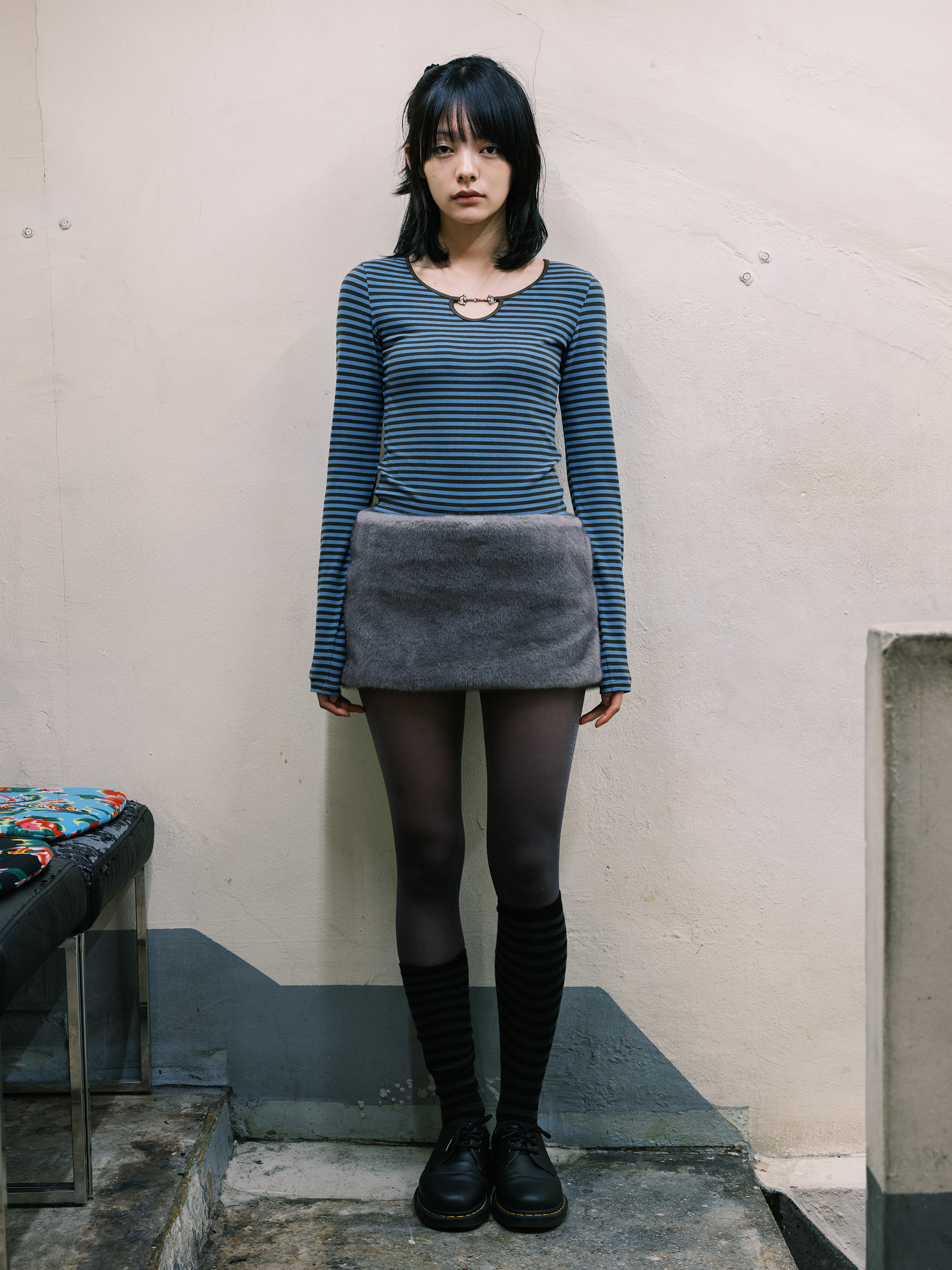 HORSEBIT DETAIL STRIPE TOP BLUE