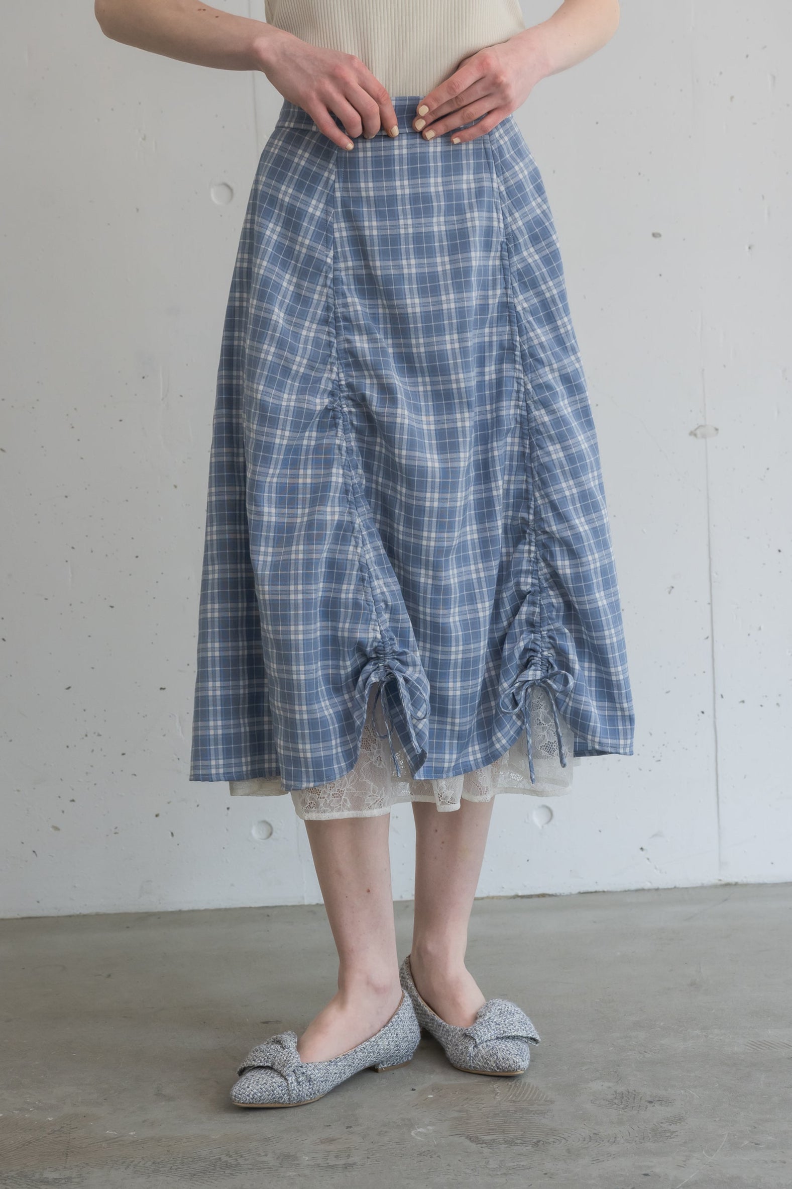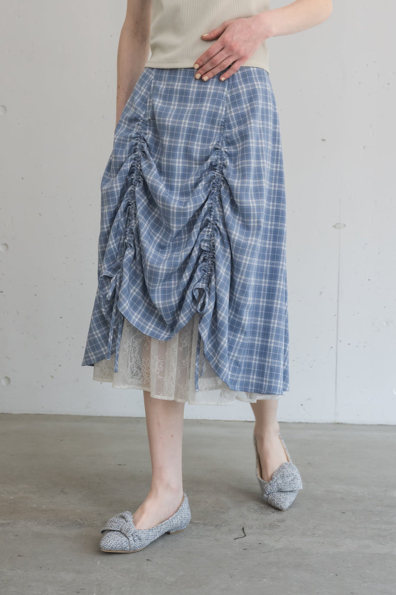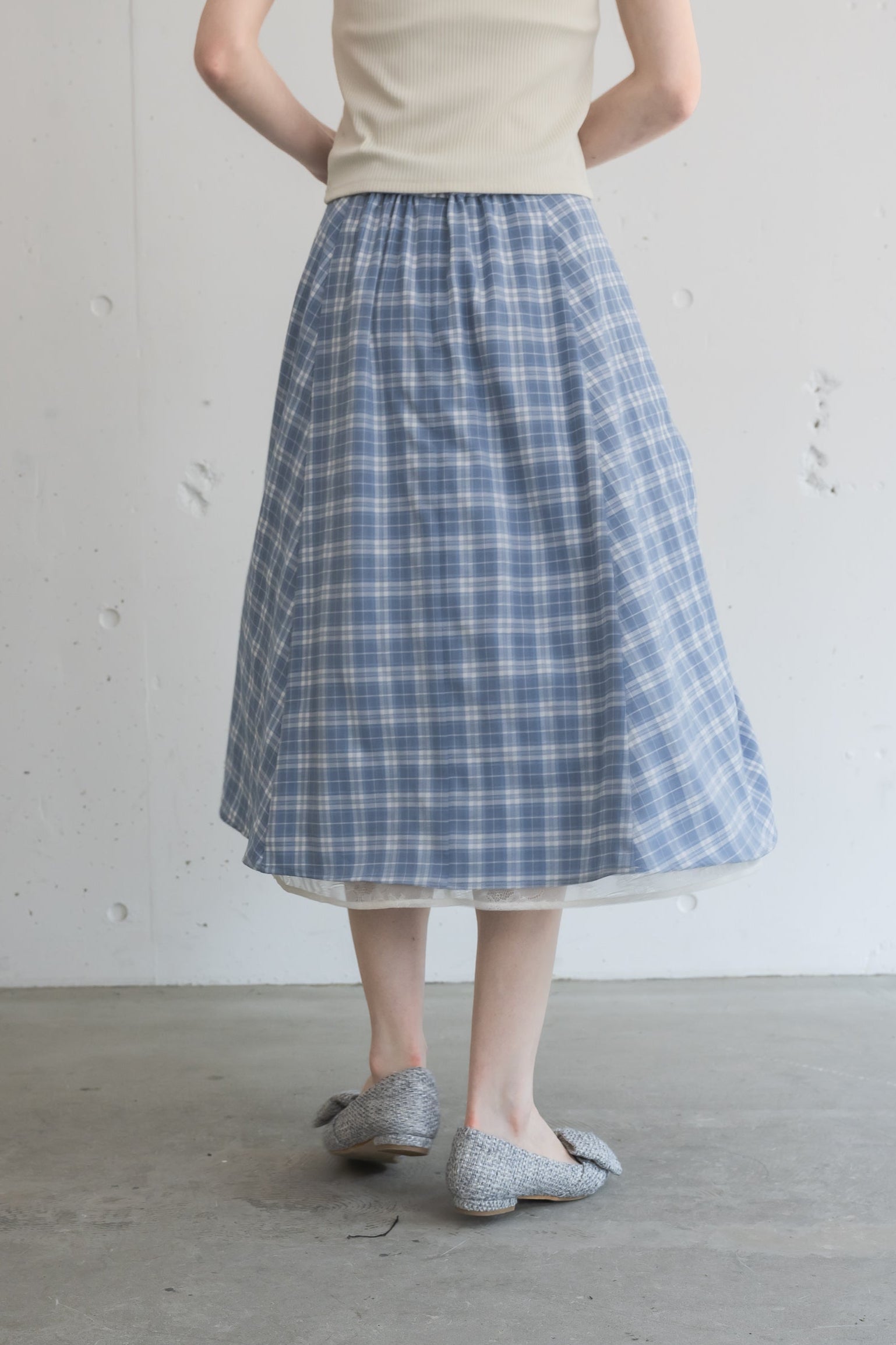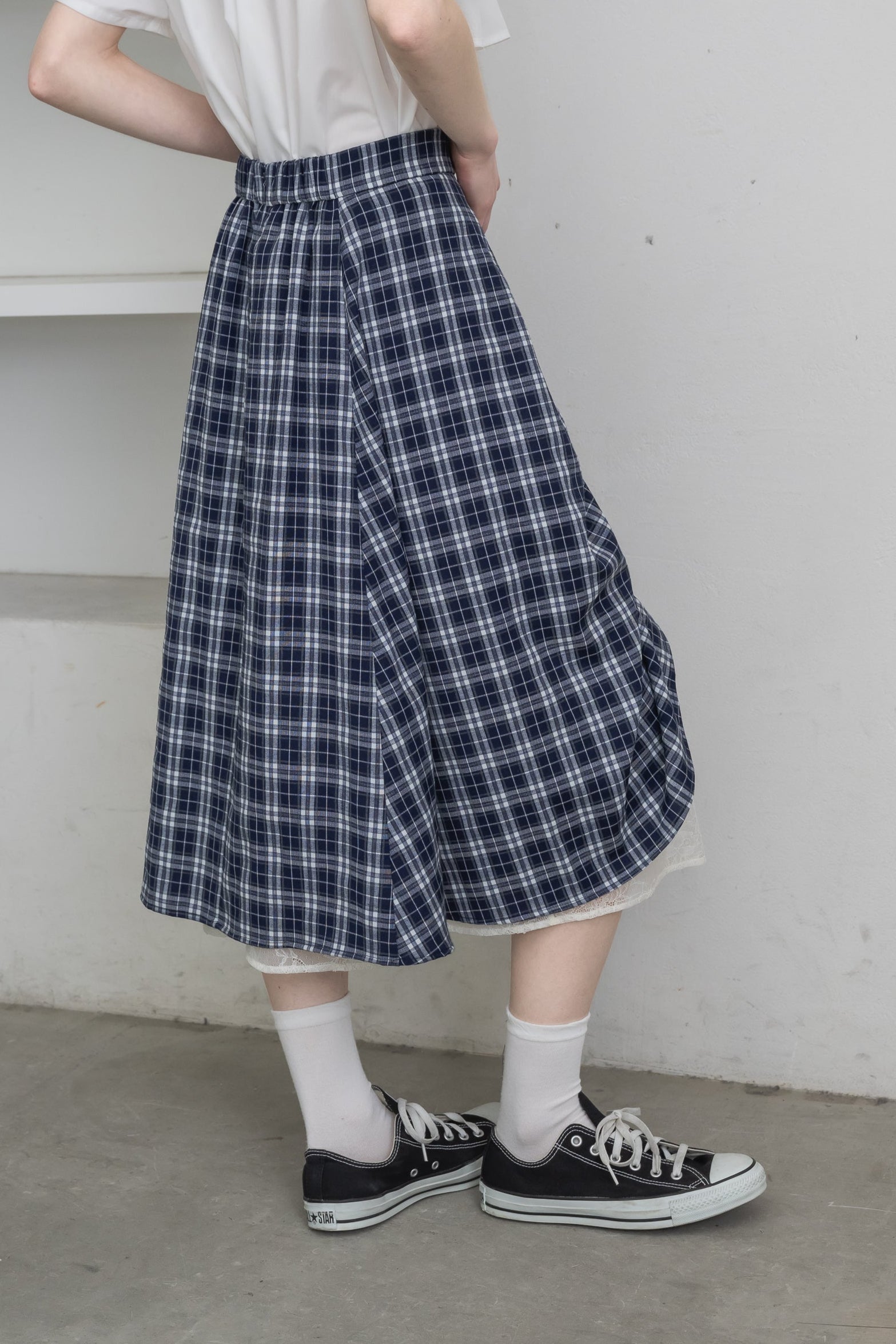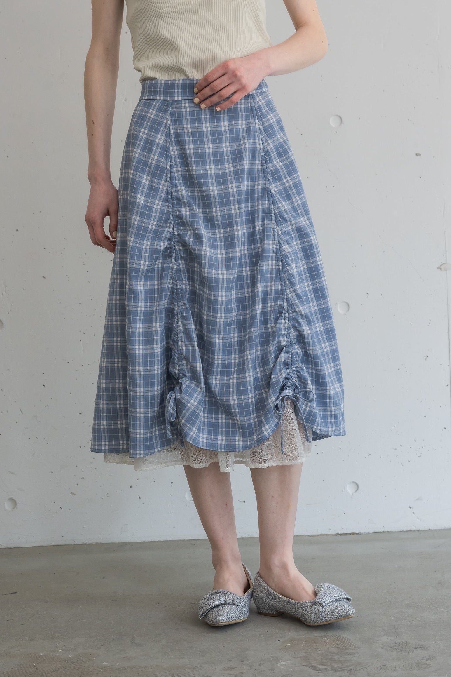 レースを忍ばせた、遊び心あるレイヤードチェックドロストスカート