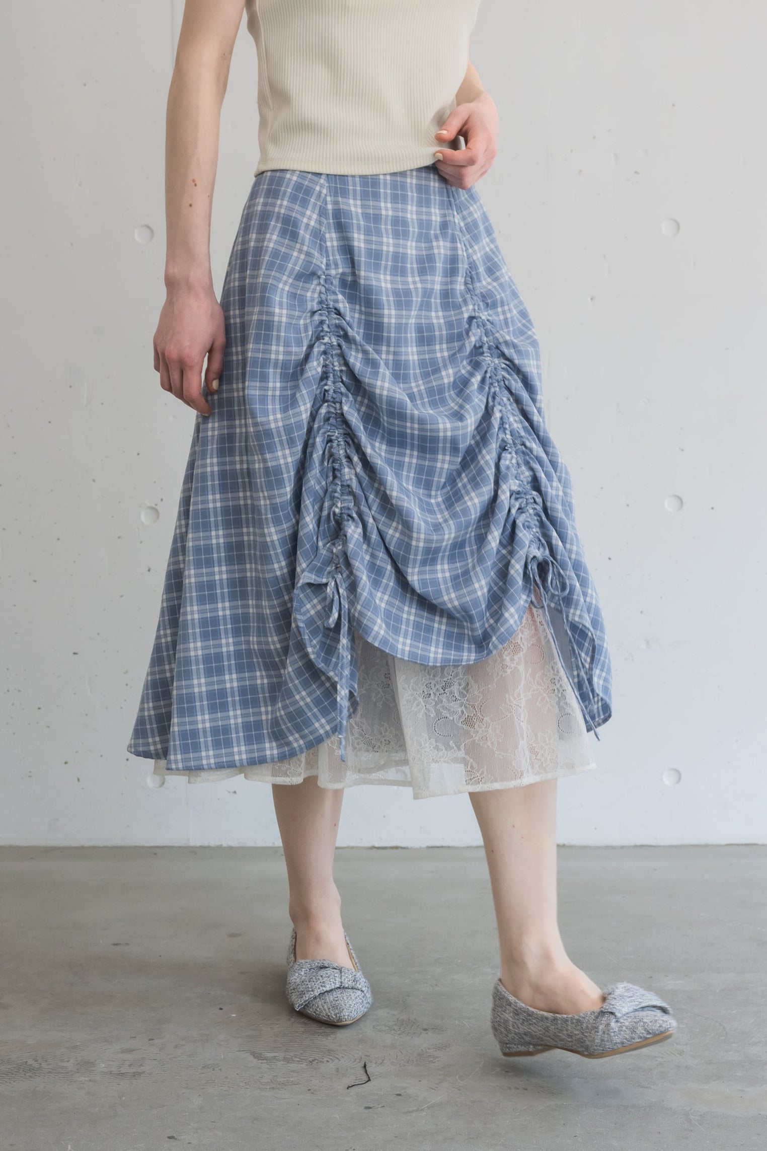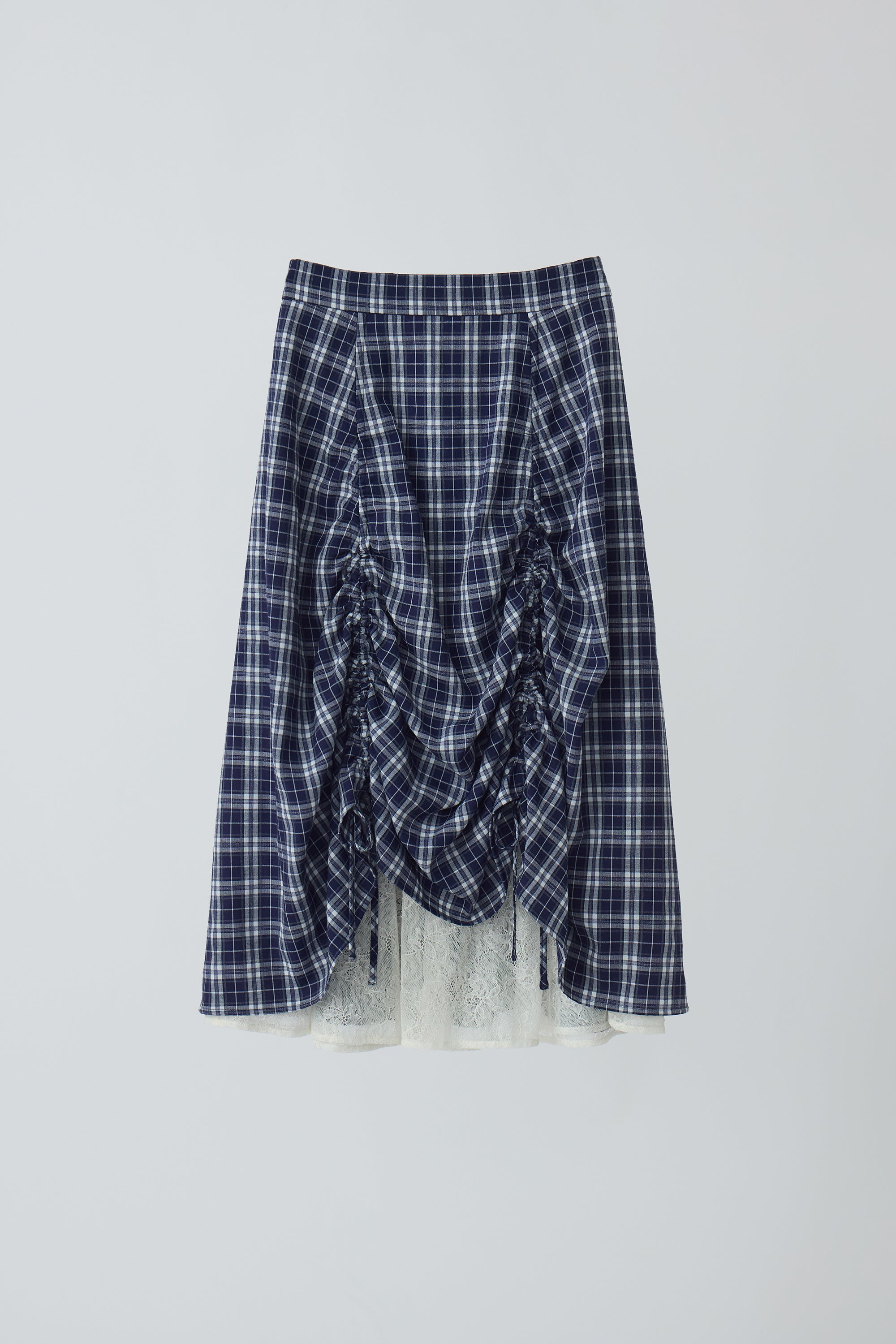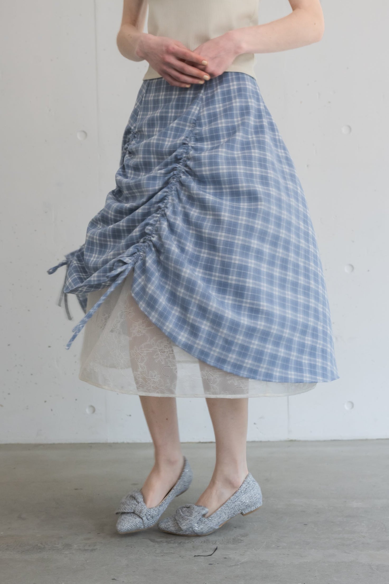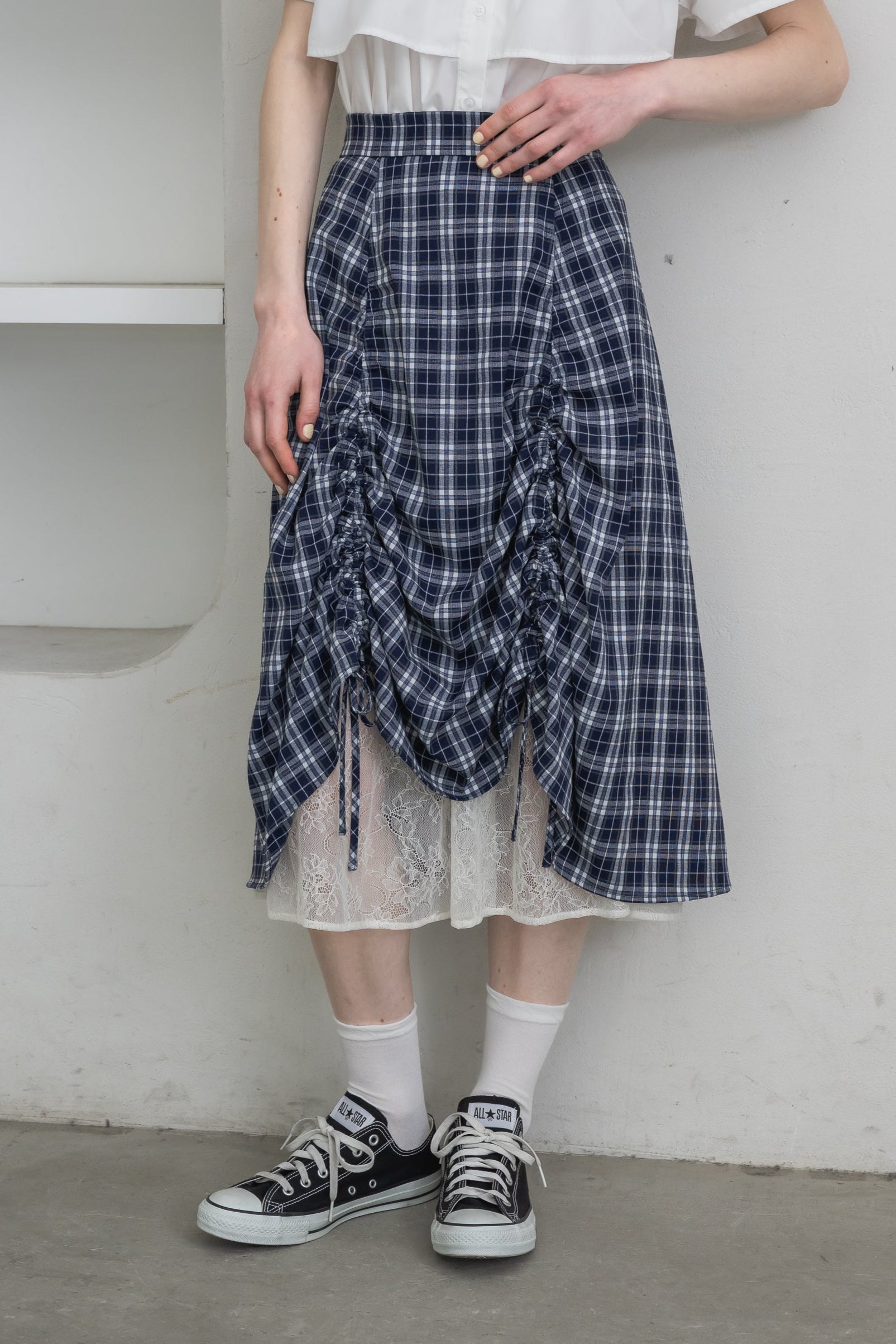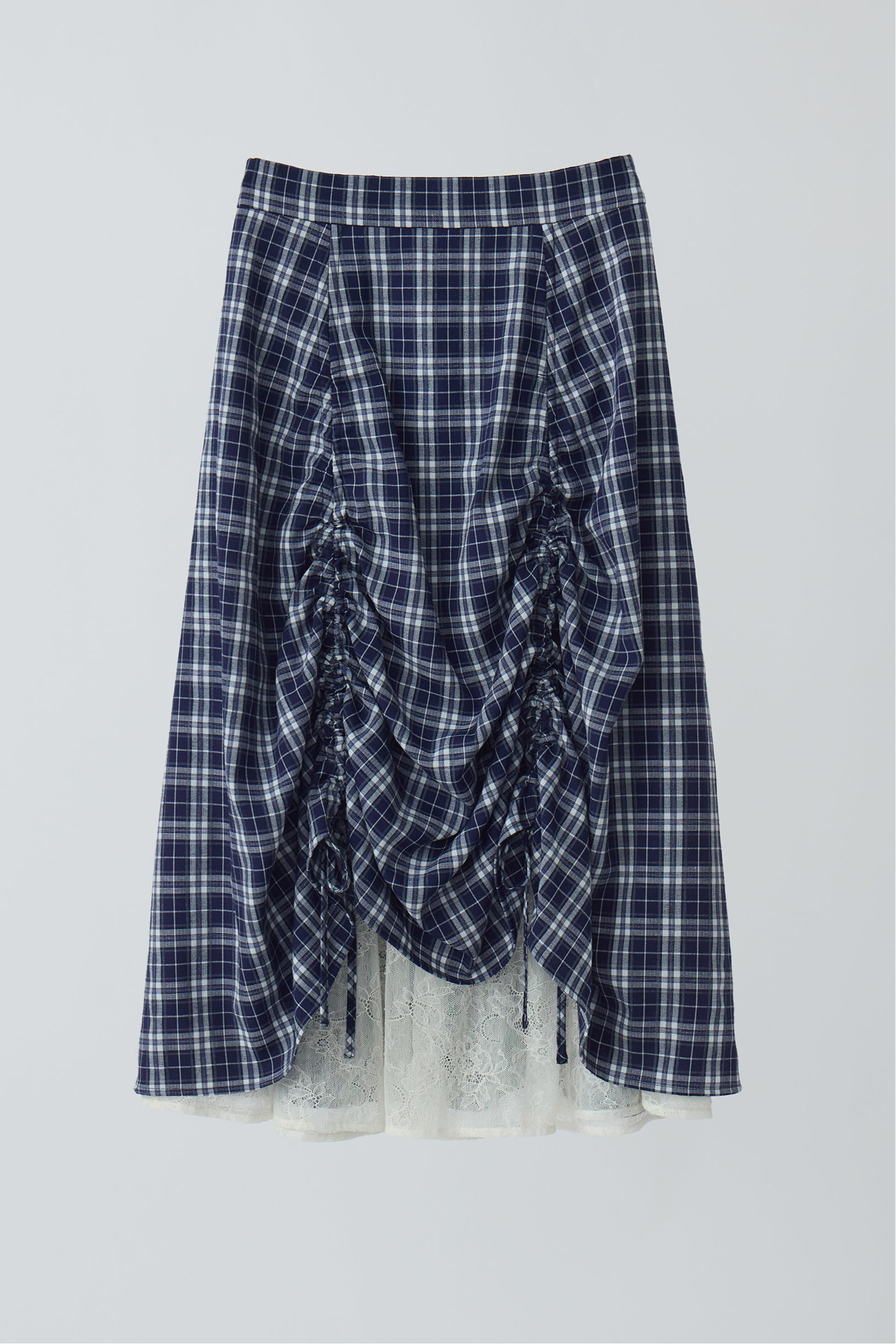 レースを忍ばせた、遊び心あるレイヤードチェックドロストスカート