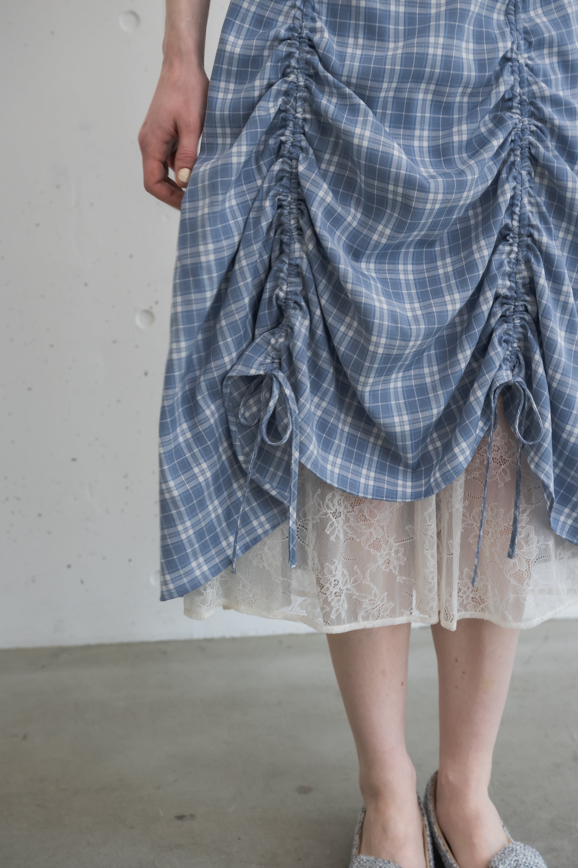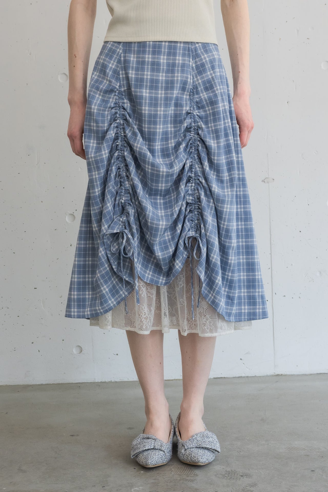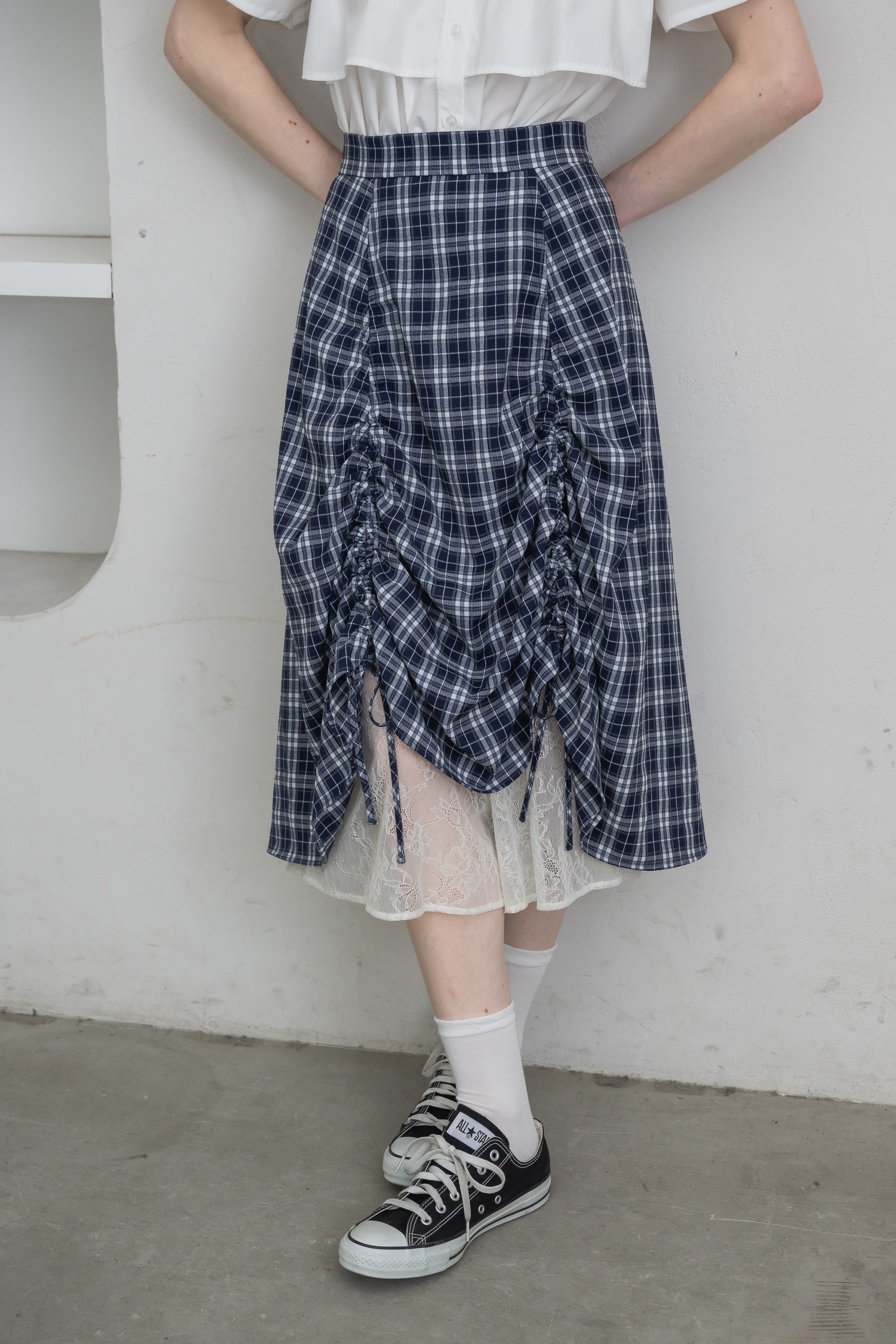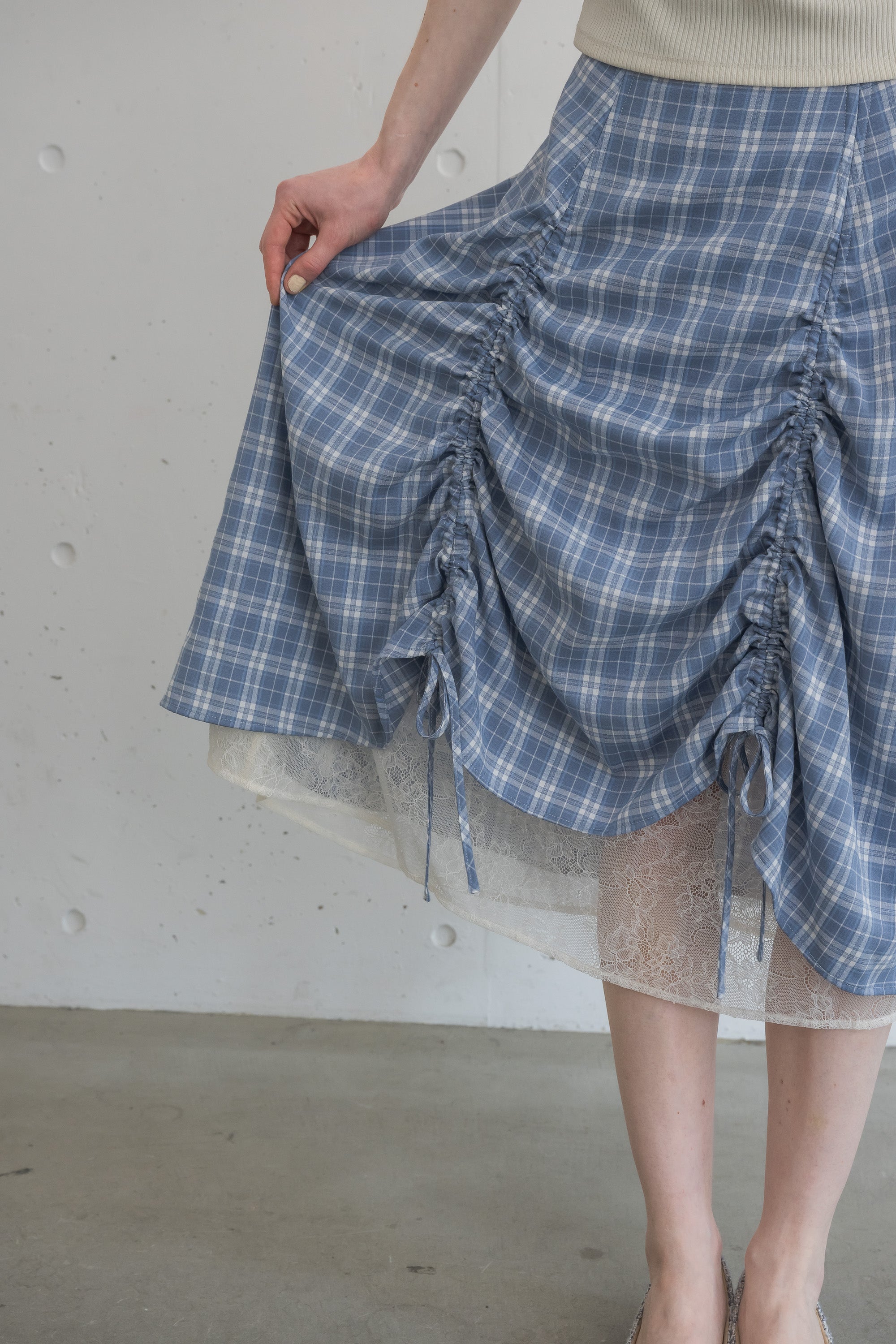 レースを忍ばせた、遊び心あるレイヤードチェックドロストスカート