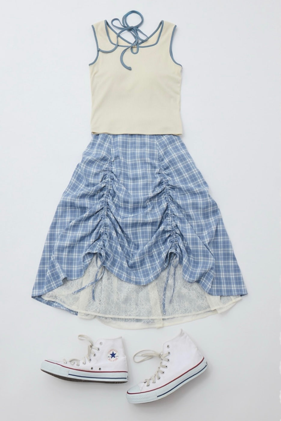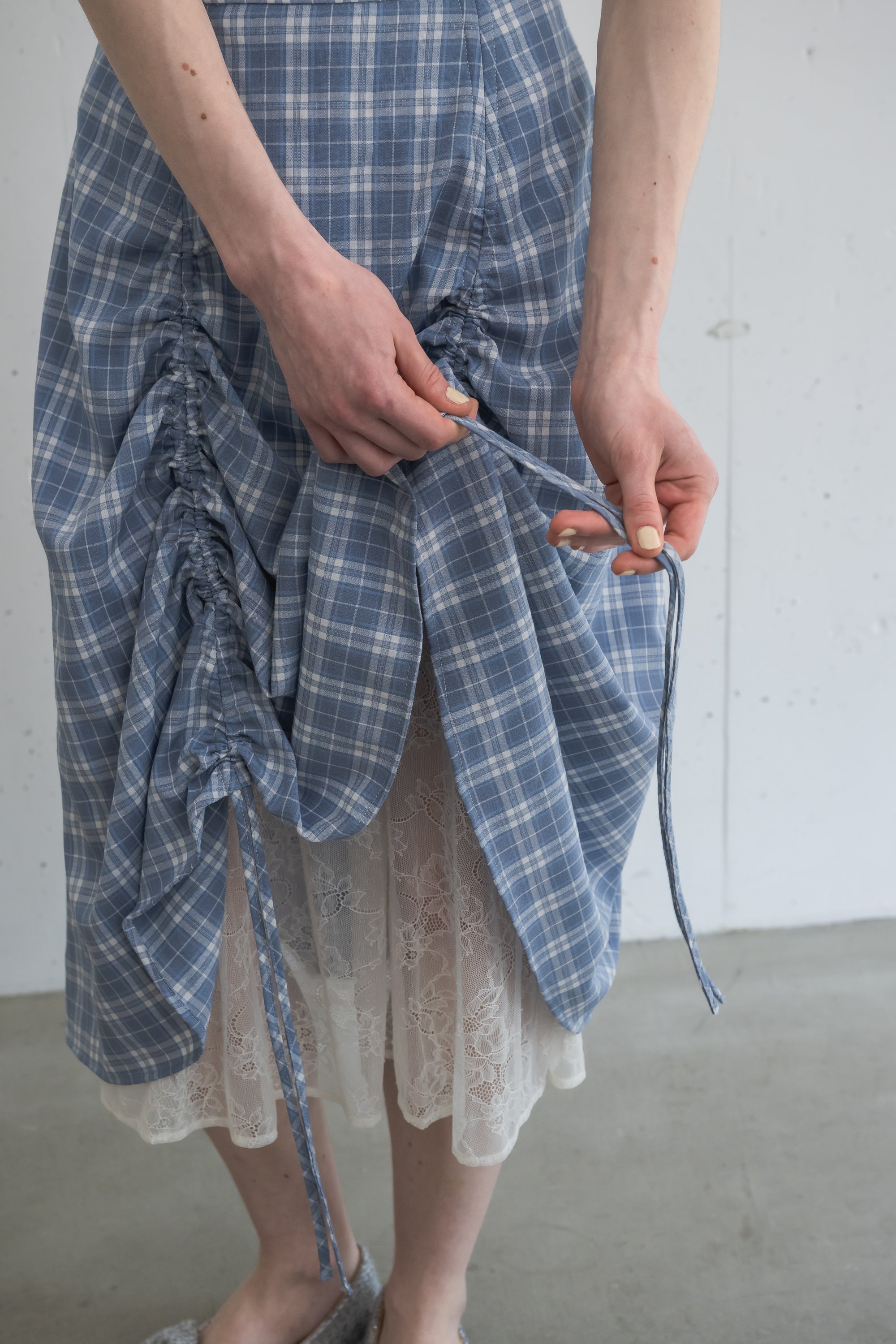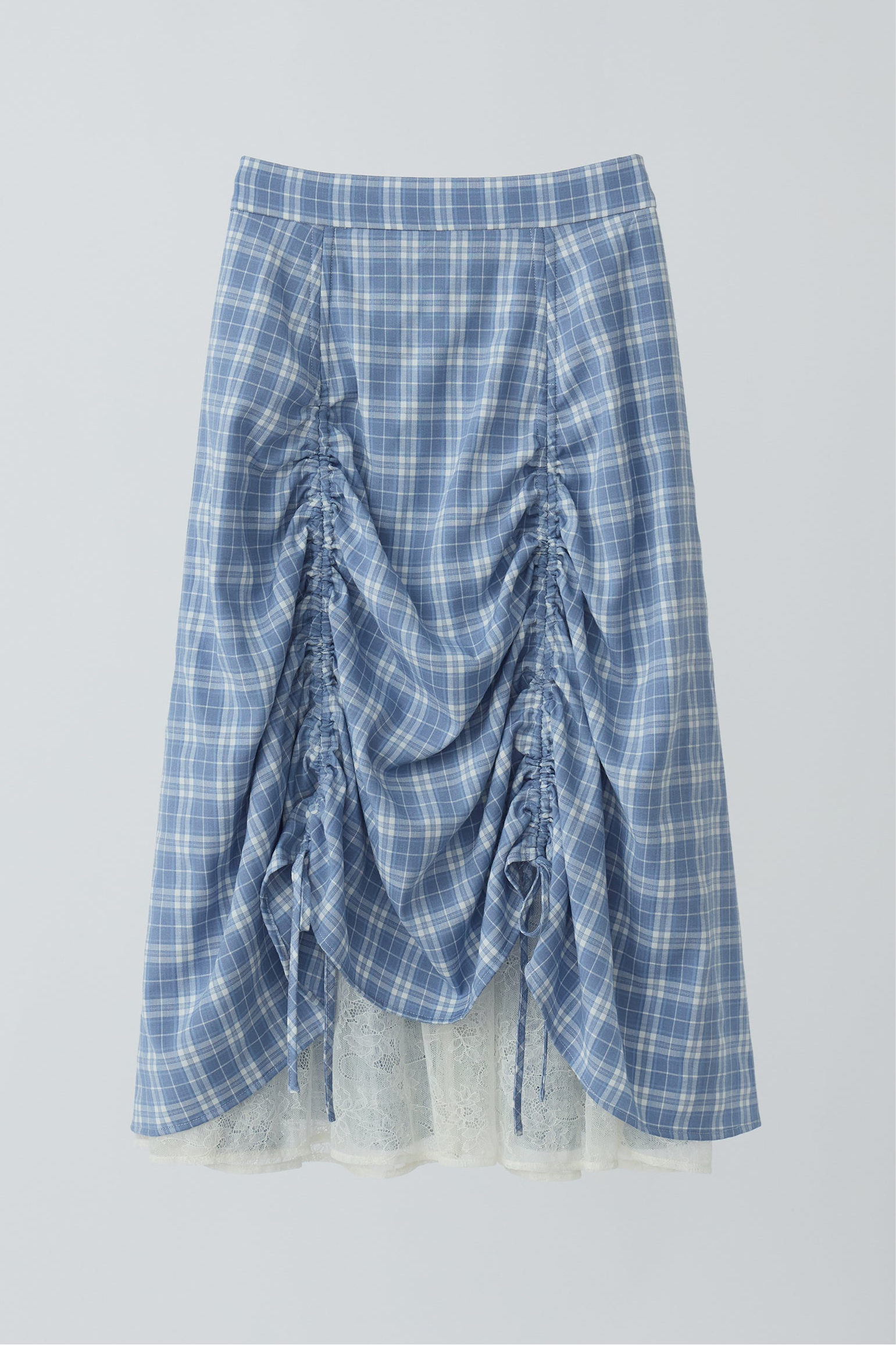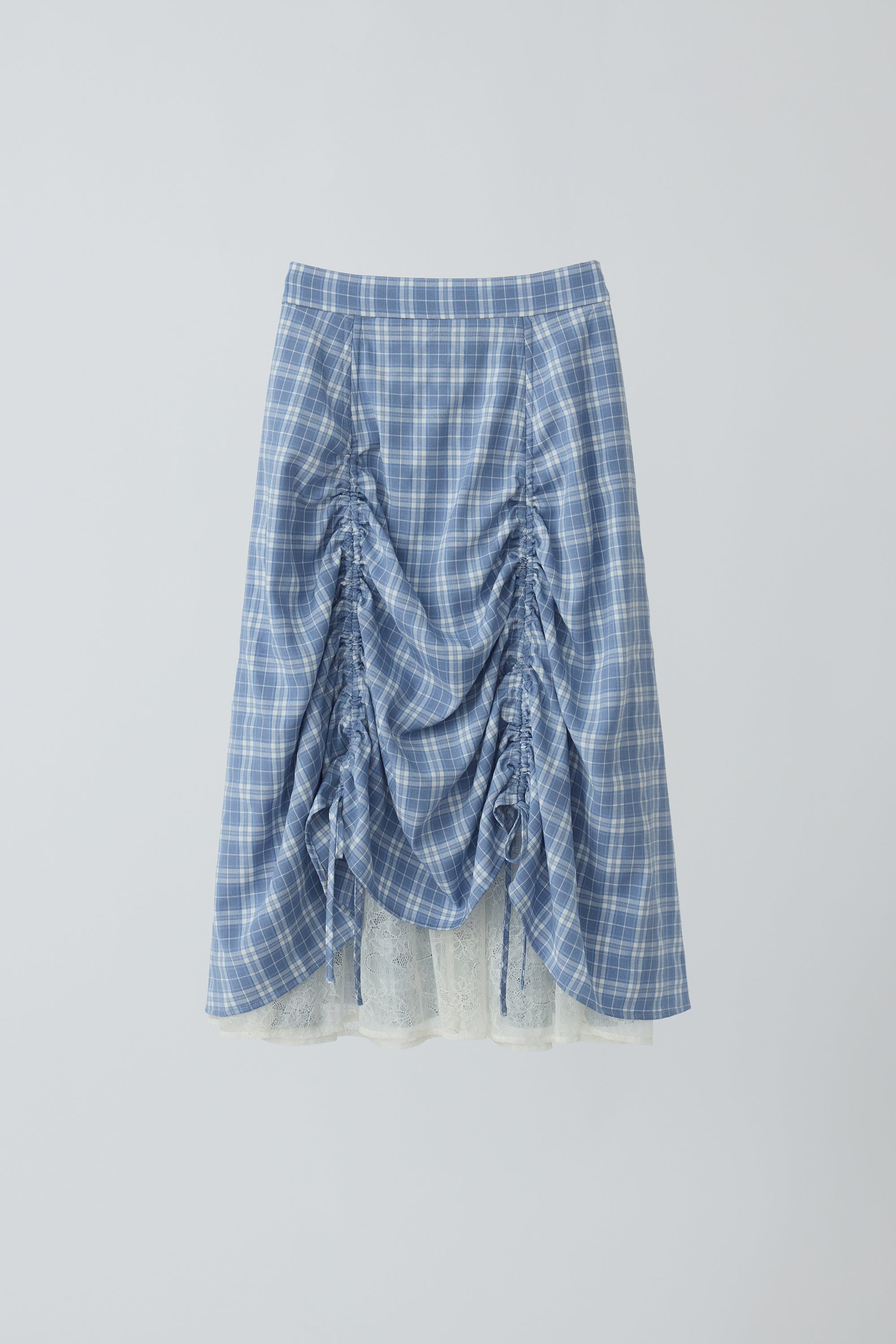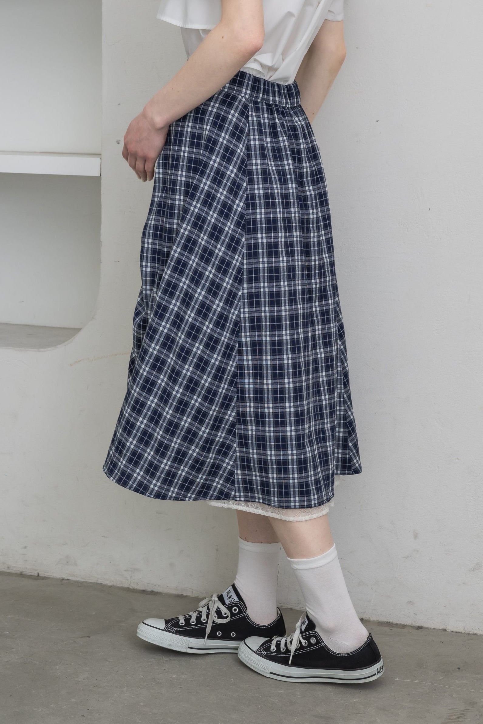 レースを忍ばせた、遊び心あるレイヤードチェックドロストスカート