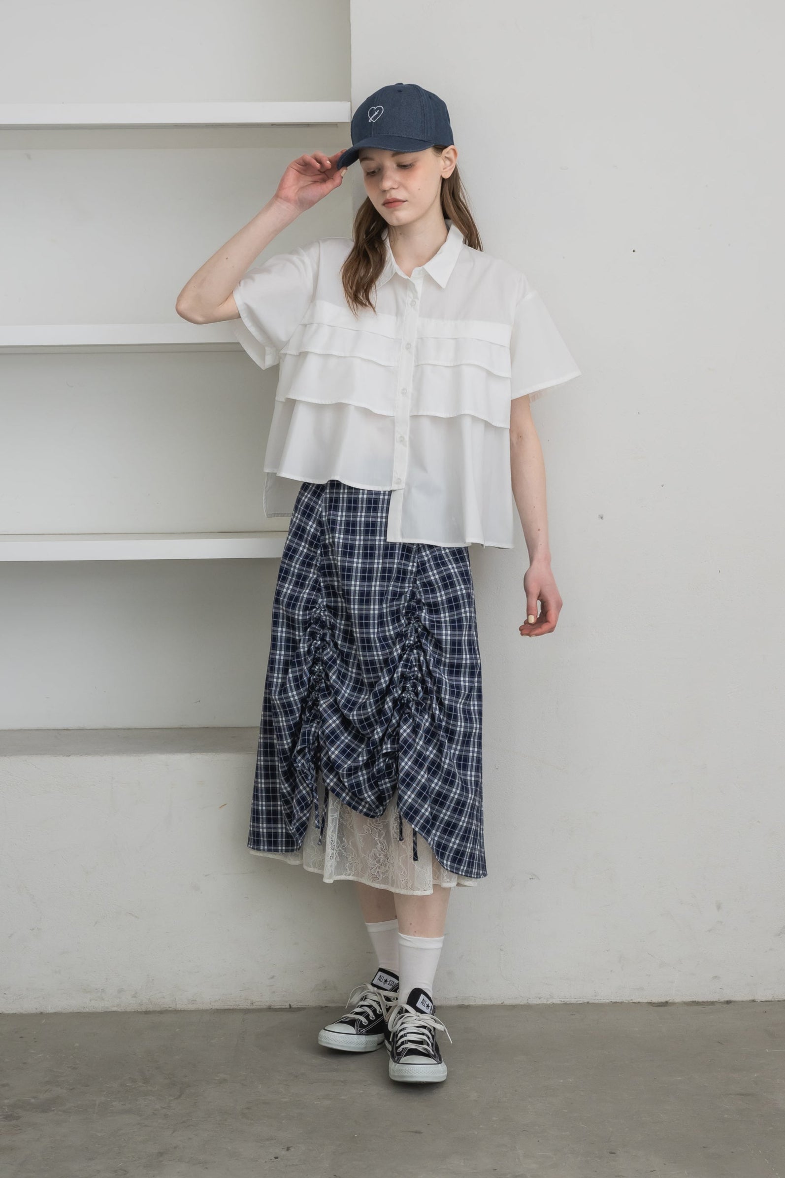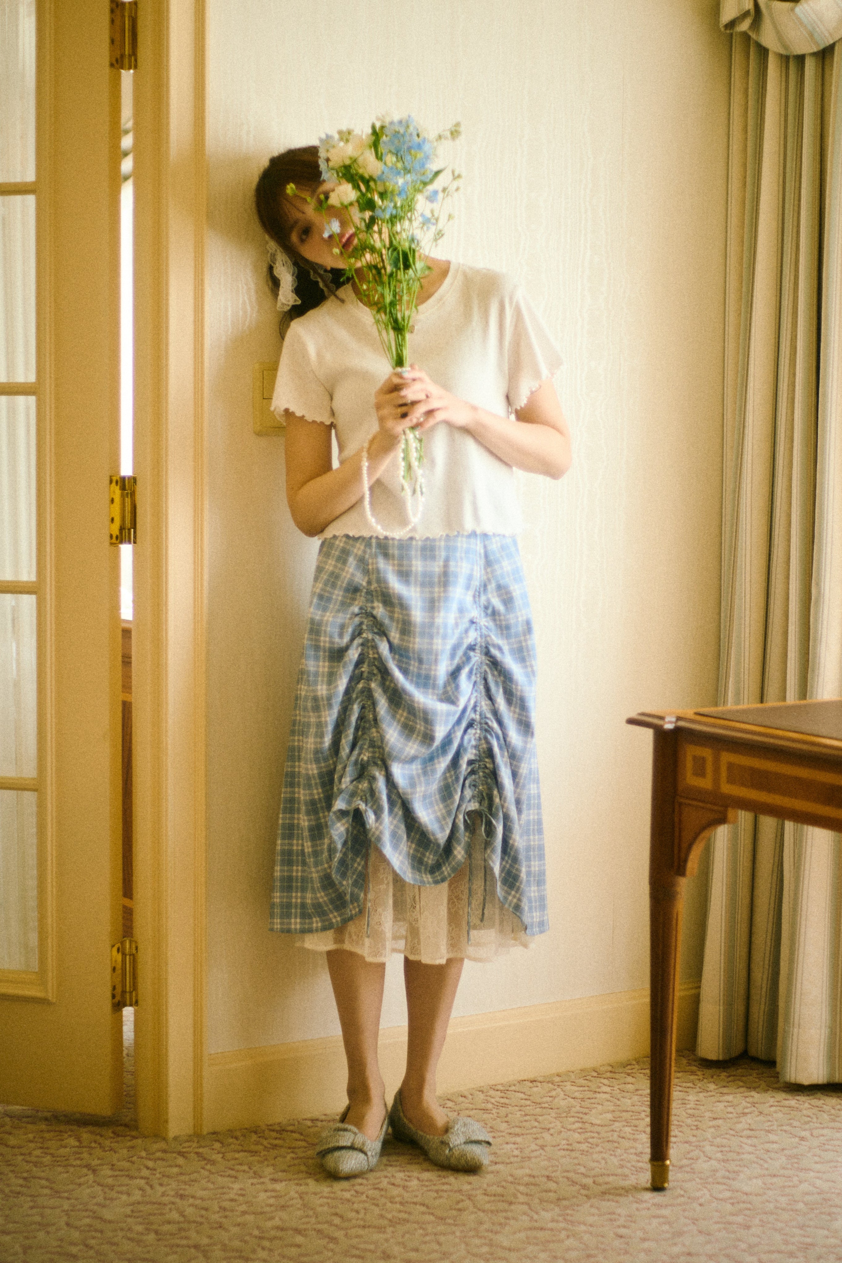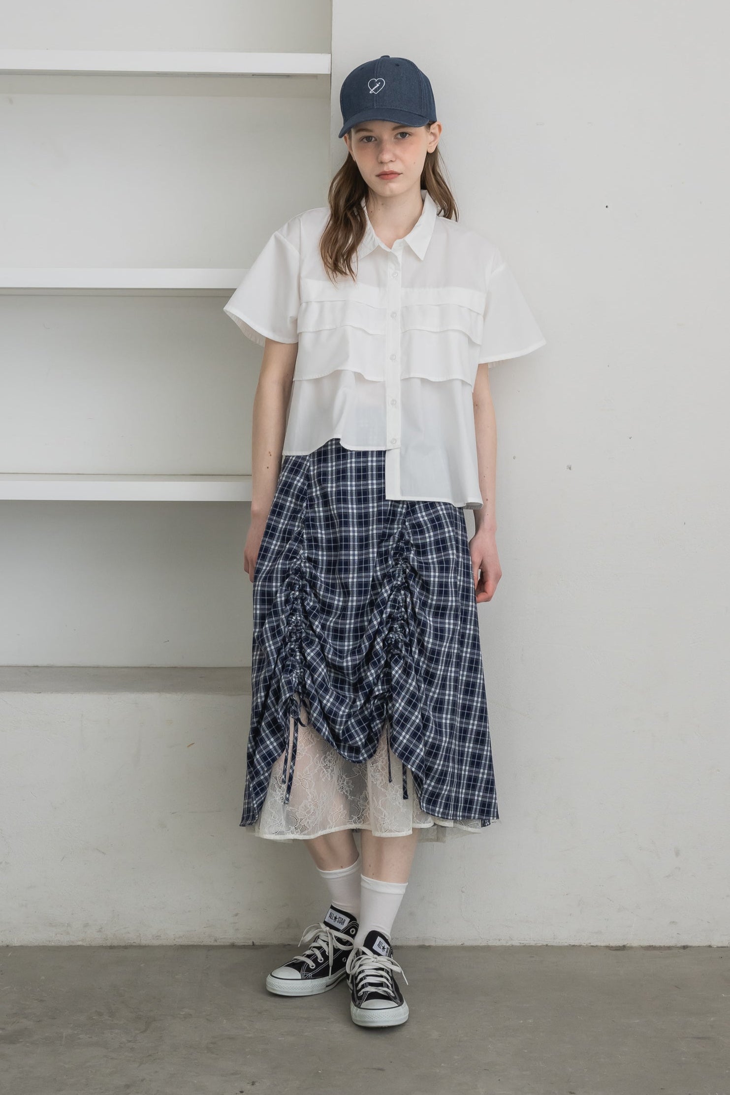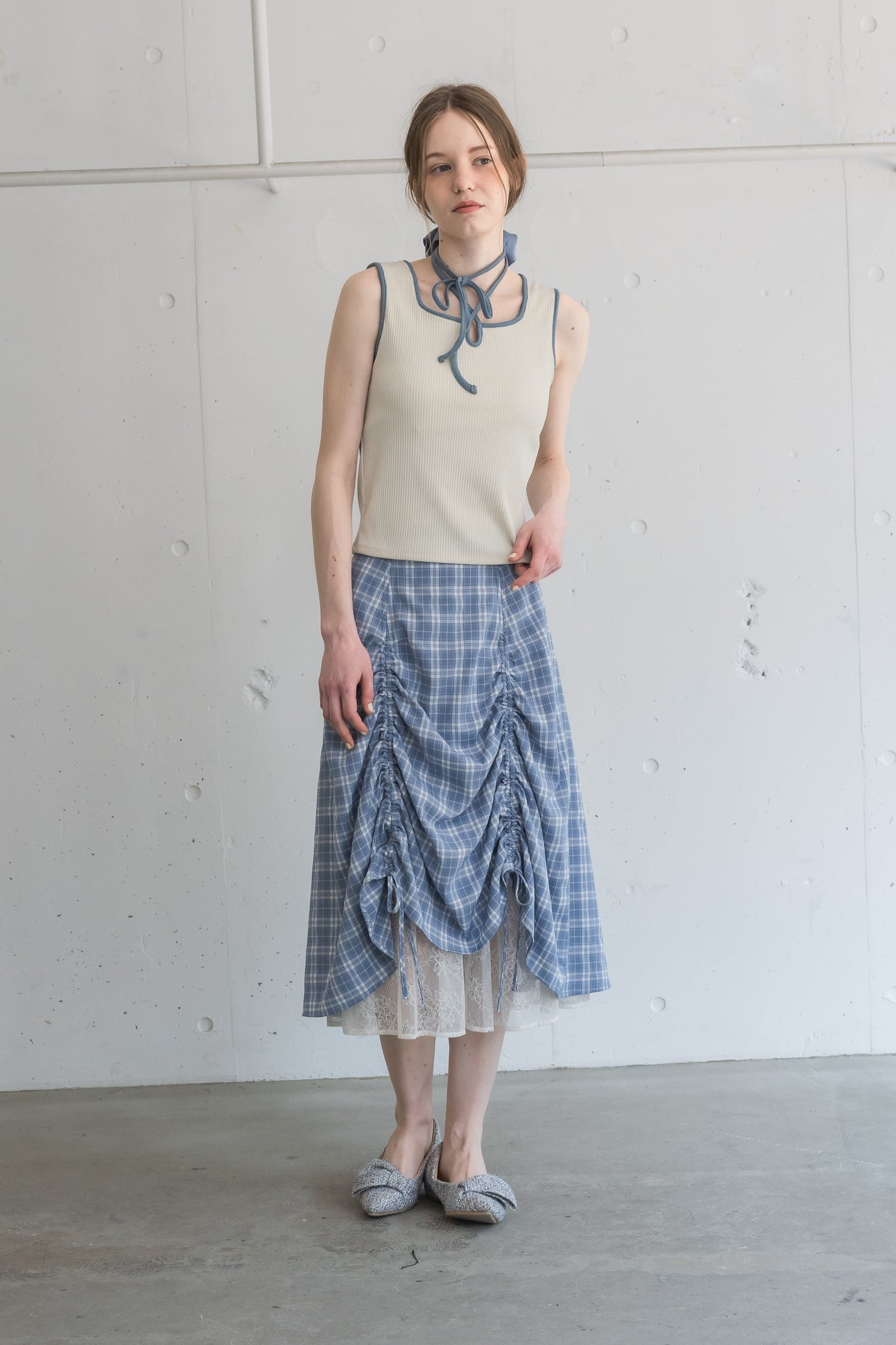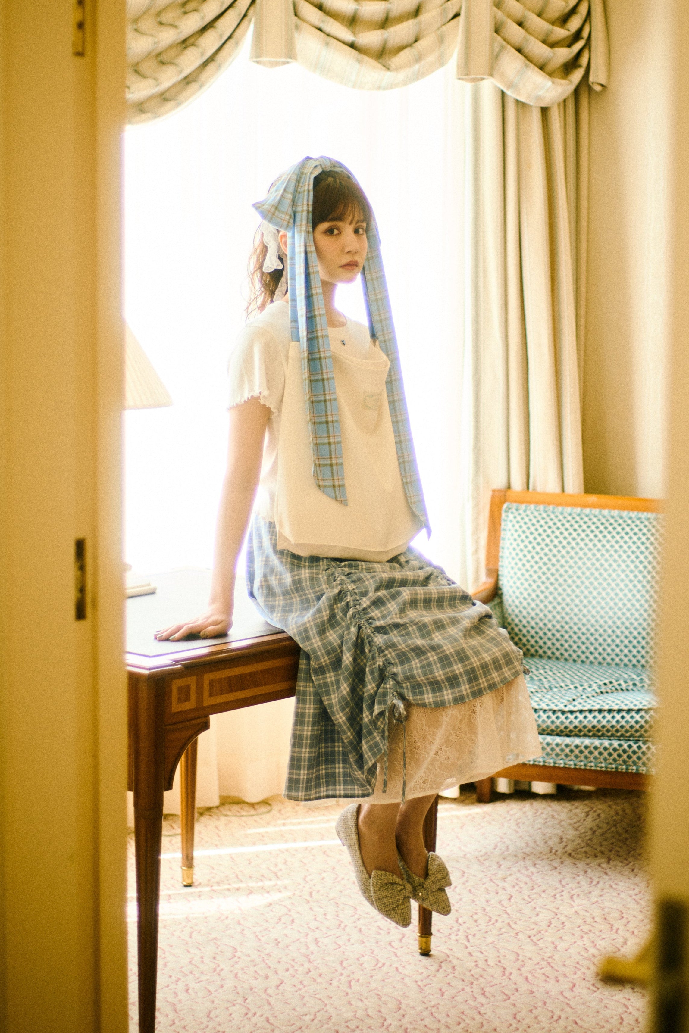 レースを忍ばせた、遊び心あるレイヤードチェックドロストスカート