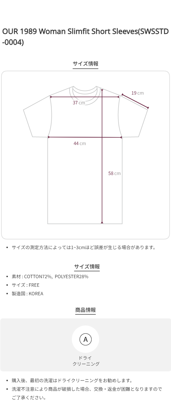 OUR 1989 Woman Slimfit Short Sleeves(SWSSTD-0004)