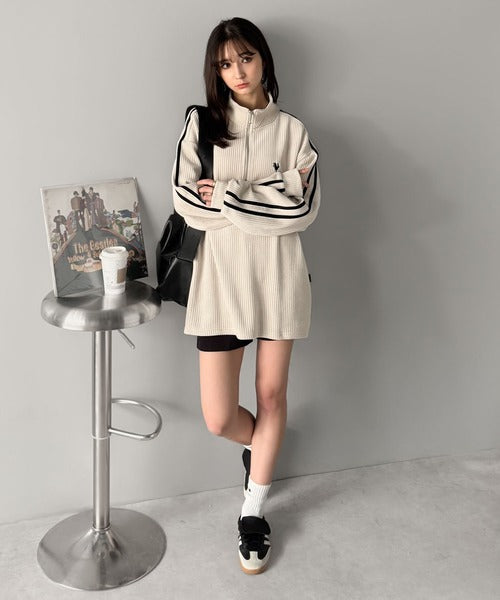 スポーティーなWライン×ハーフジップデザインが目を惹く。