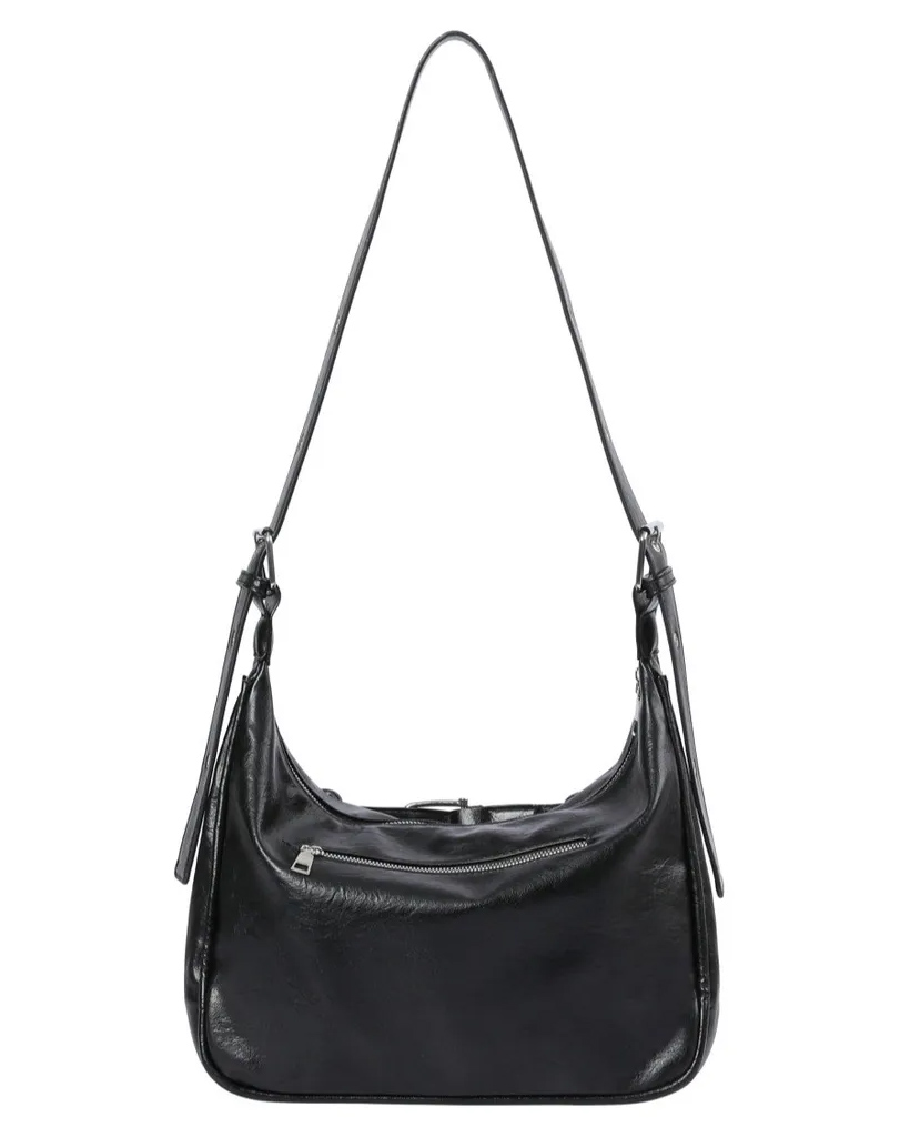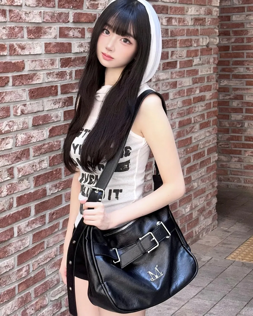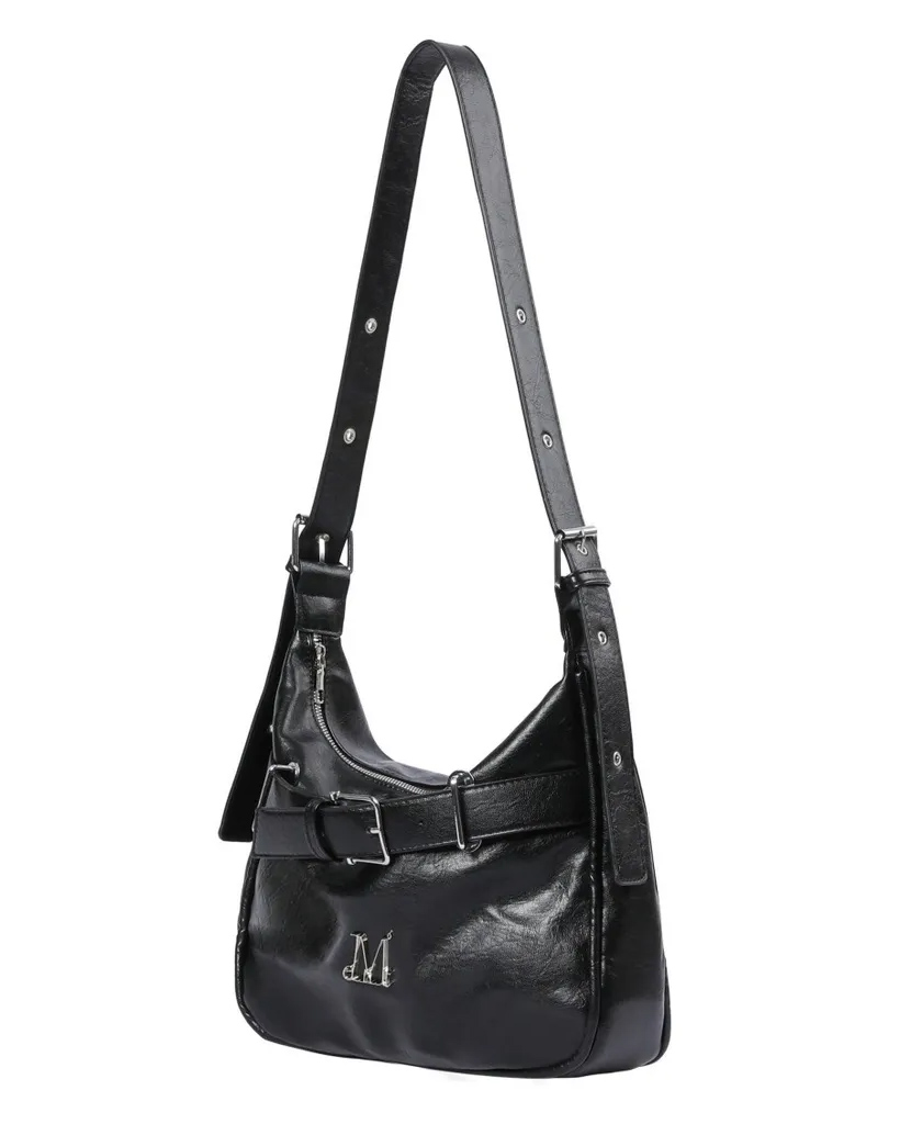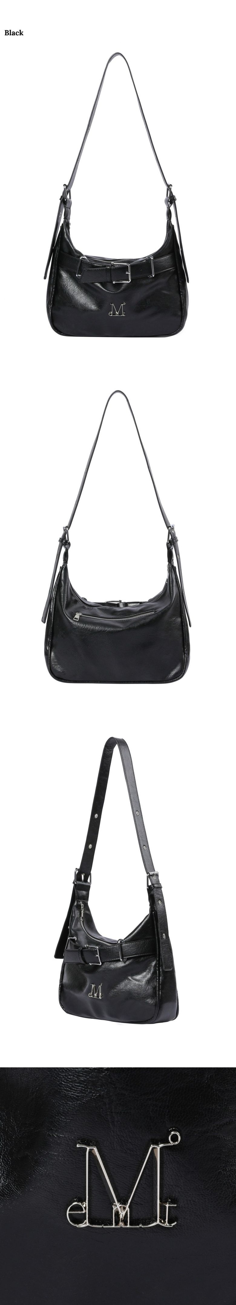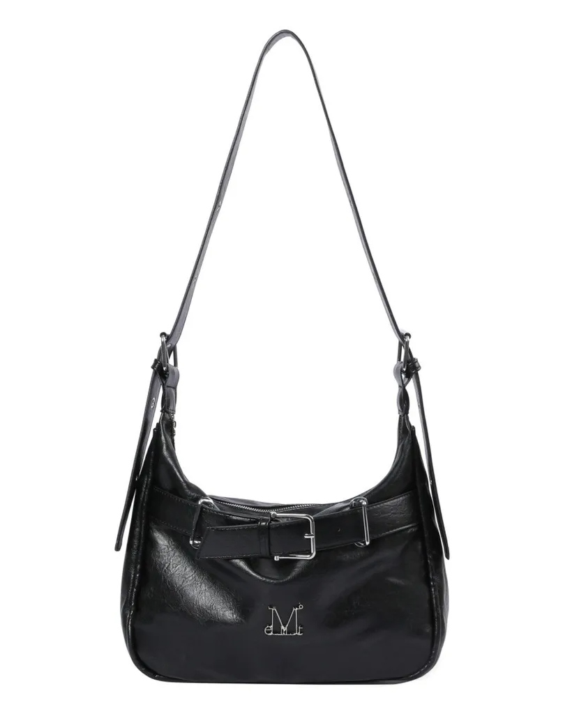 Monique Metal Logo Front Belted Leather Shoulder Bag for Men and Women
