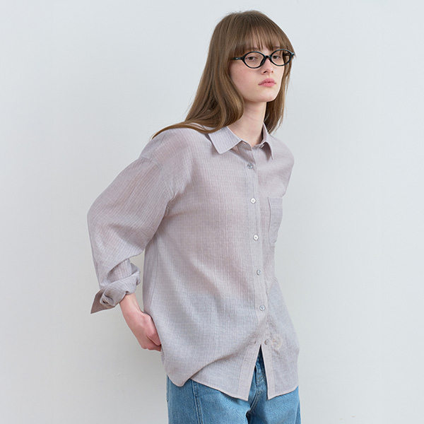 LOOSE FIT BACK POINT STRIPE SHIRTS LIGHT GRAY