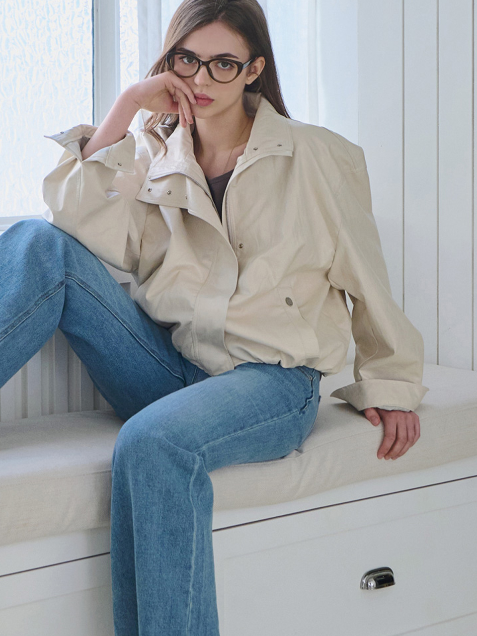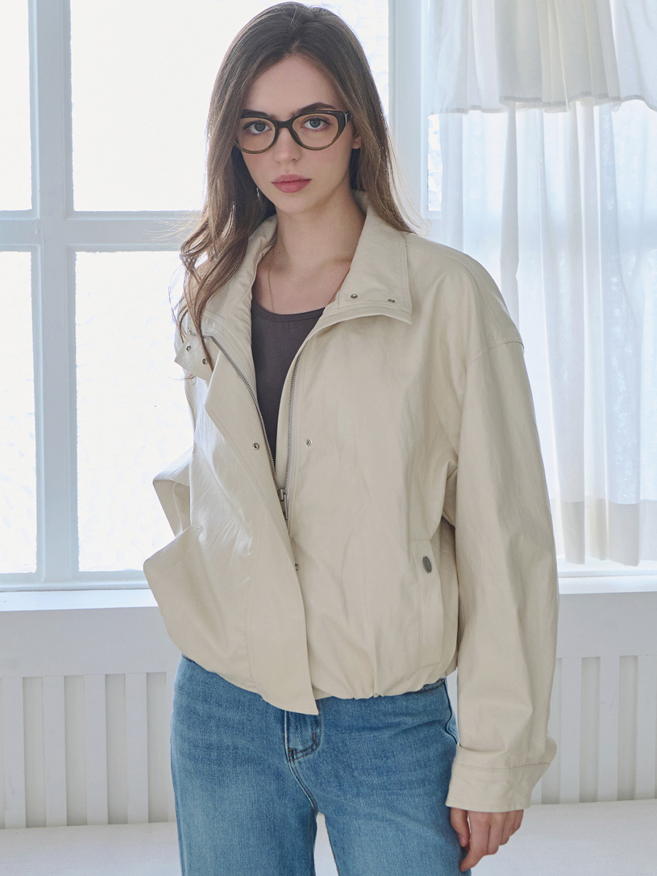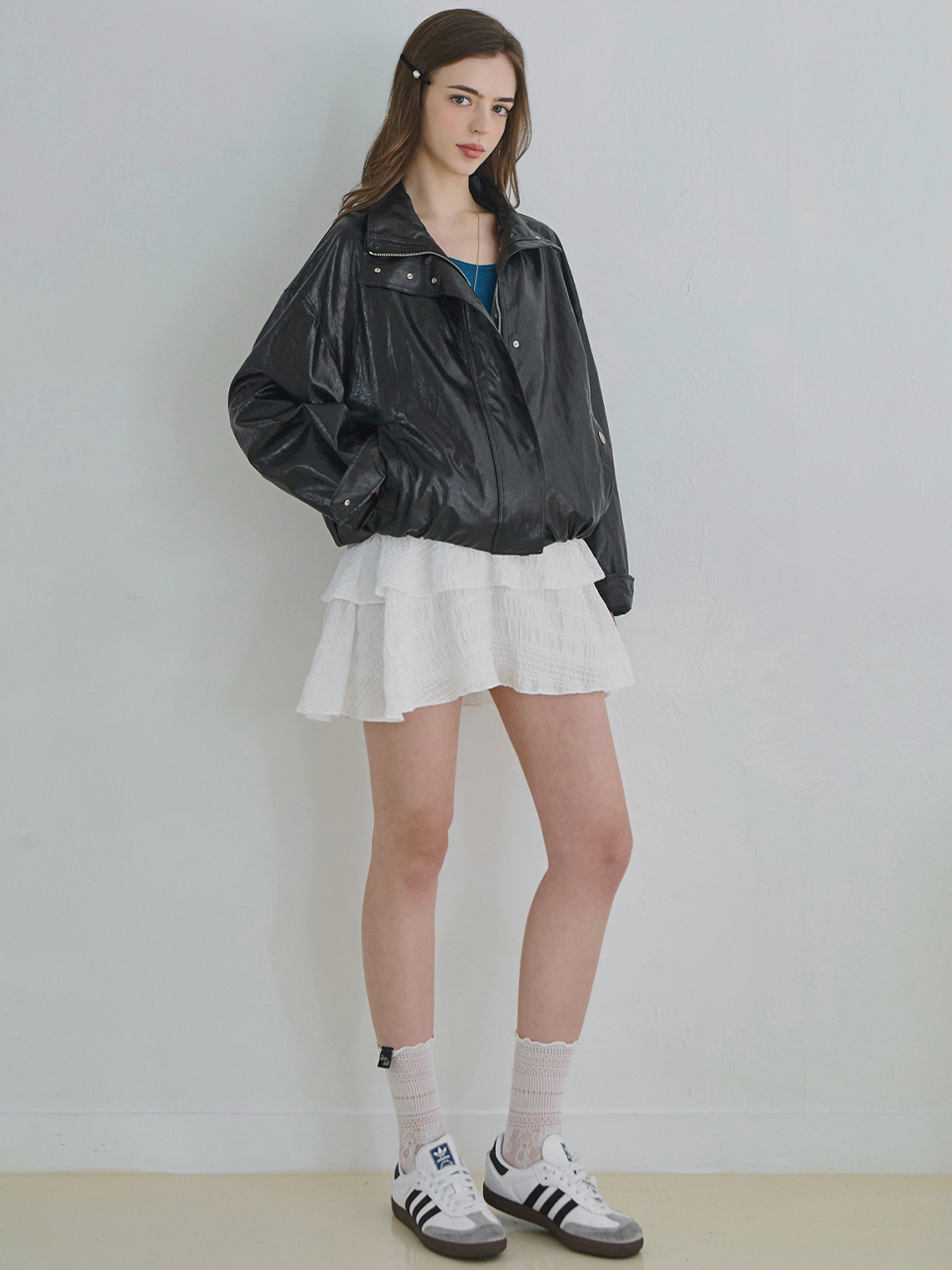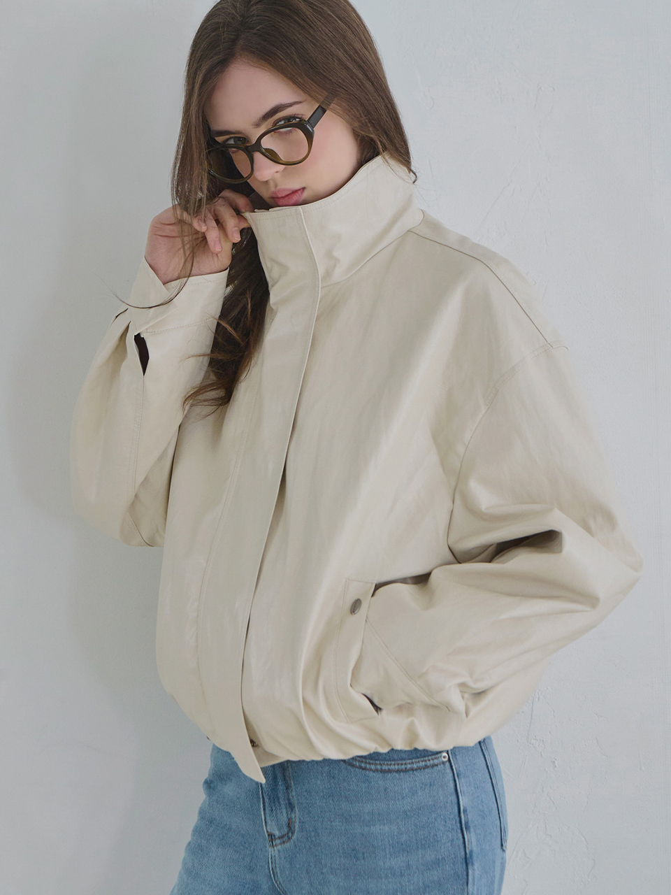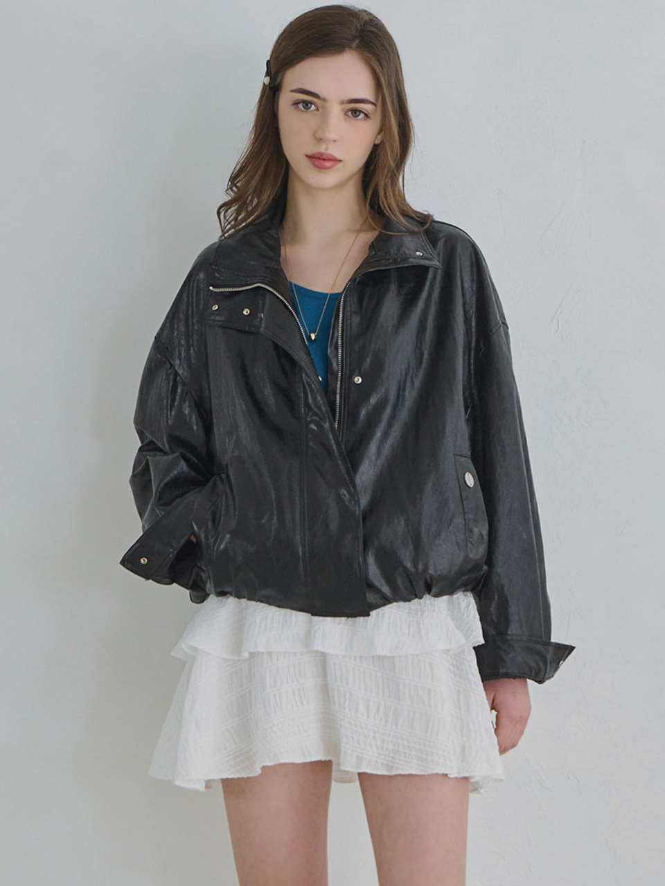 Minimal bomber leather jacket_2 Colors