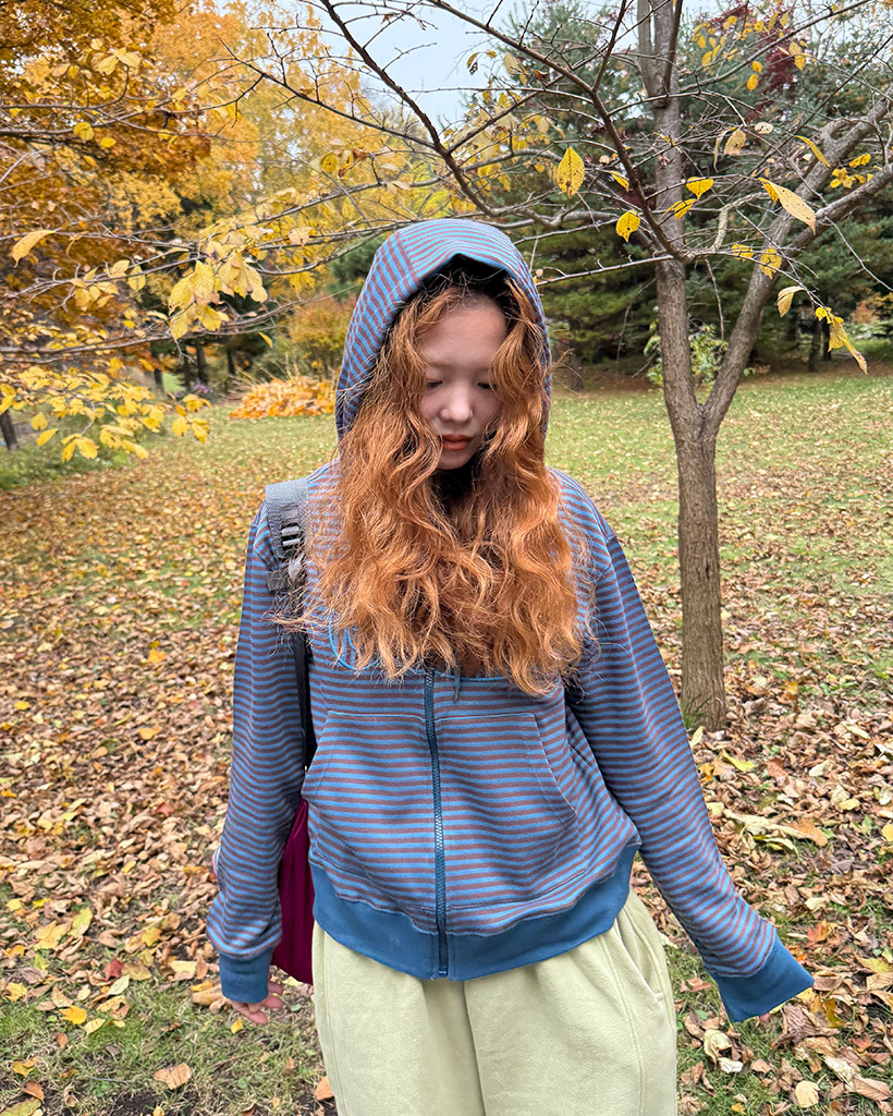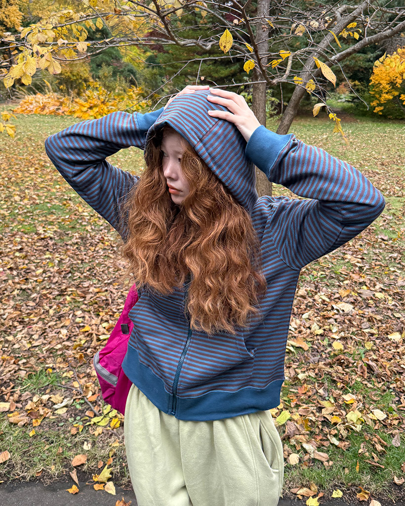 [Nerd X ENZOBLUES] Striped Zip-up Hoodie (Blue Stripe)