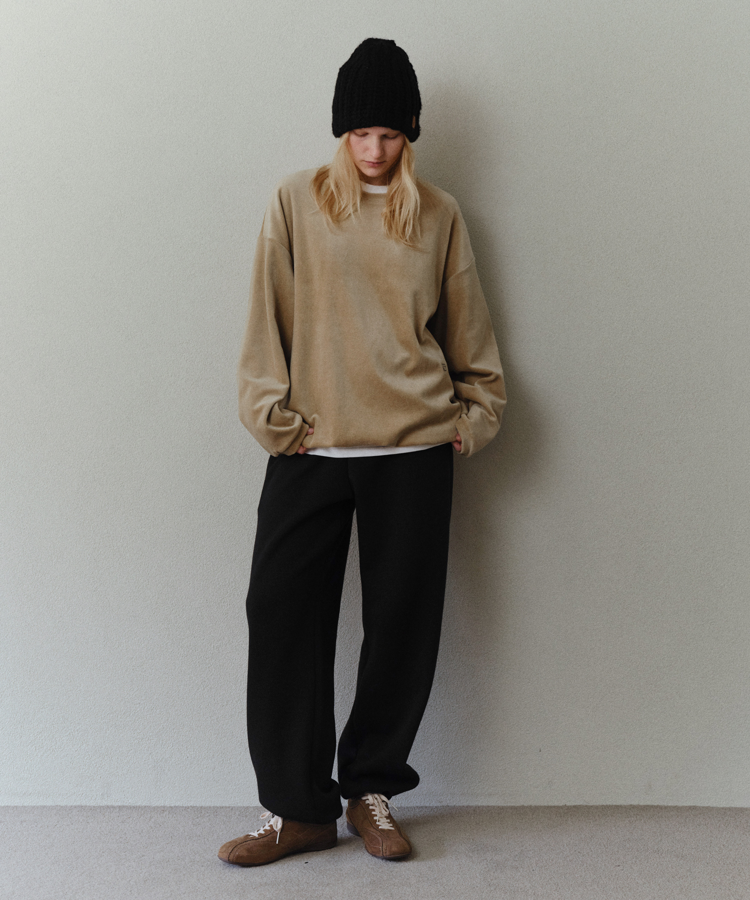 - 快適さとスタイルを両立した、冬のデイリールックに活用度の高いベロアスウェットです。