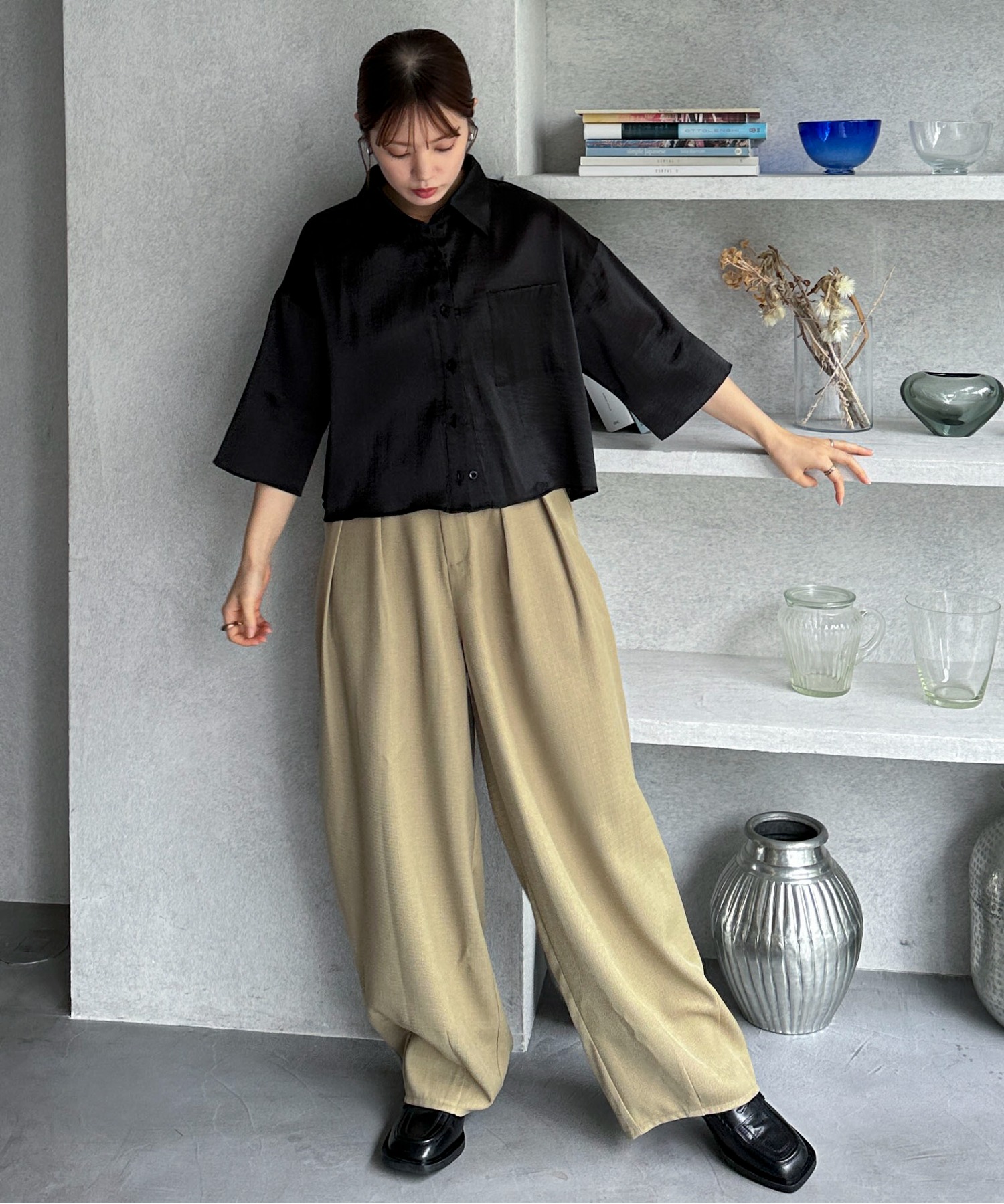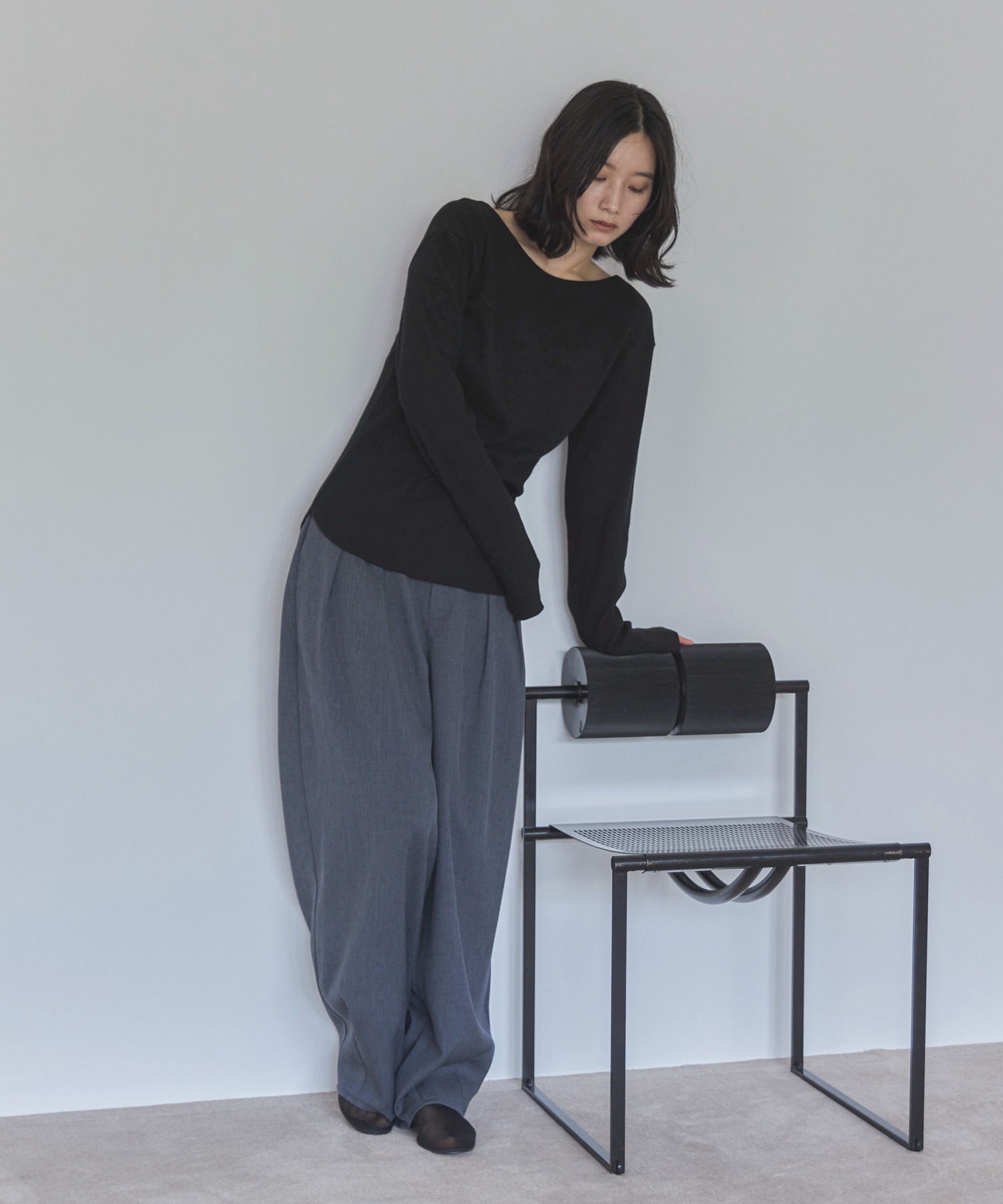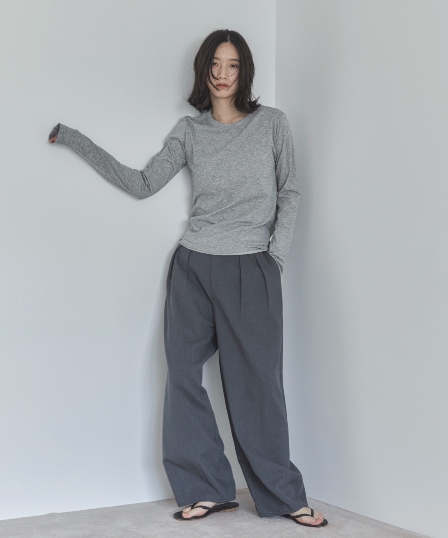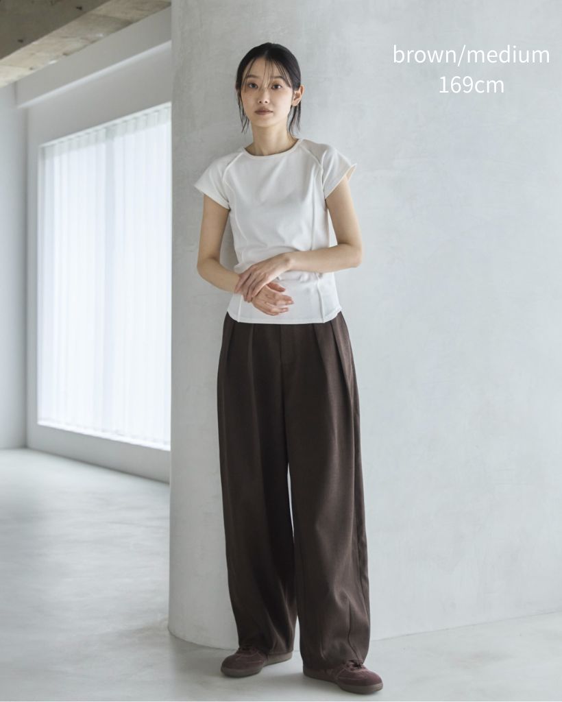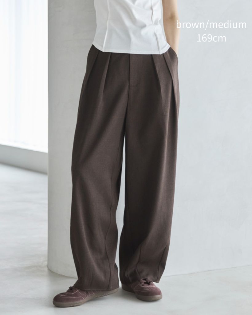 ツータックでヒップ周りに余裕の出るラクチンな履き心地にも関わらず、裾に向かってナチュラルにすぼまったカーブディティールが綺麗見えしてくれます。