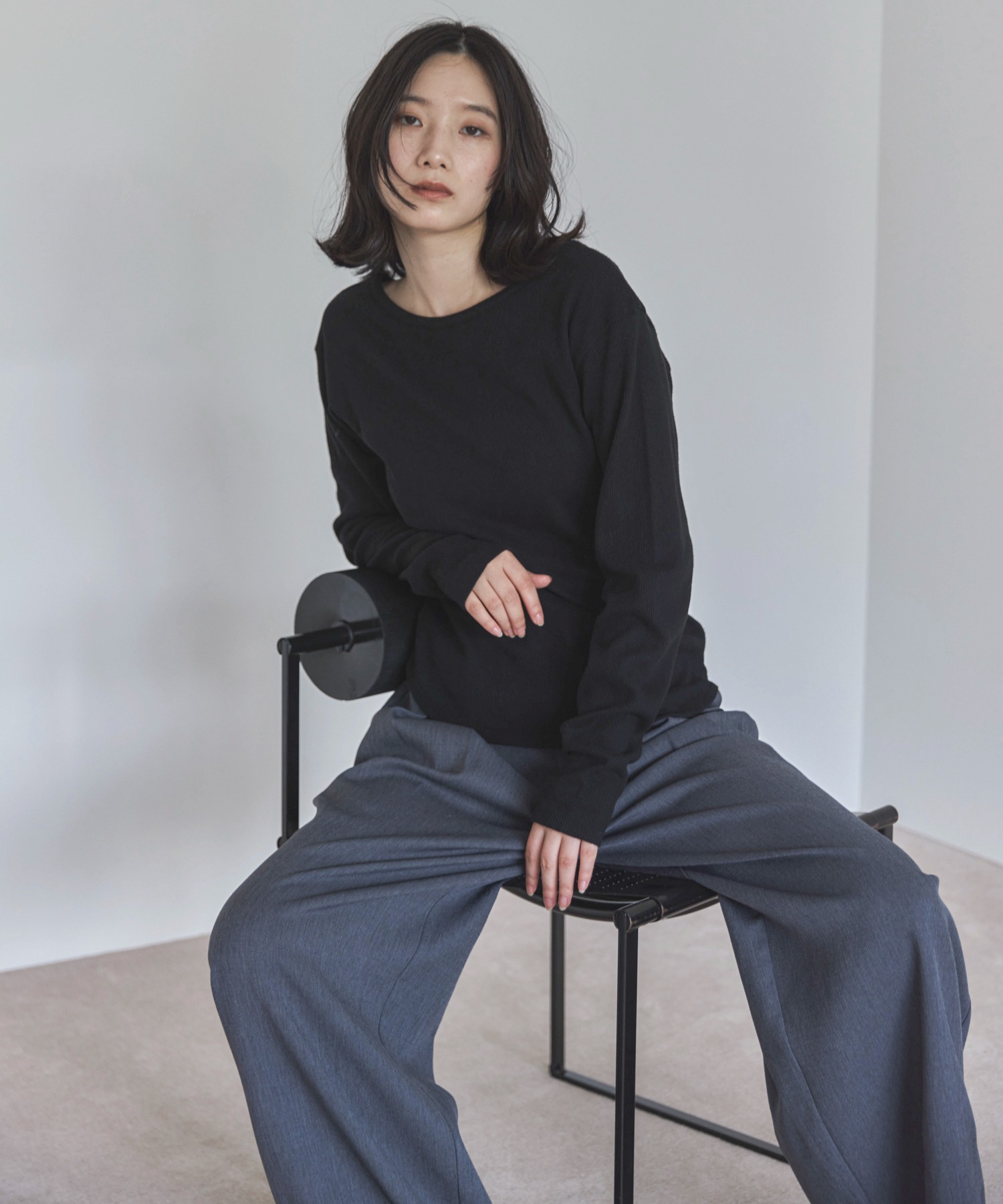 また同型でシーズンレスで着回せるTR素材のカーブスラックスもご用意しています。
