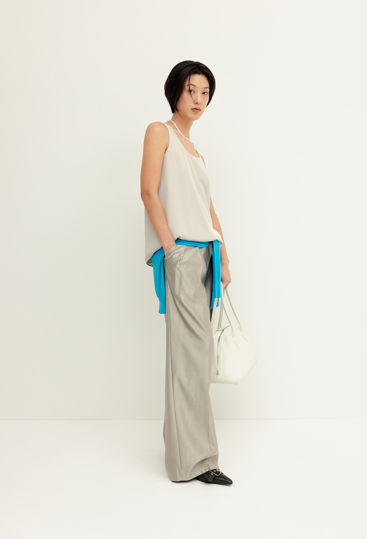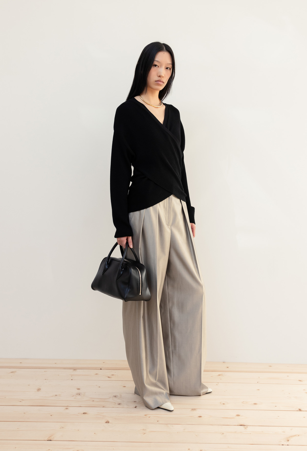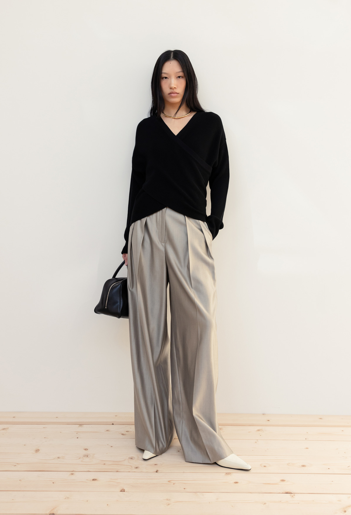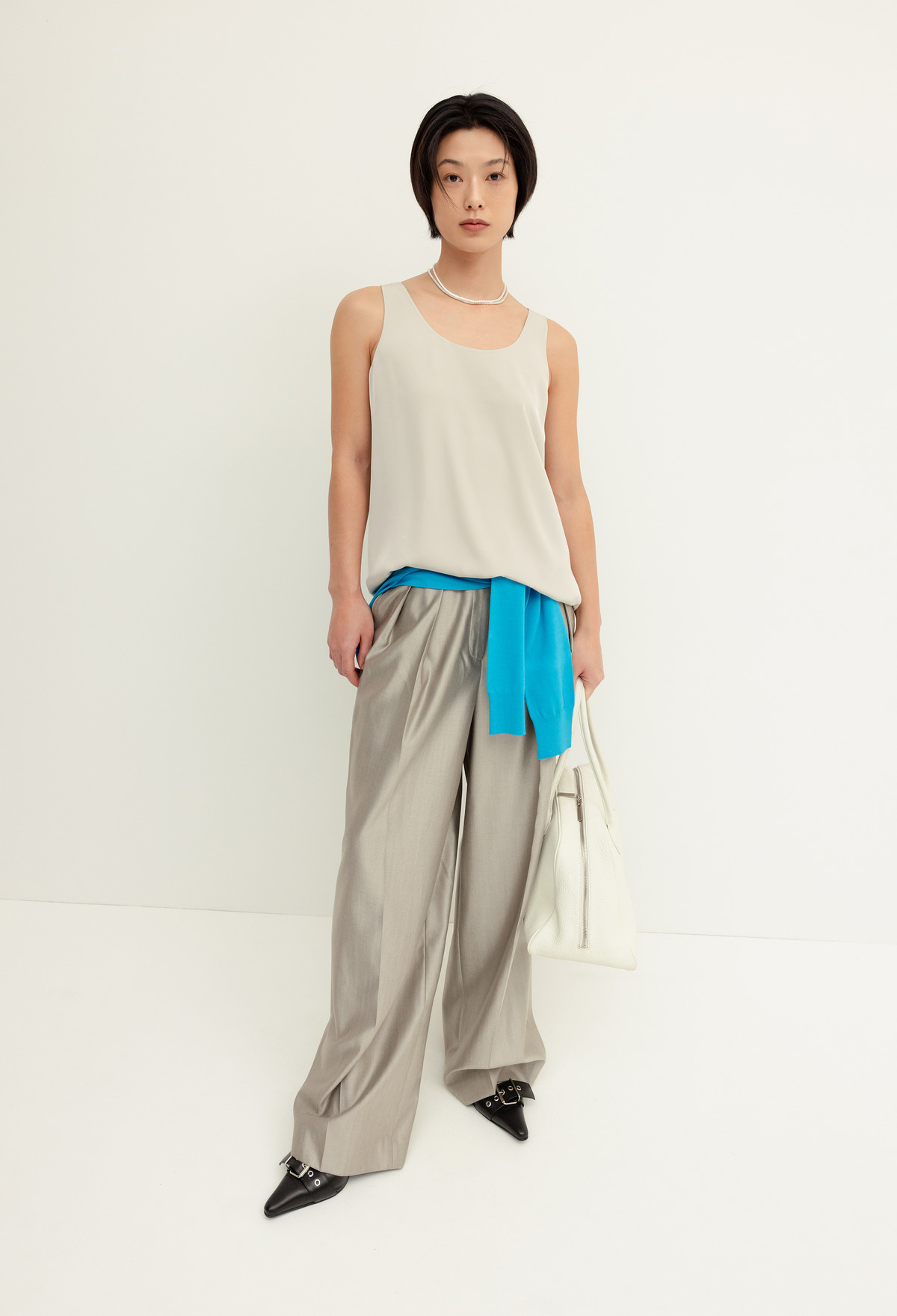 LUX Wool Silk Trousers Light Gray