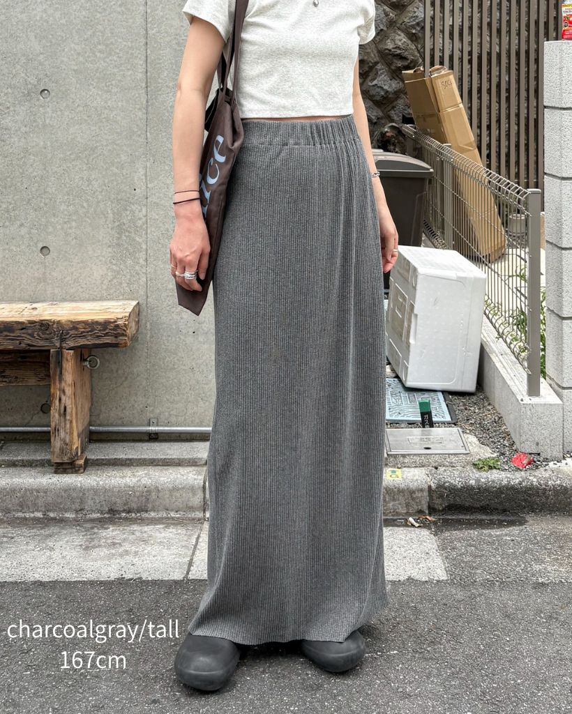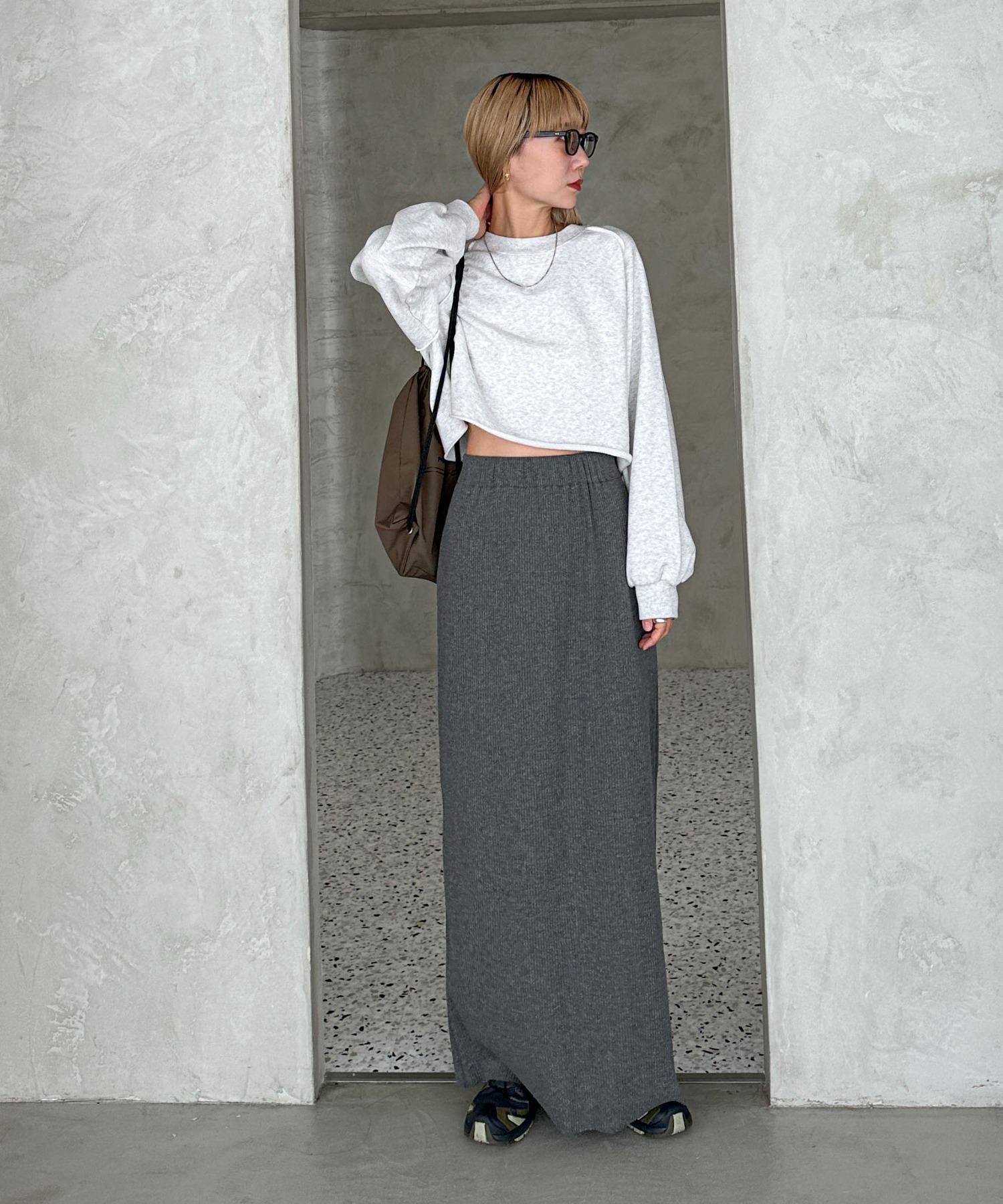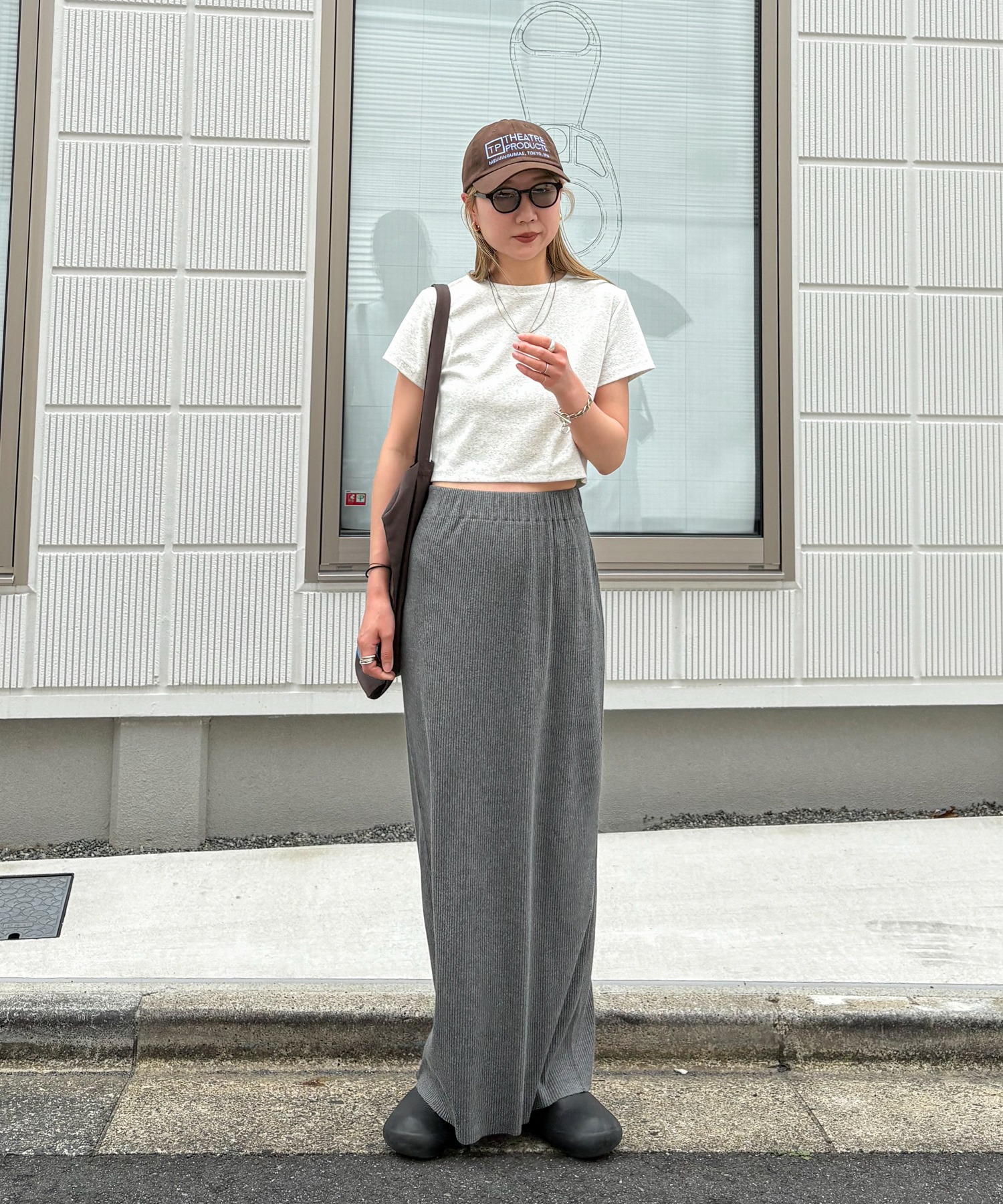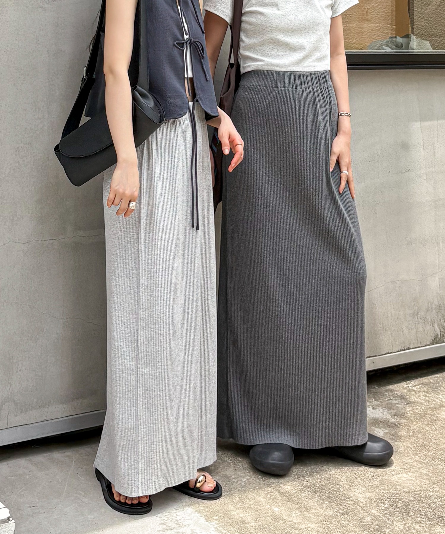 伸縮性抜群なゴム編み仕様のカットソーロングスカート◎