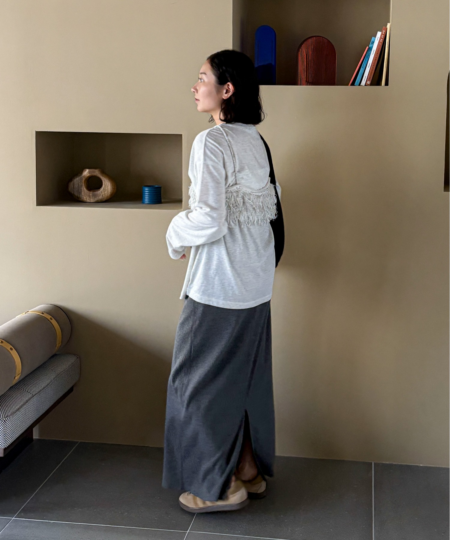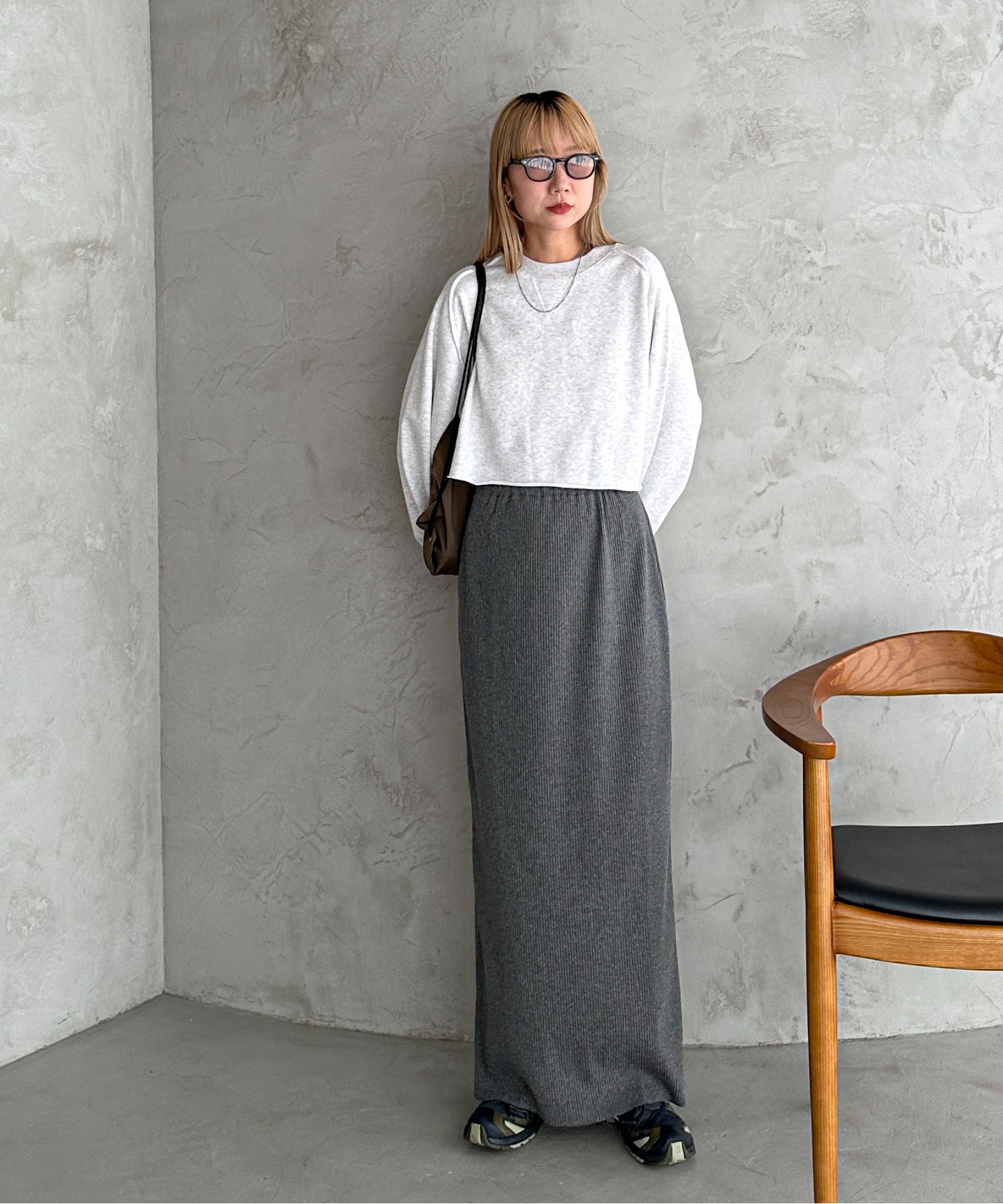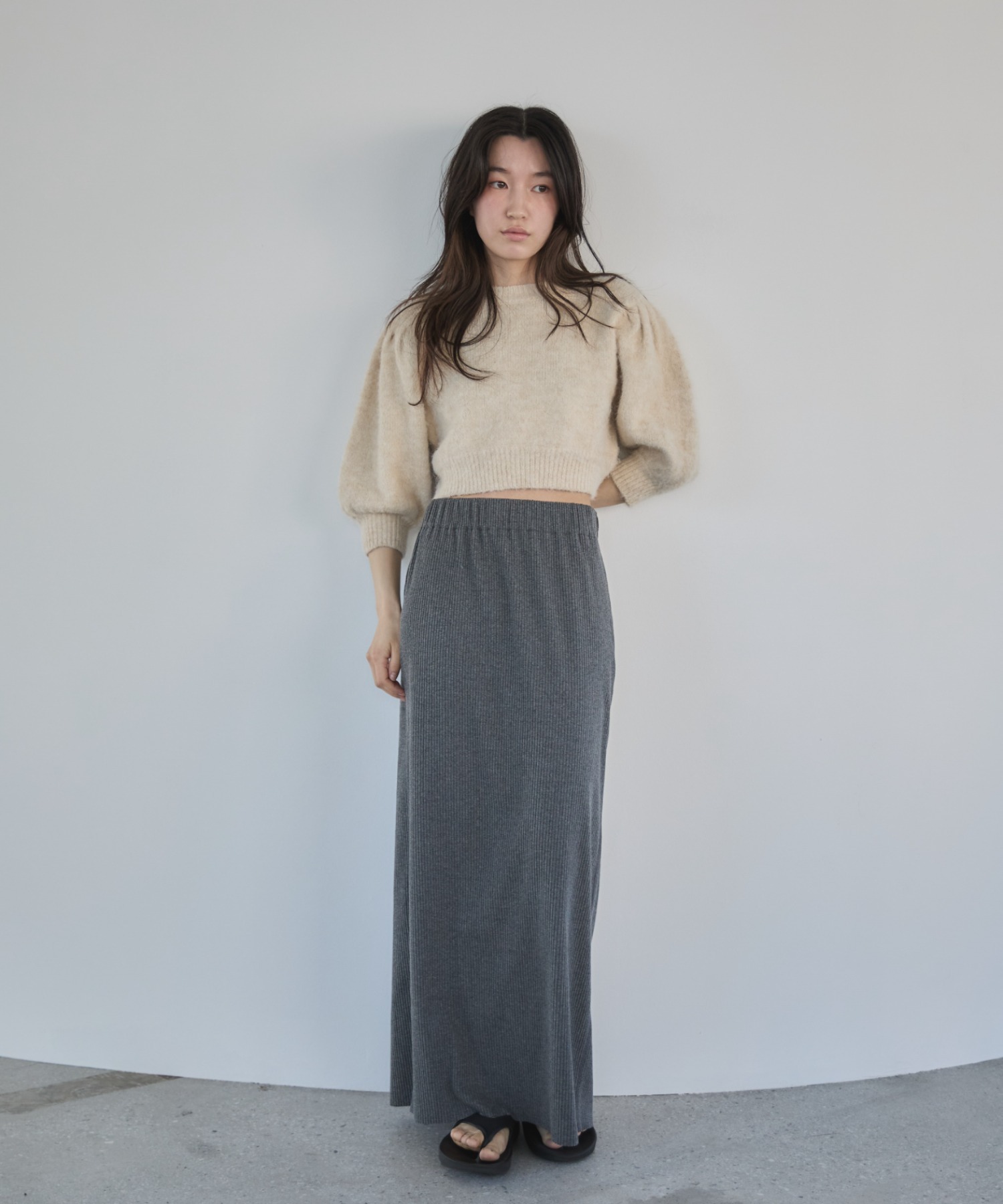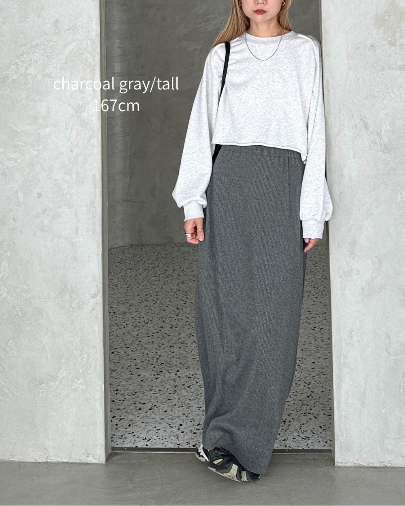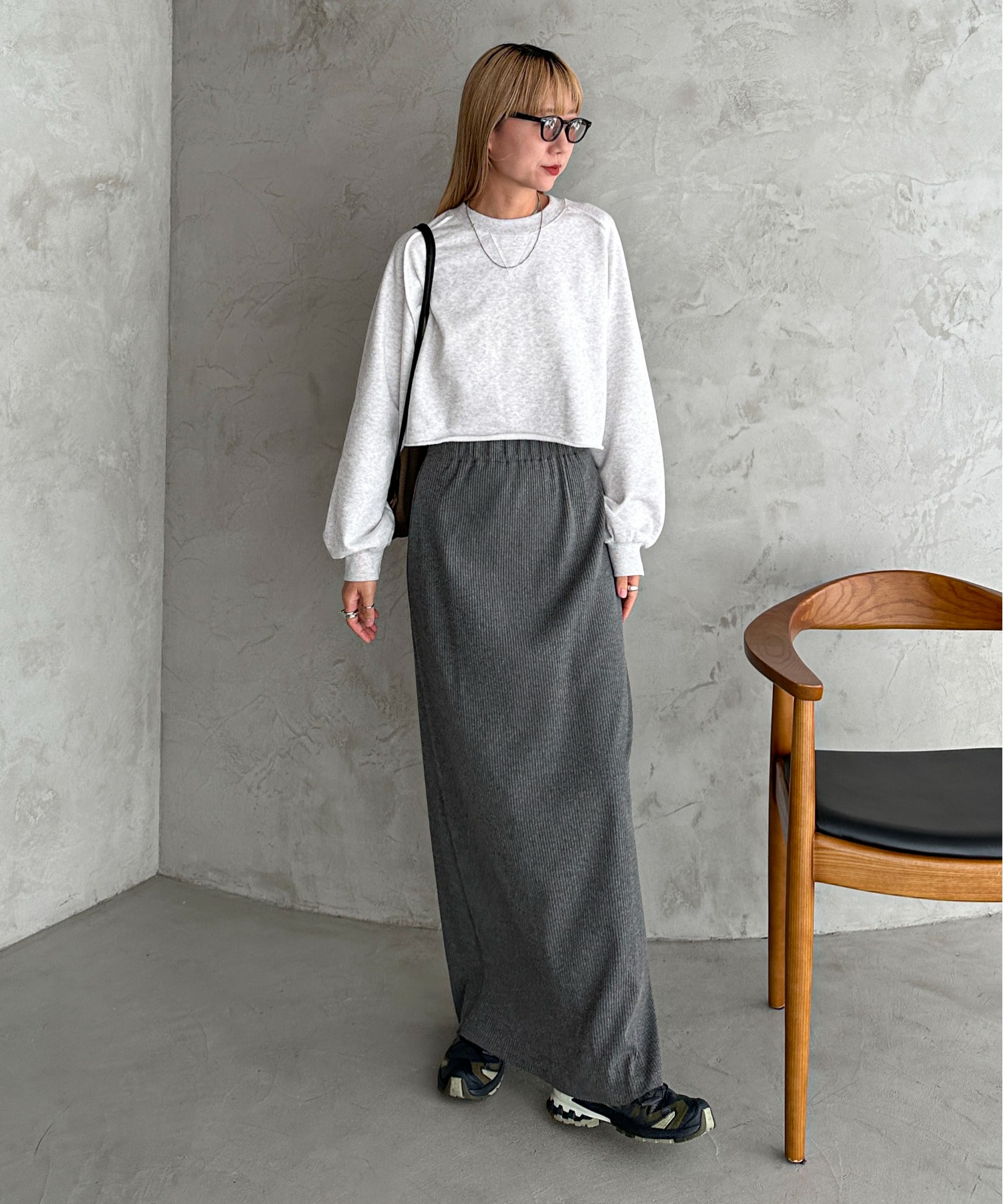 伸縮性抜群なゴム編み仕様のカットソーロングスカート◎