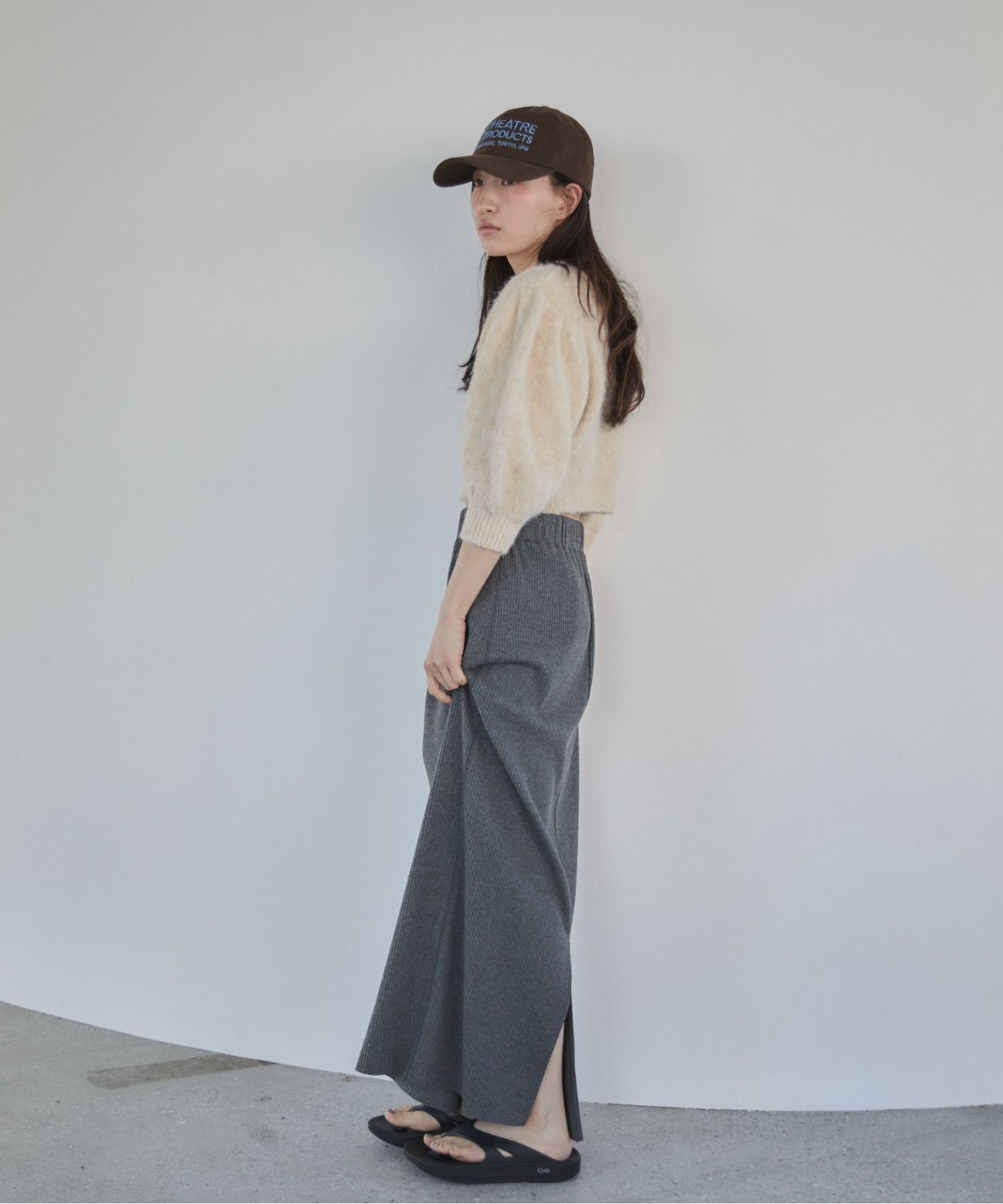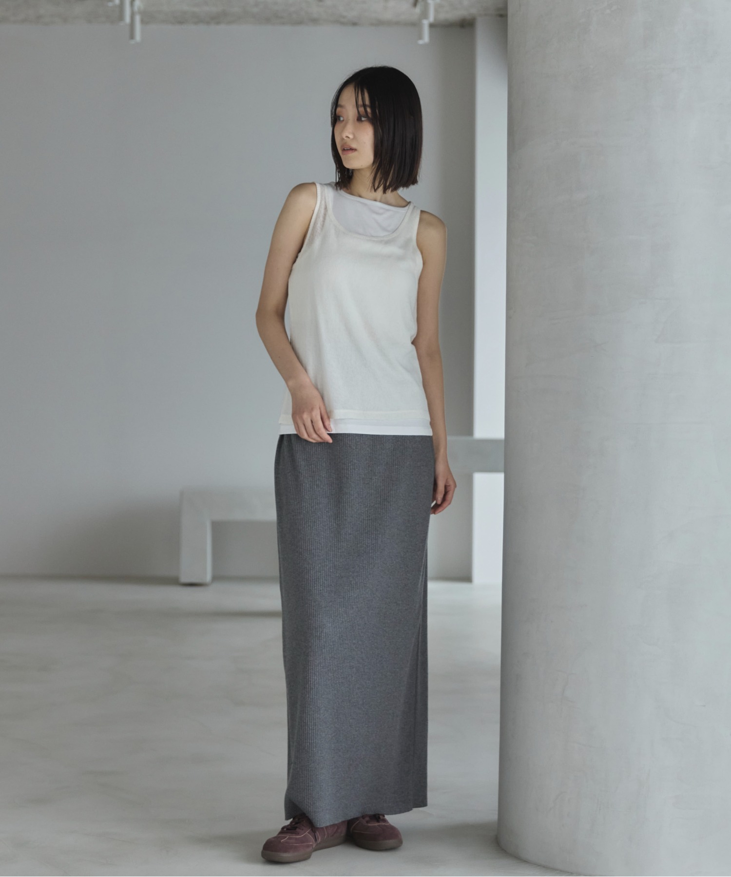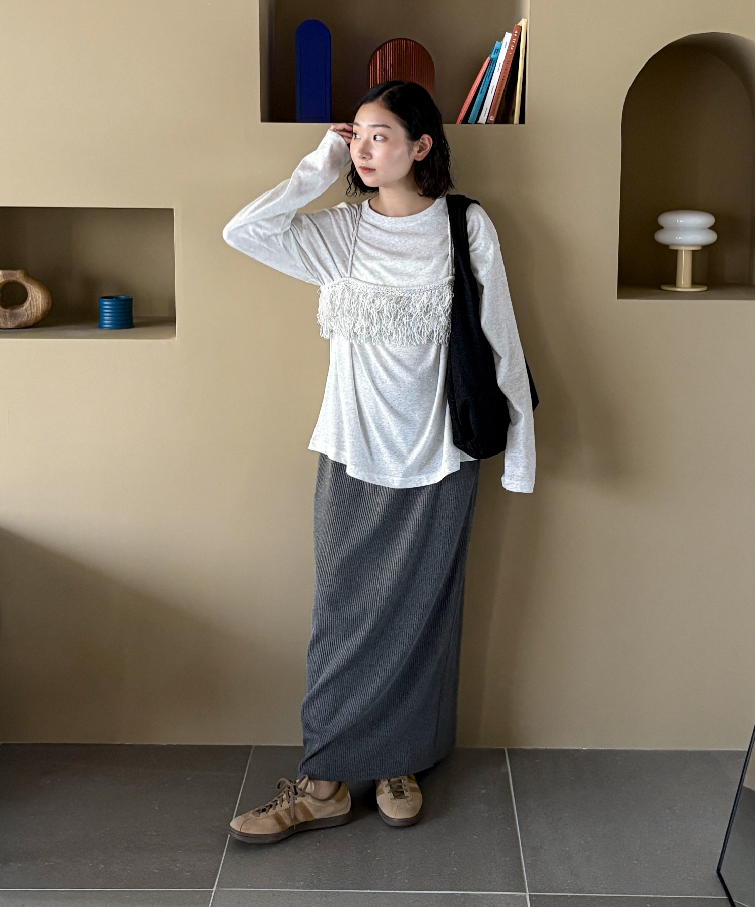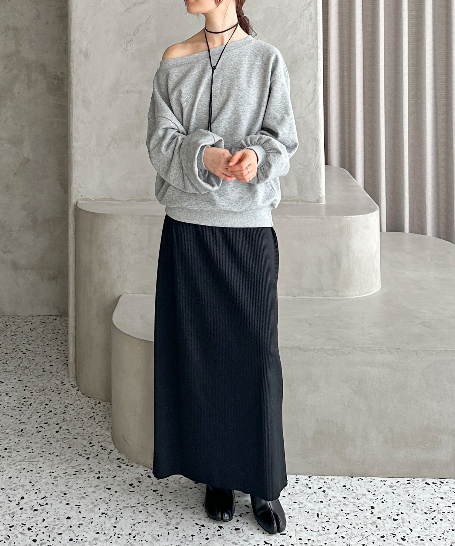 伸縮性抜群なゴム編み仕様のカットソーロングスカート◎