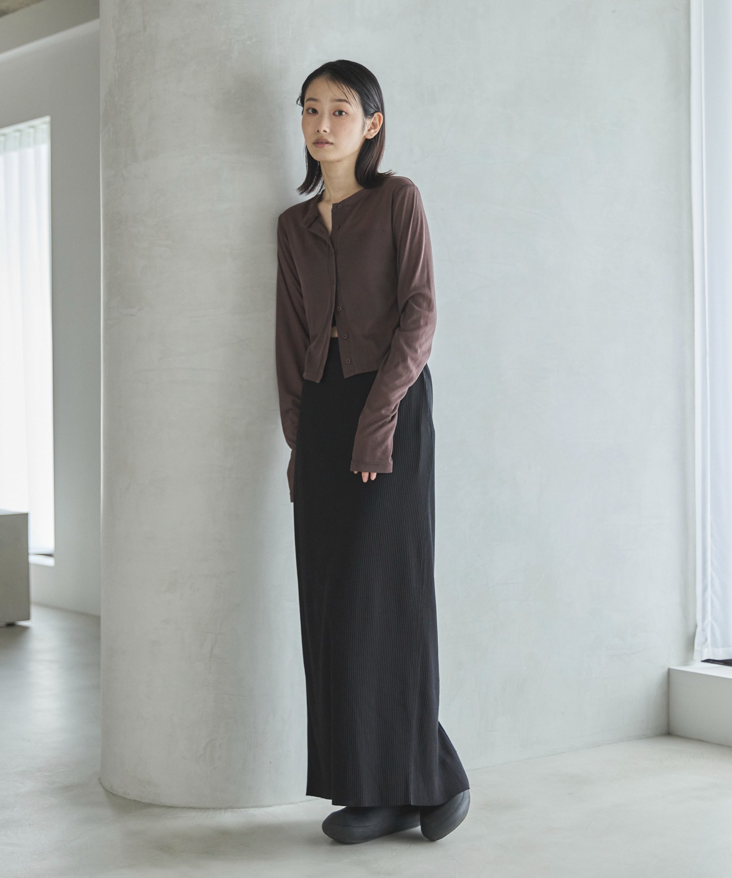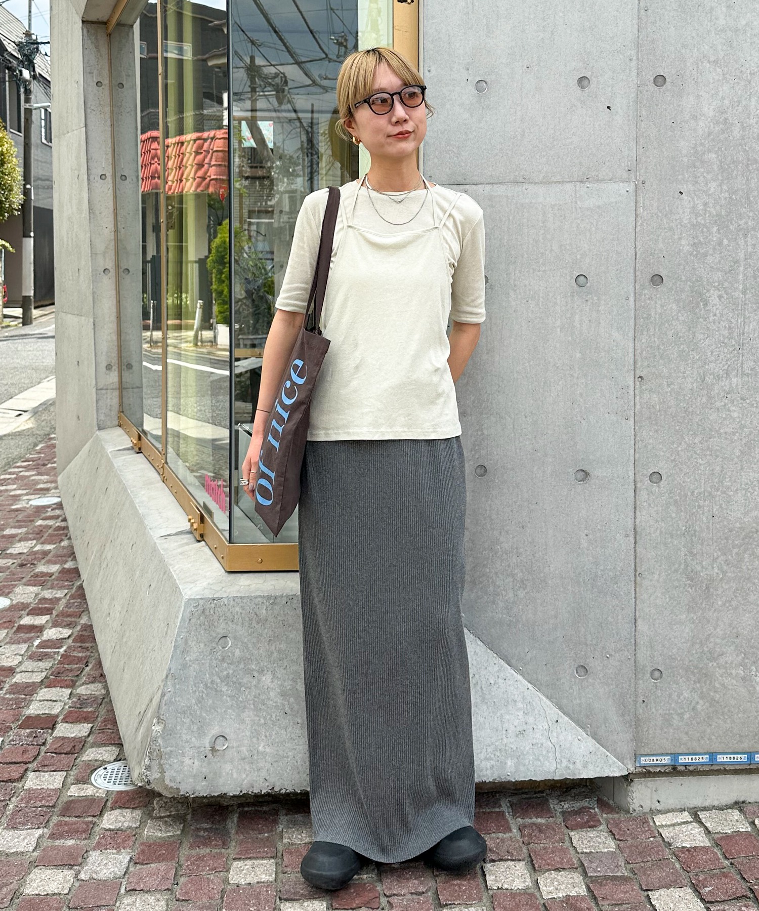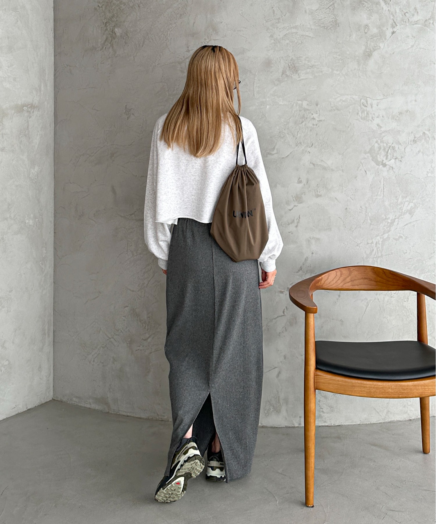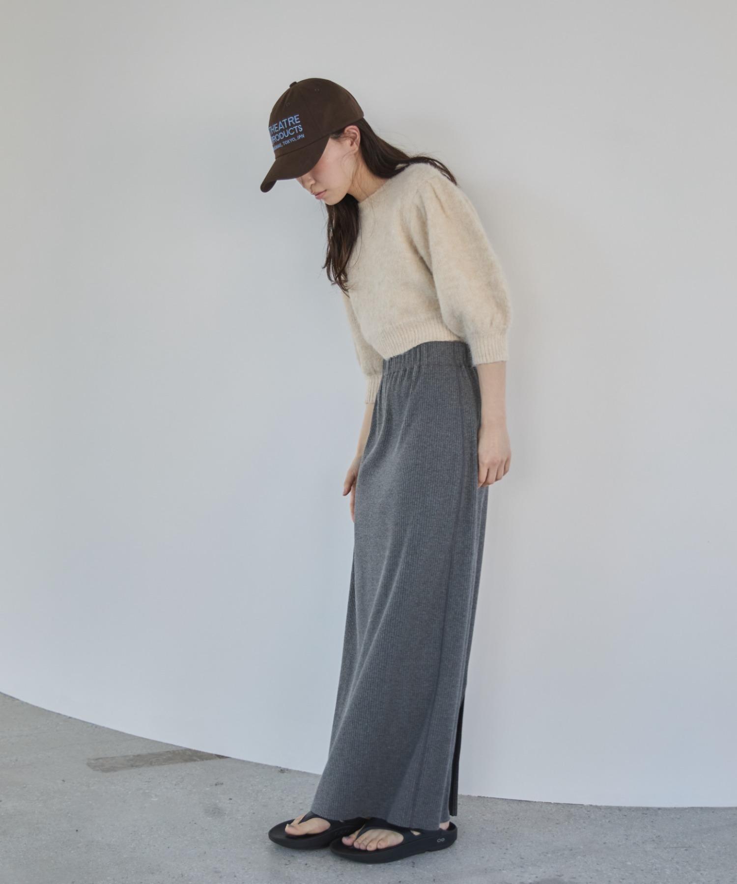 伸縮性抜群なゴム編み仕様のカットソーロングスカート◎