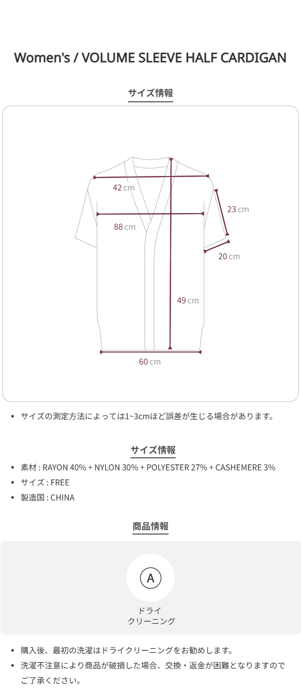 VOLUME SLEEVE HALF CARDIGAN GRAY