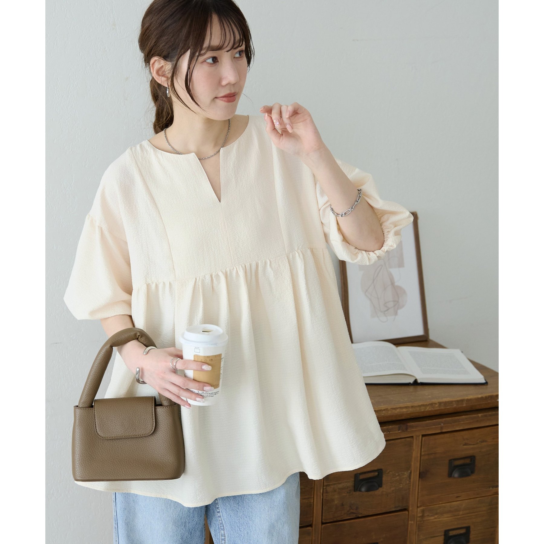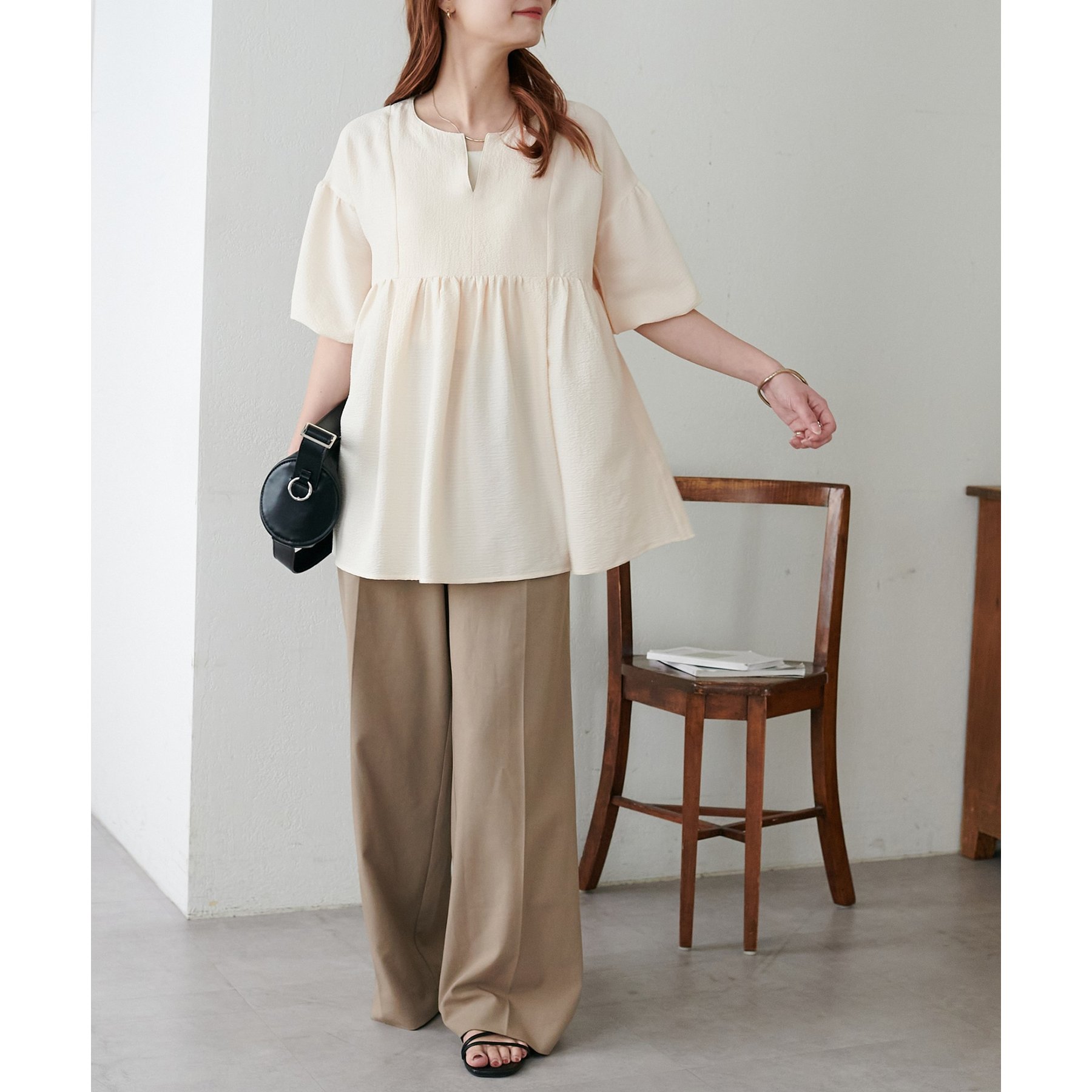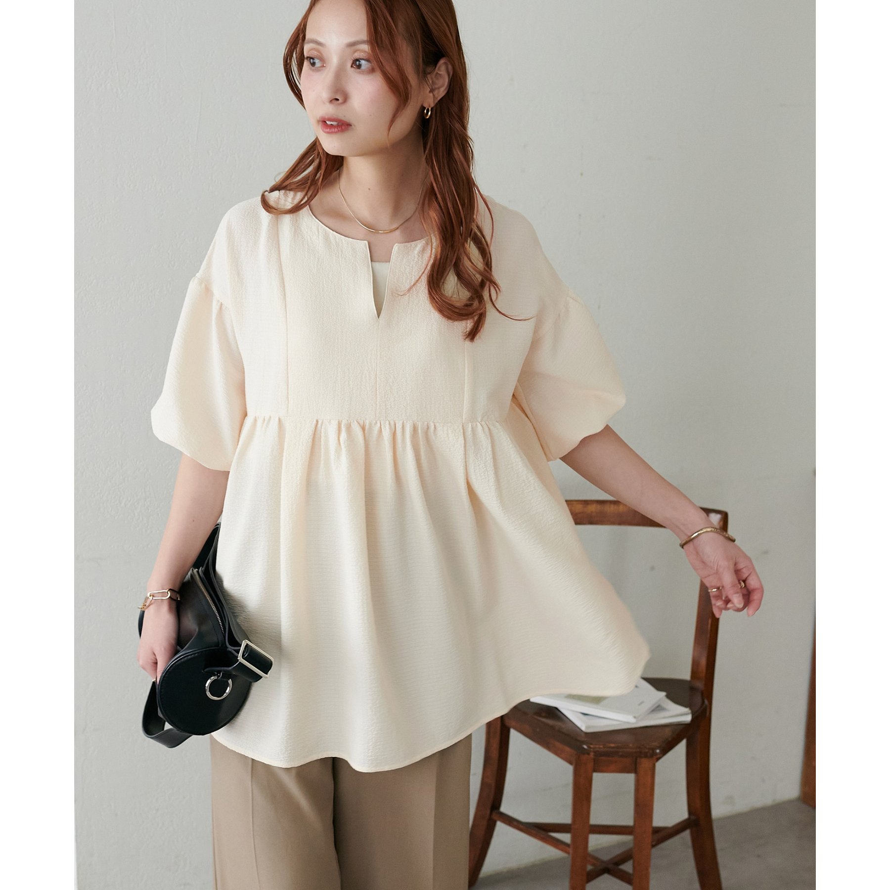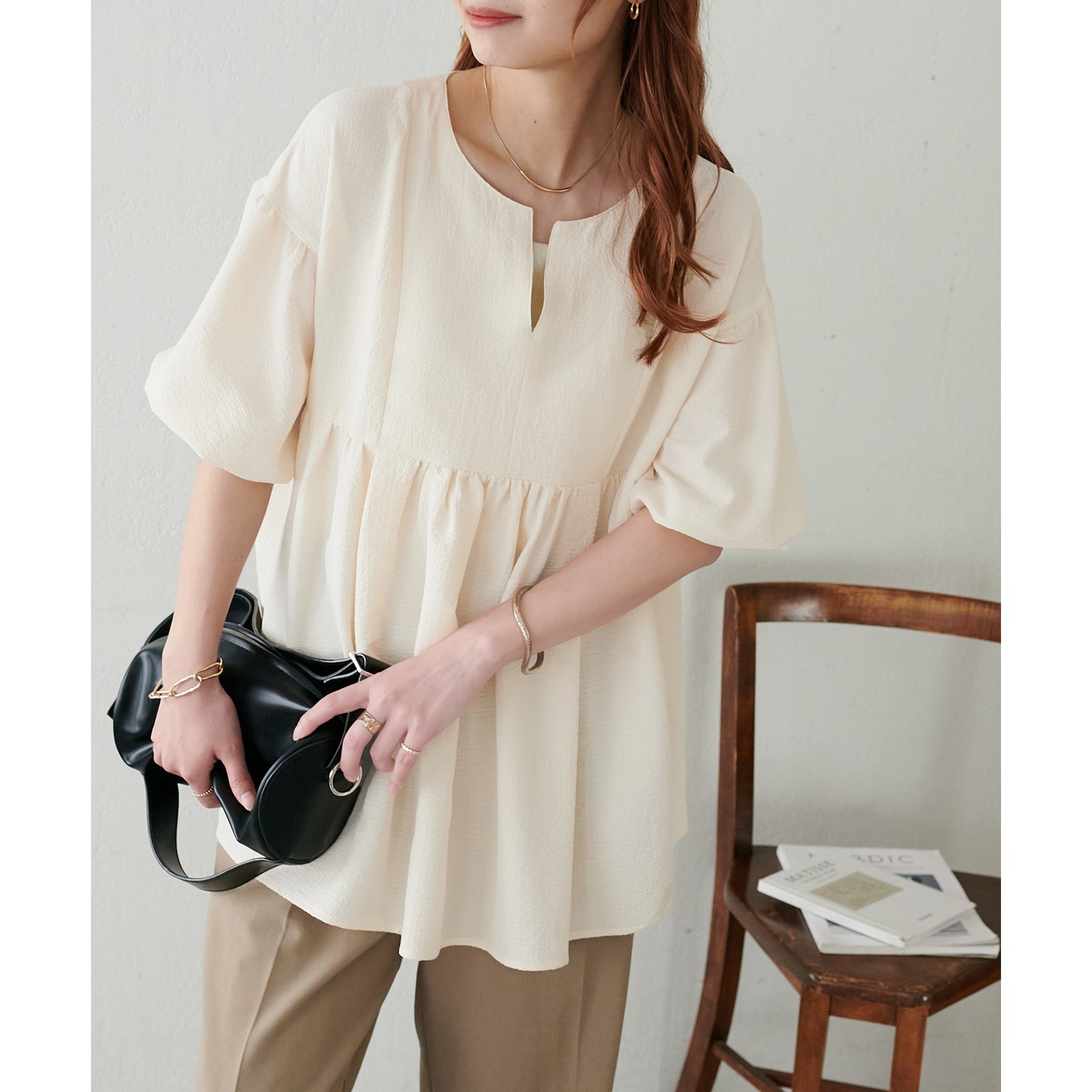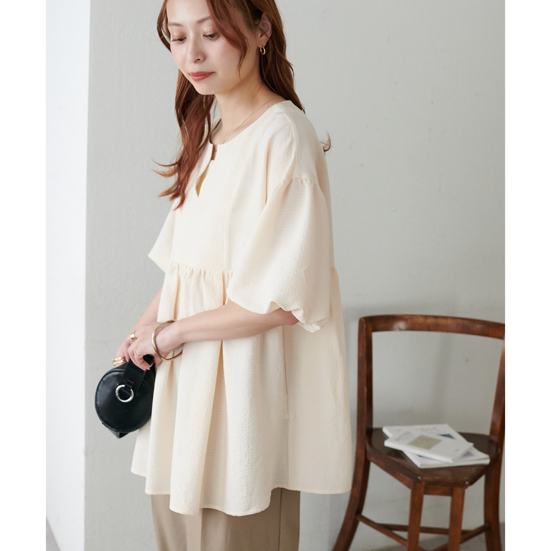 【新色追加!/WEB限定】キーネックペプラムブラウス