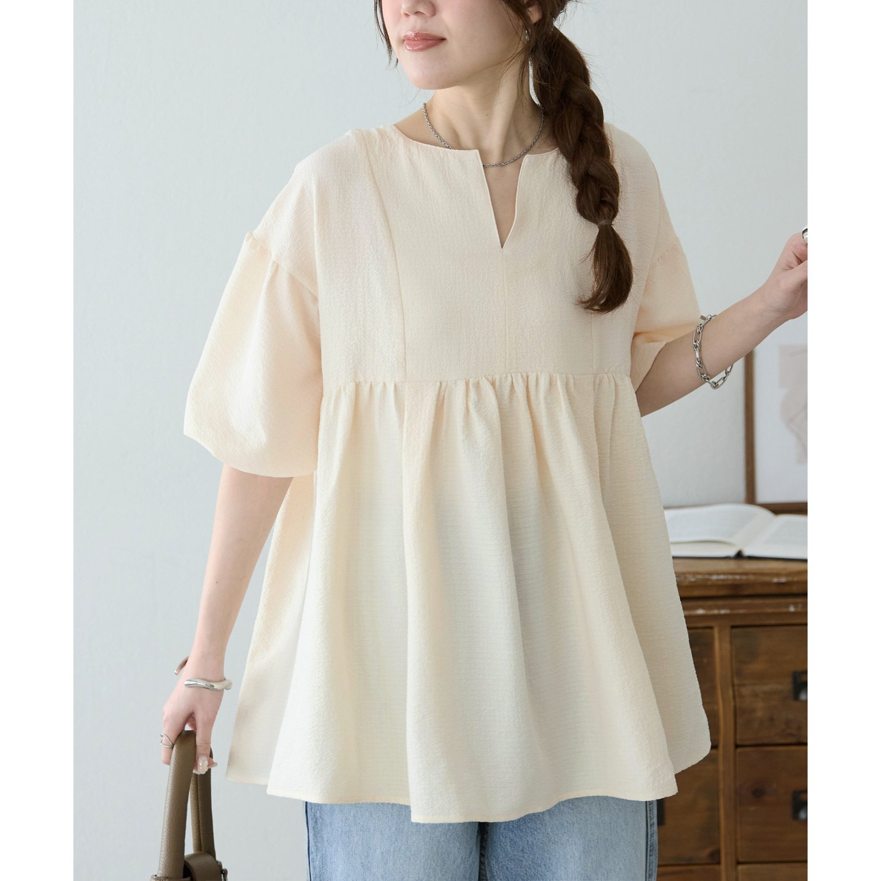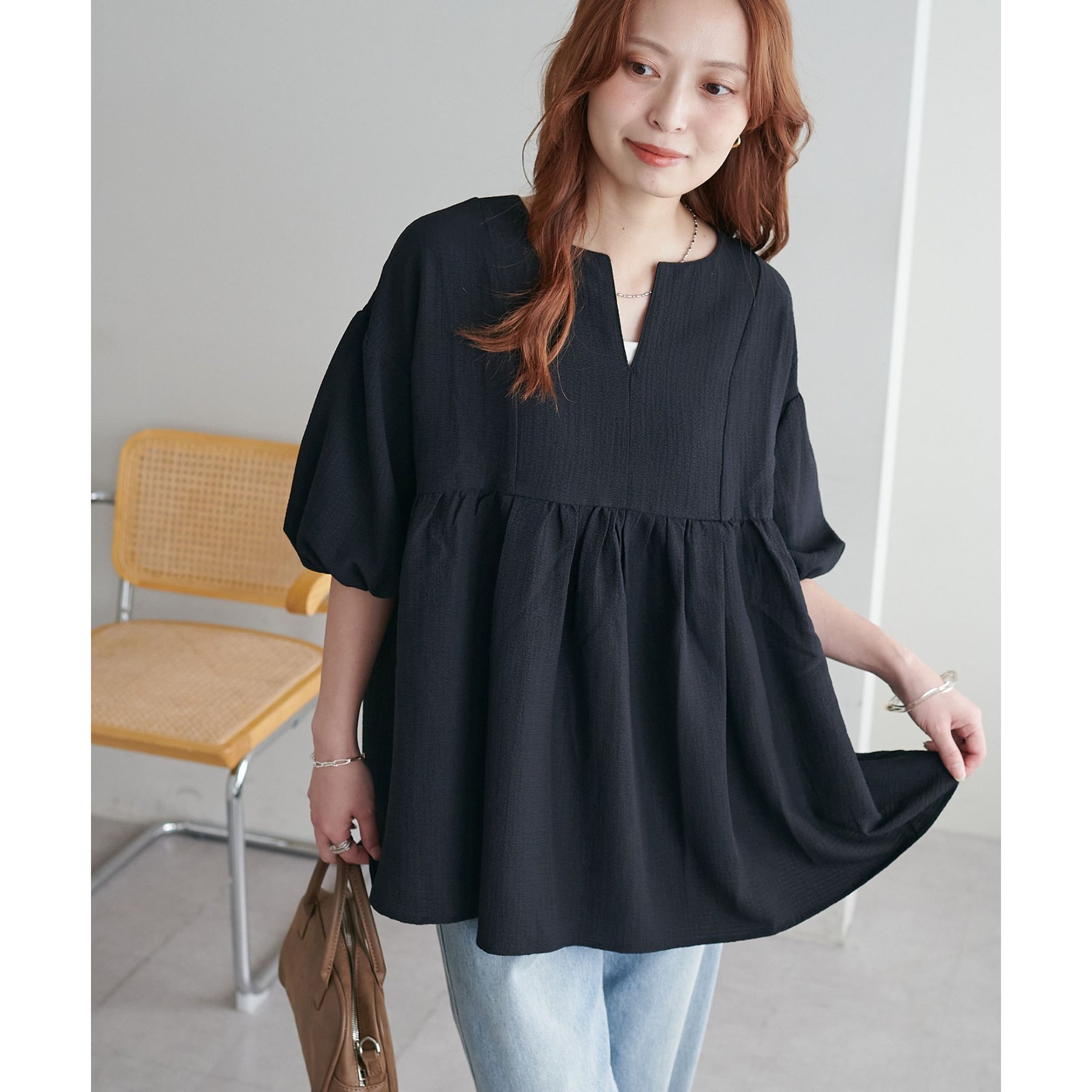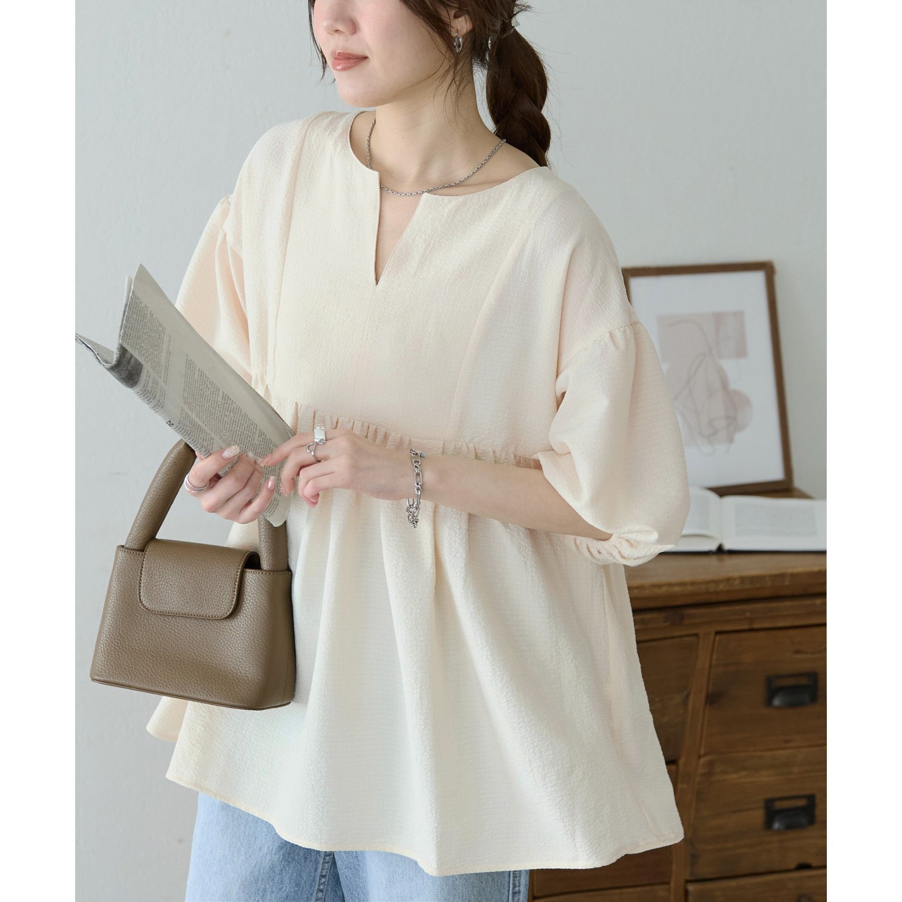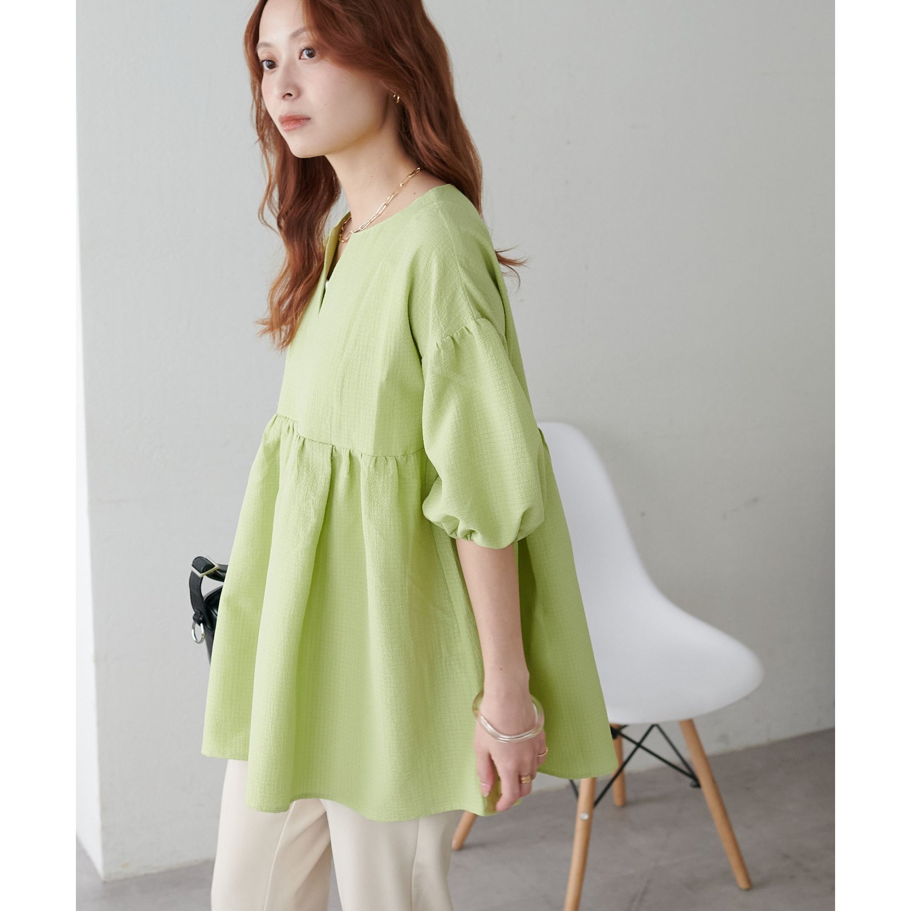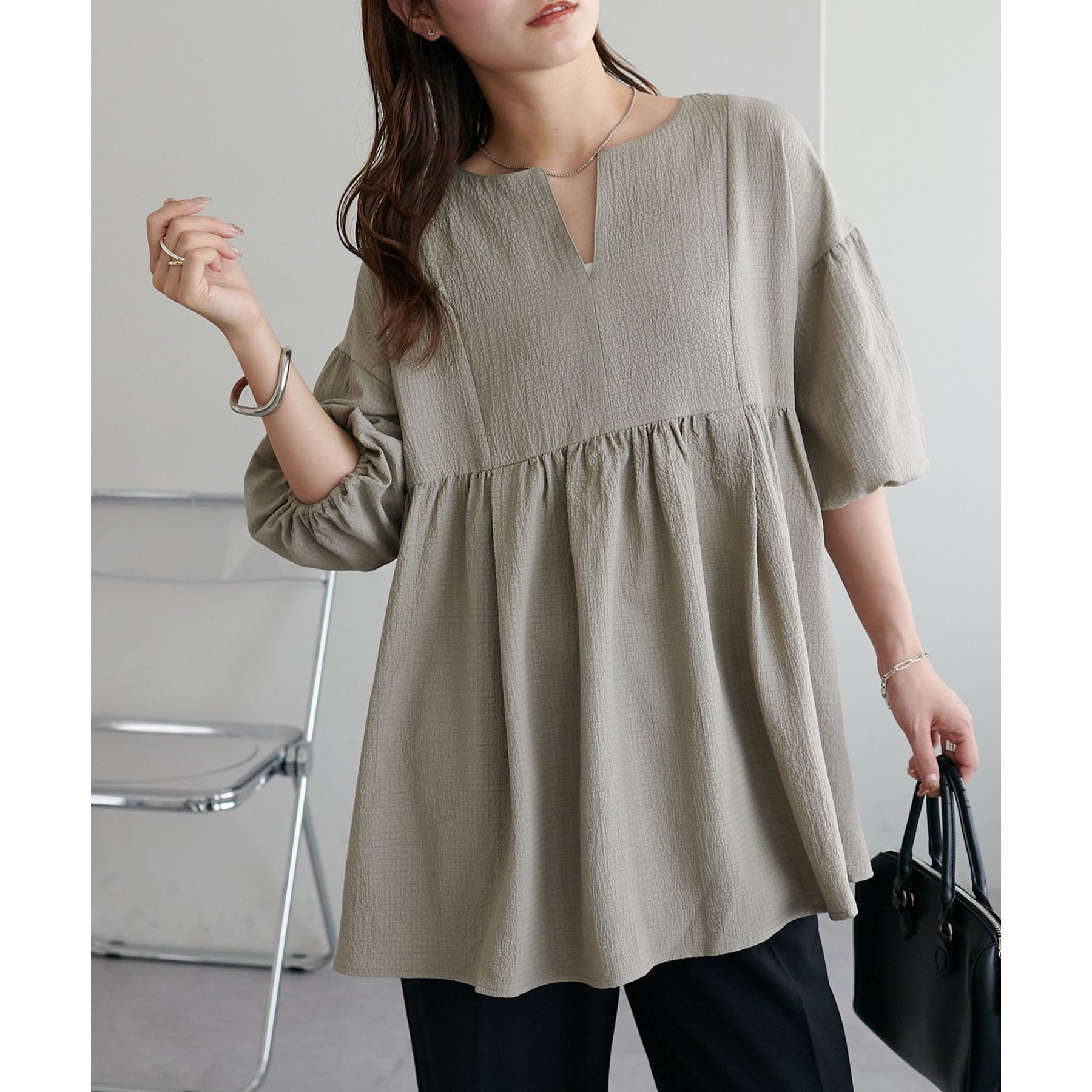 【新色追加!/WEB限定】キーネックペプラムブラウス
