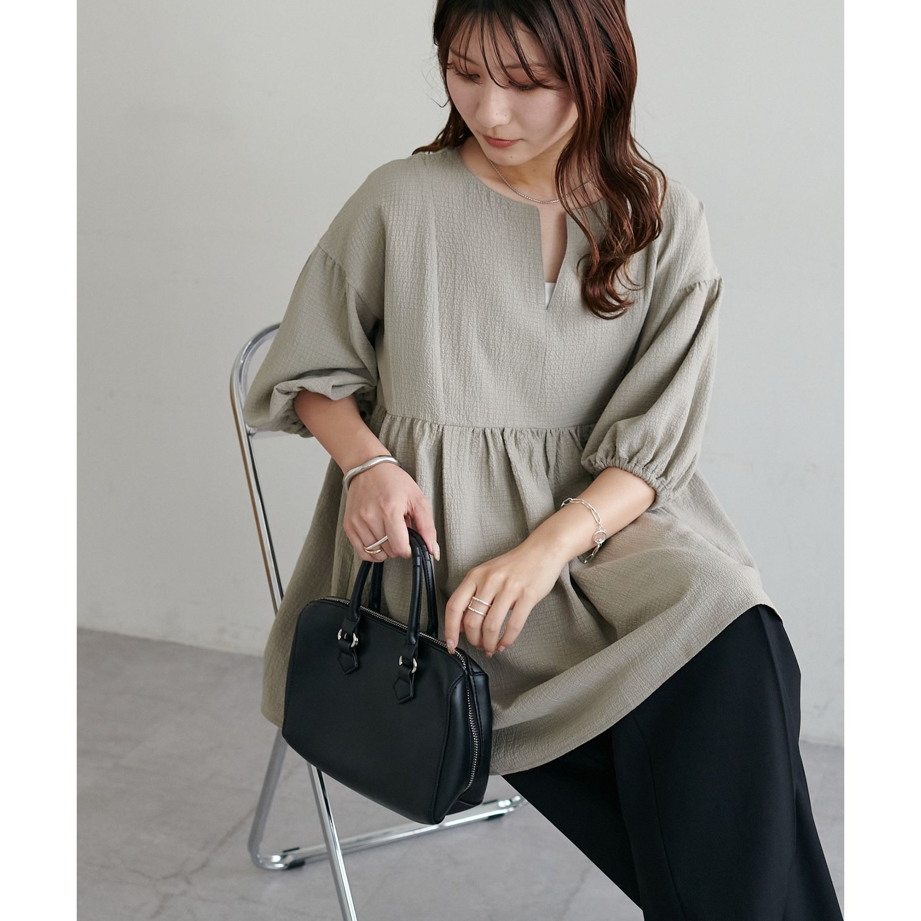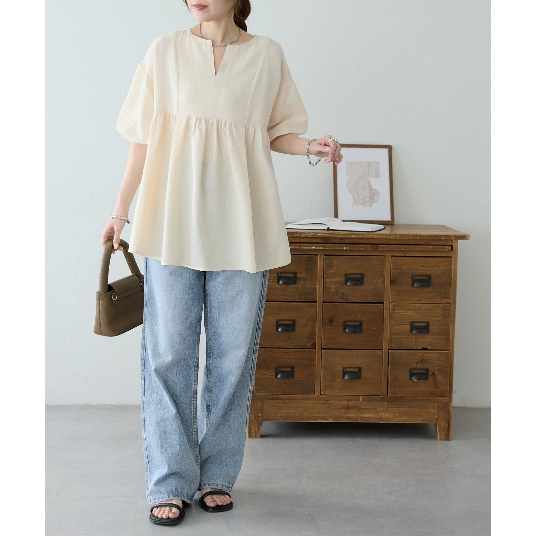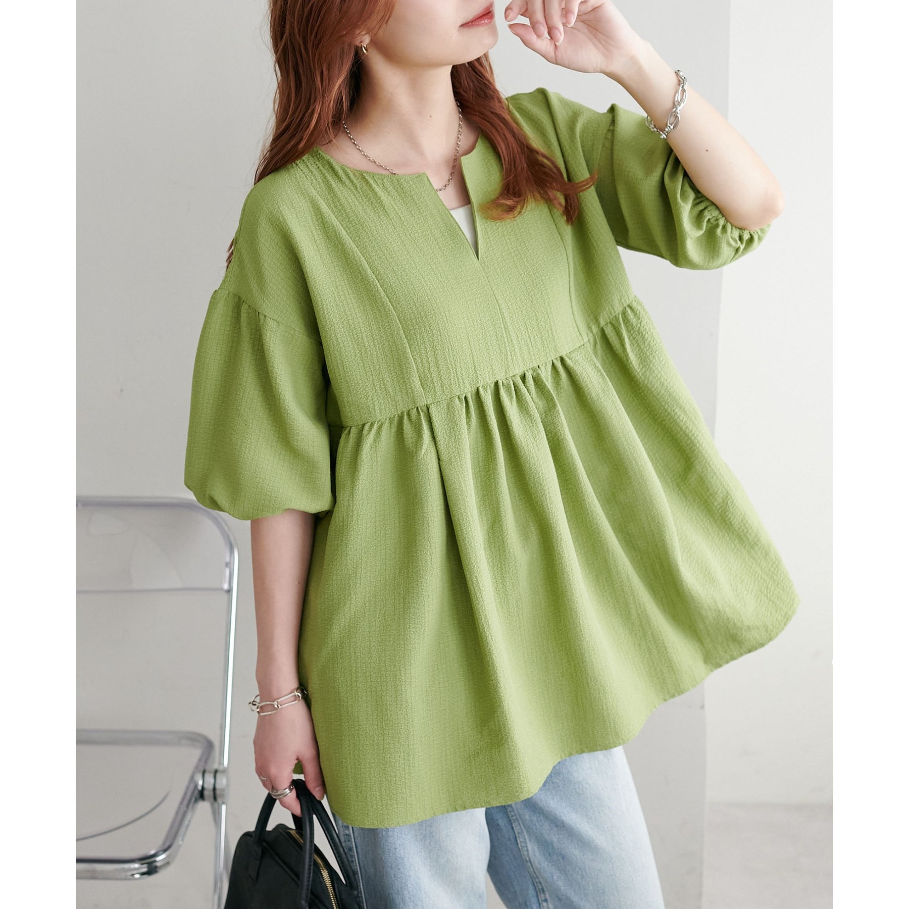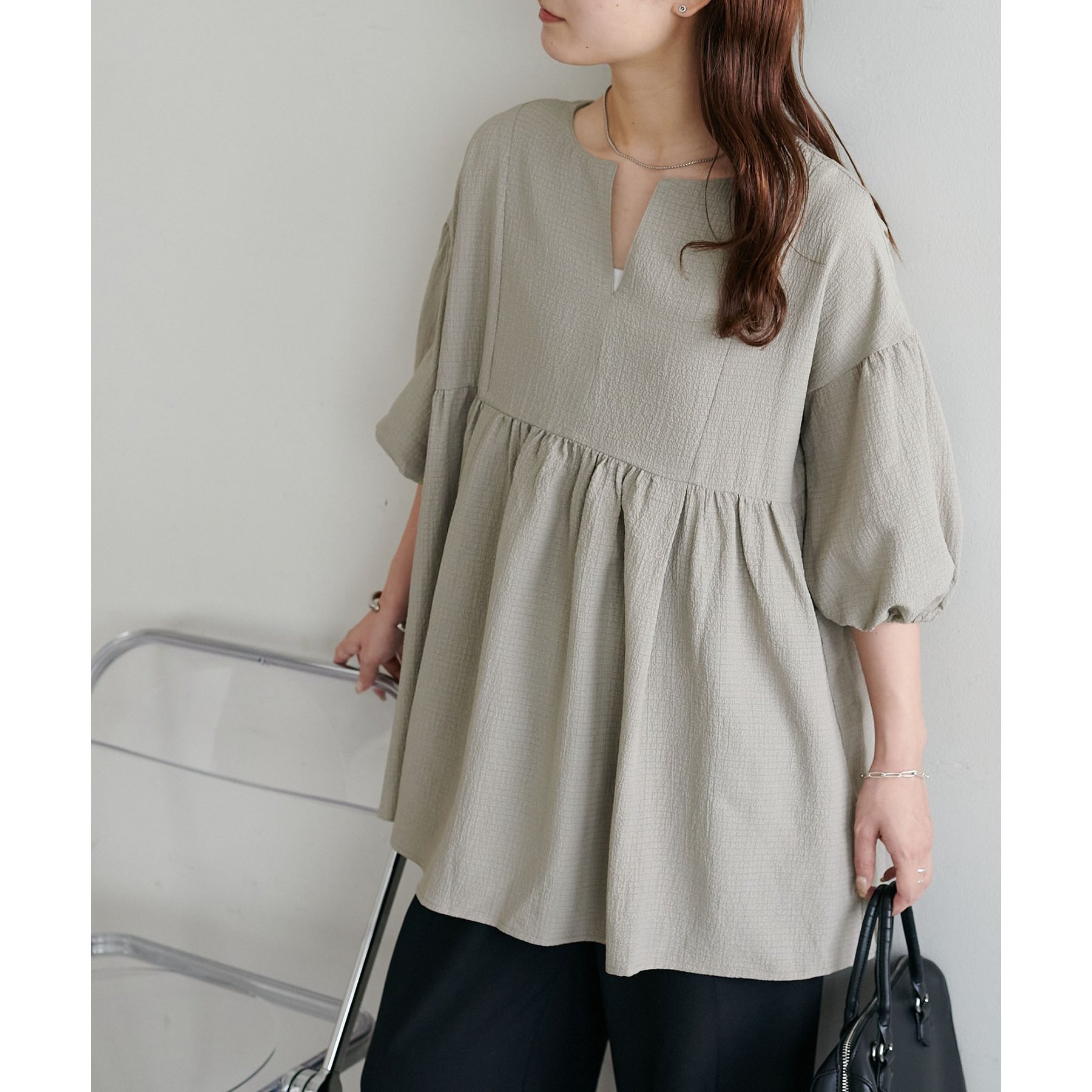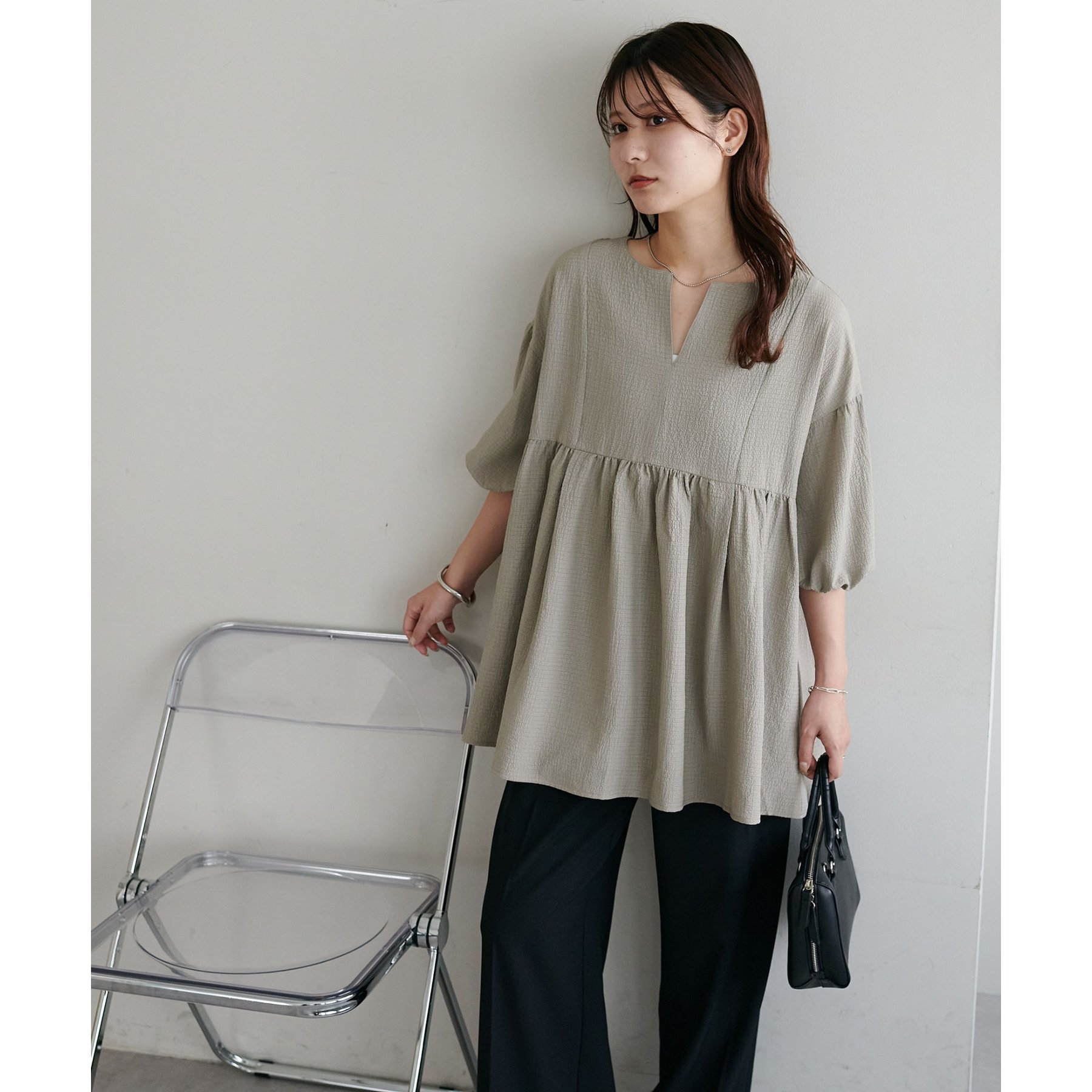 【新色追加!/WEB限定】キーネックペプラムブラウス