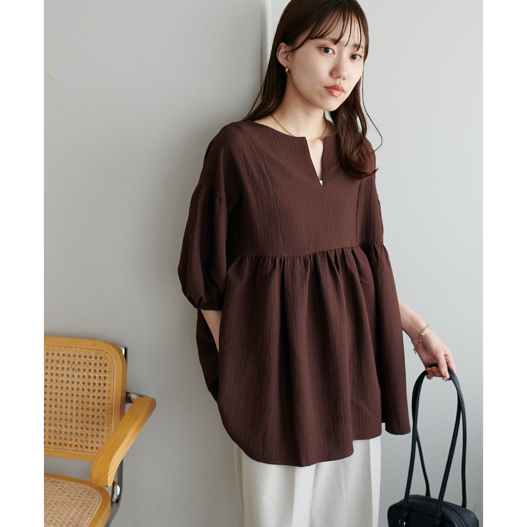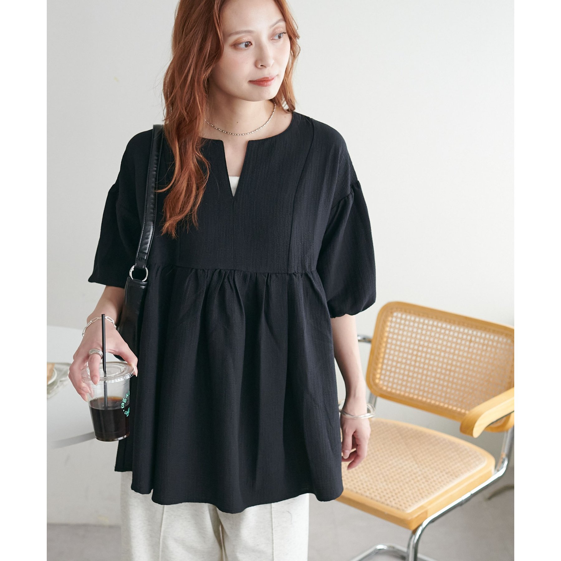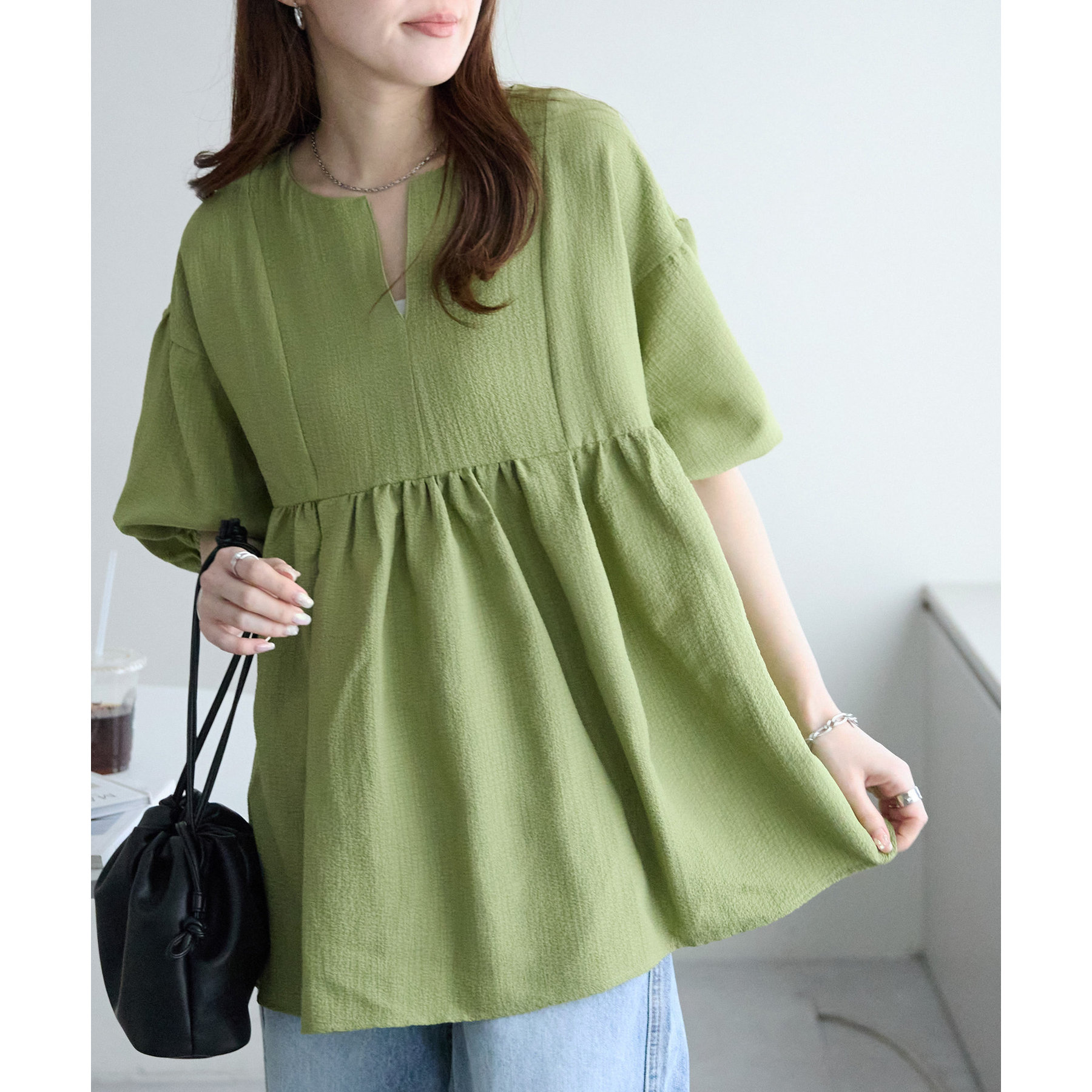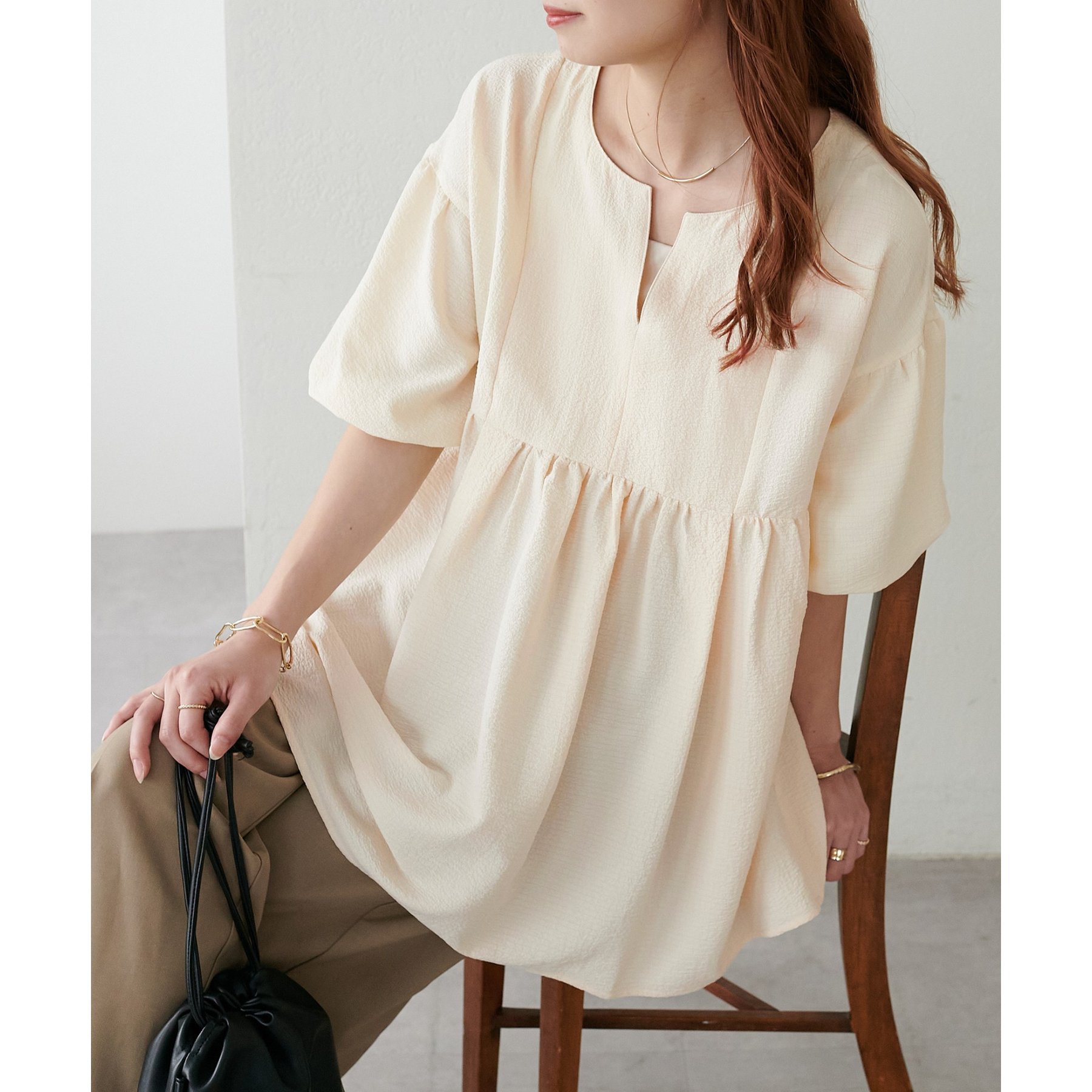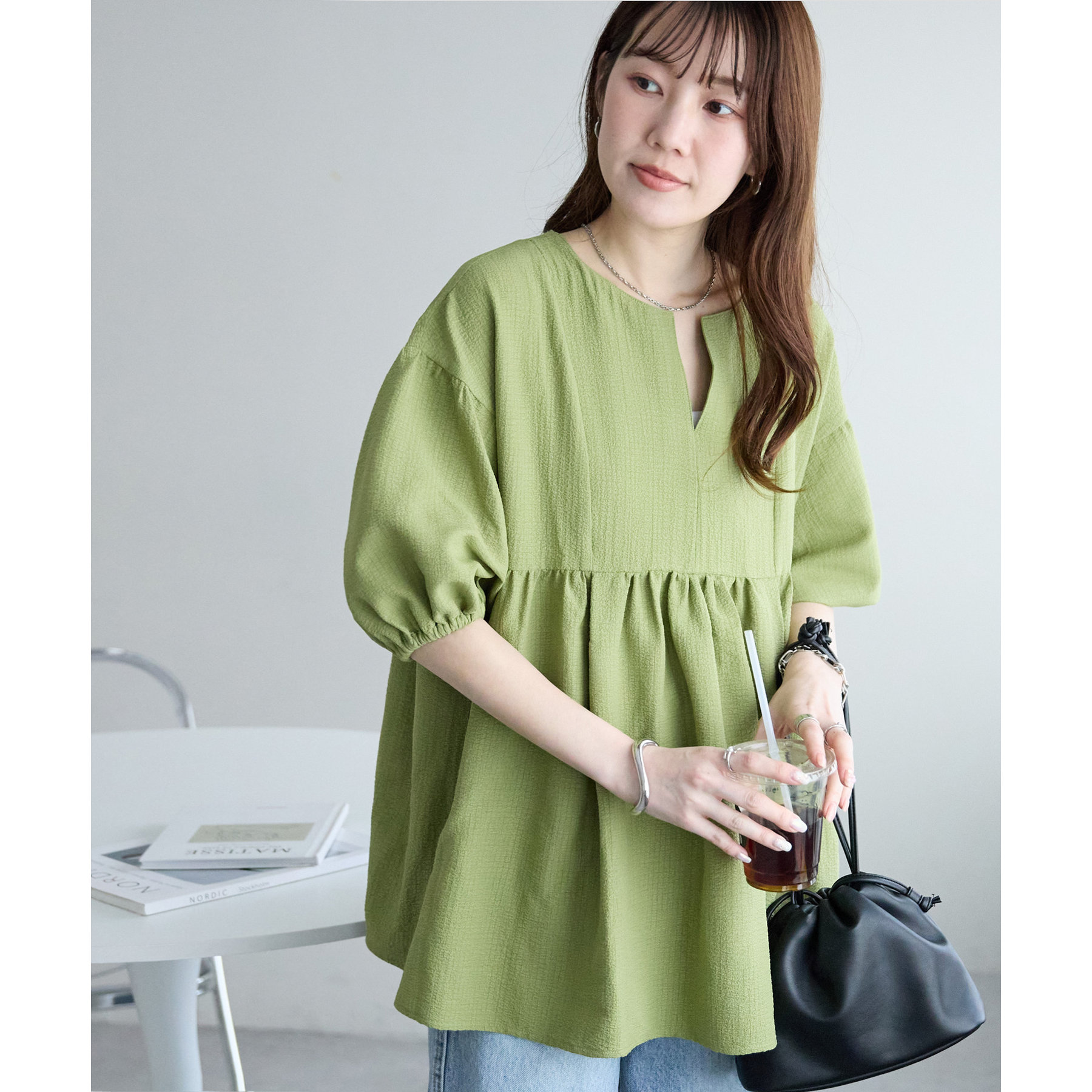 【新色追加!/WEB限定】キーネックペプラムブラウス