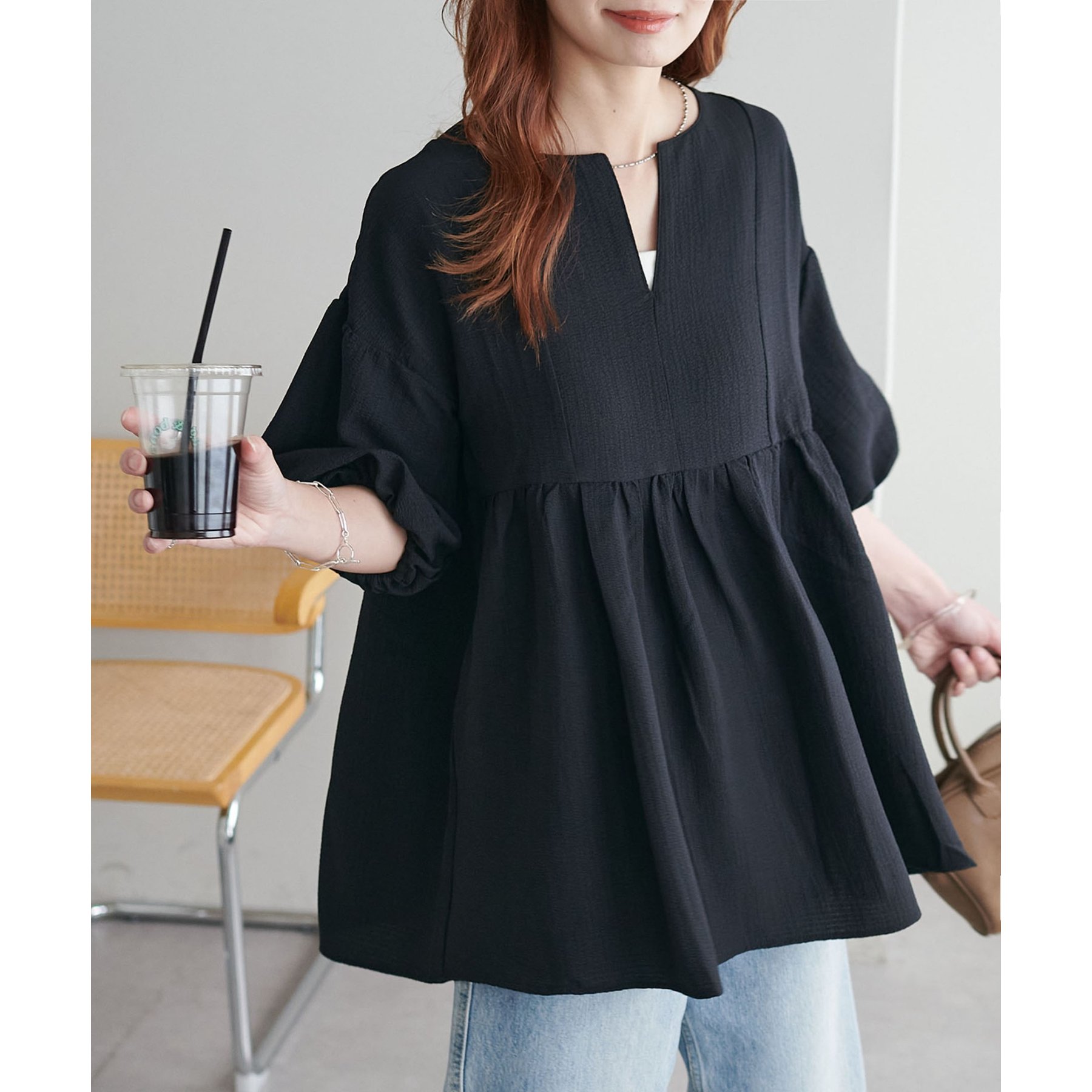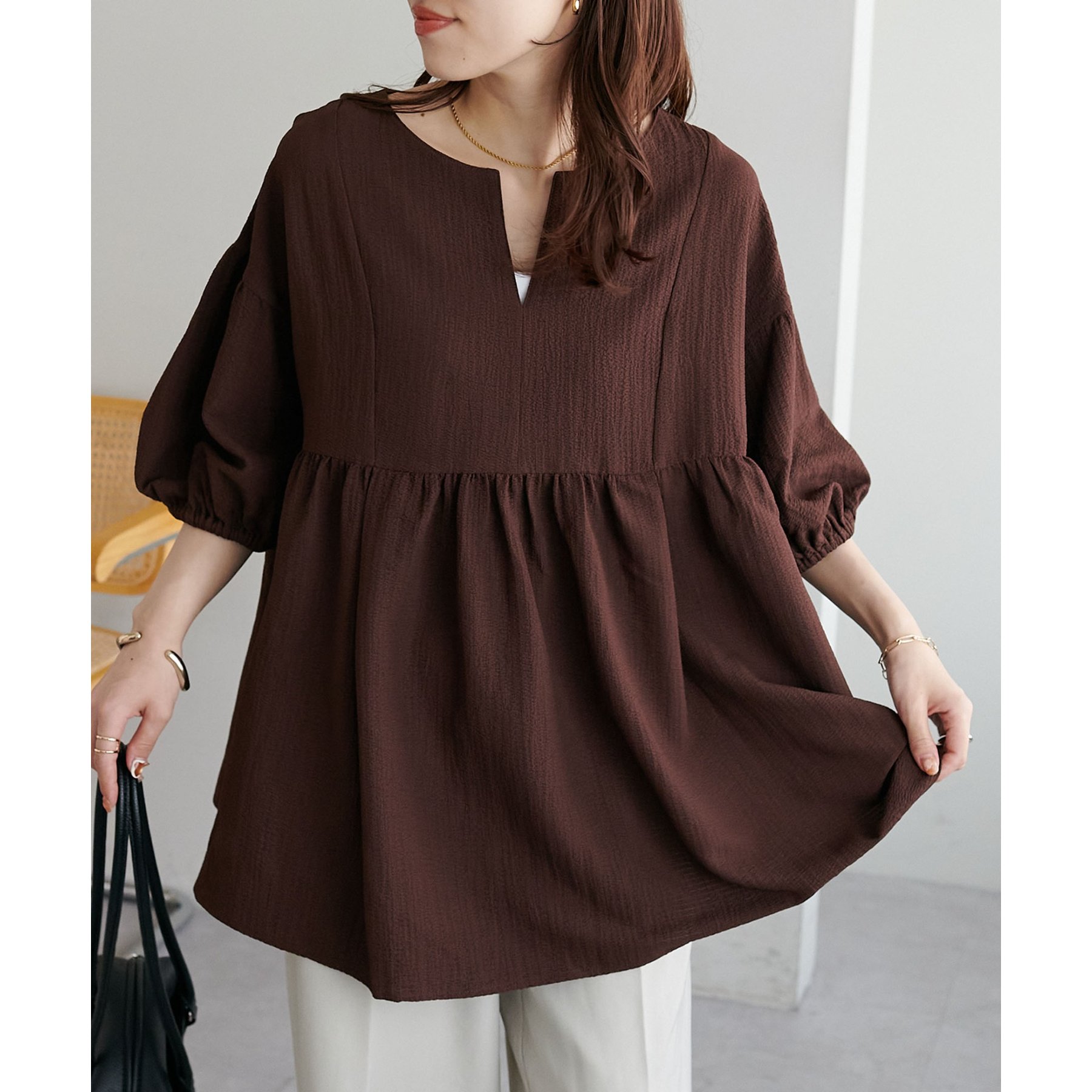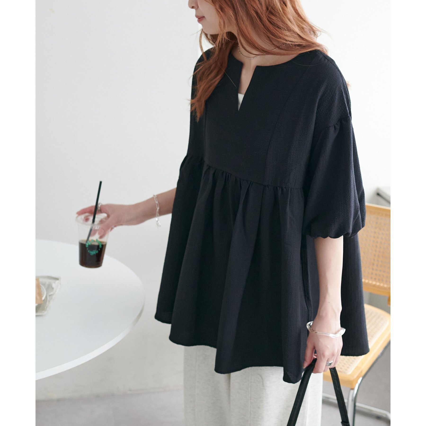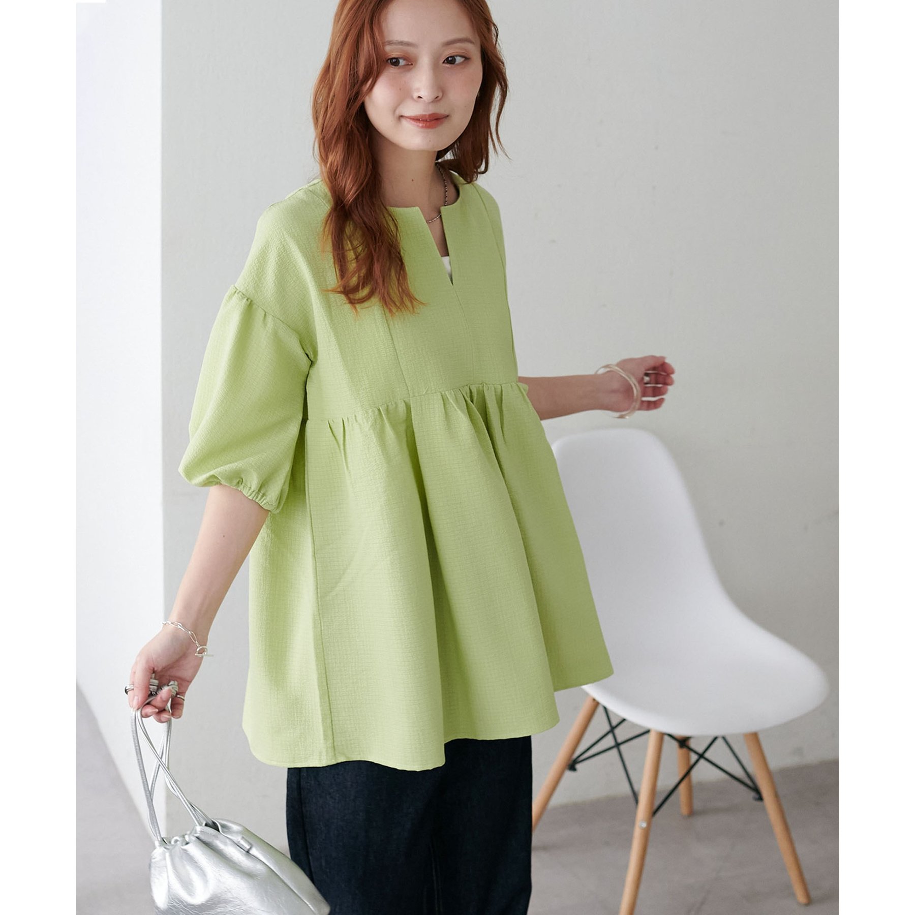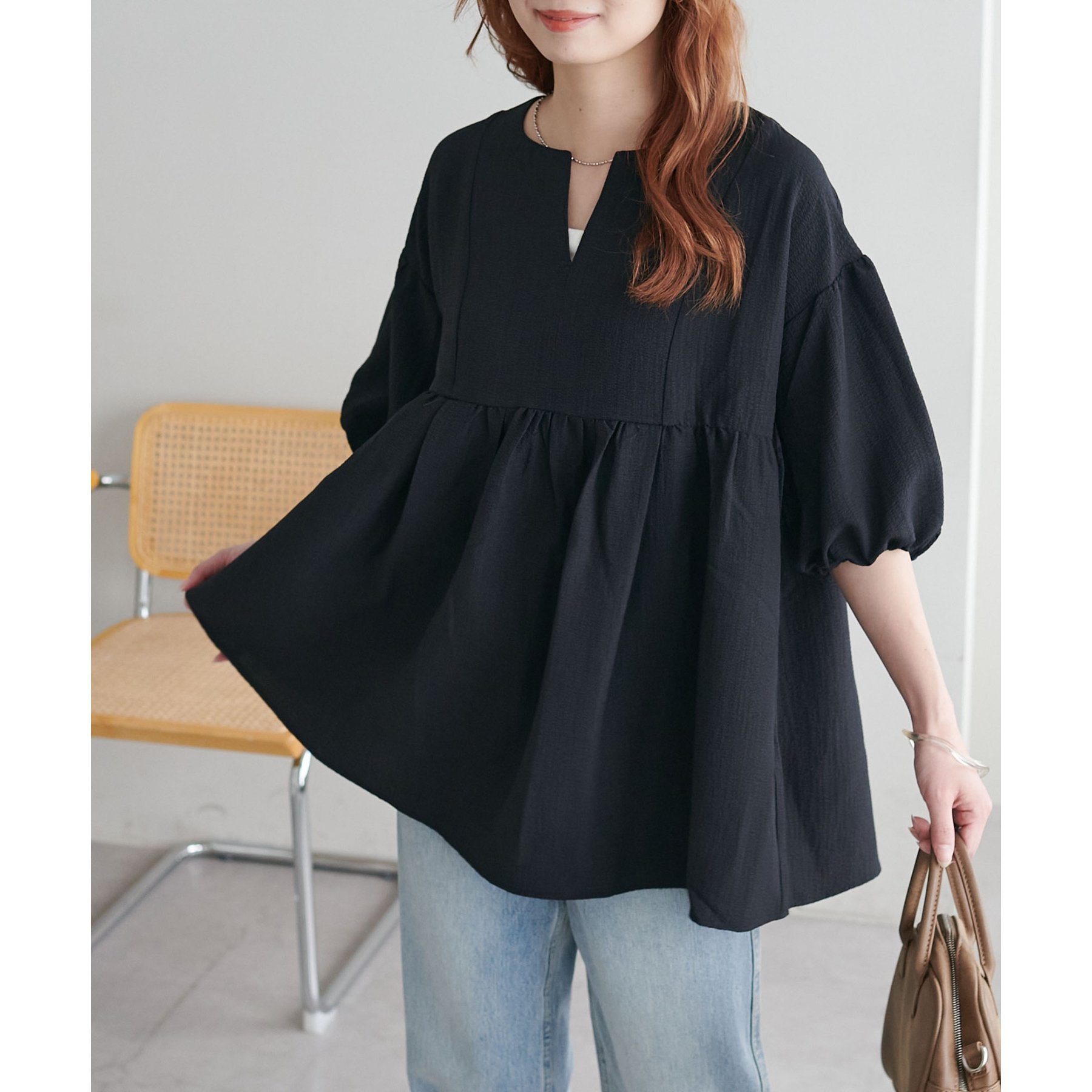 【新色追加!/WEB限定】キーネックペプラムブラウス
