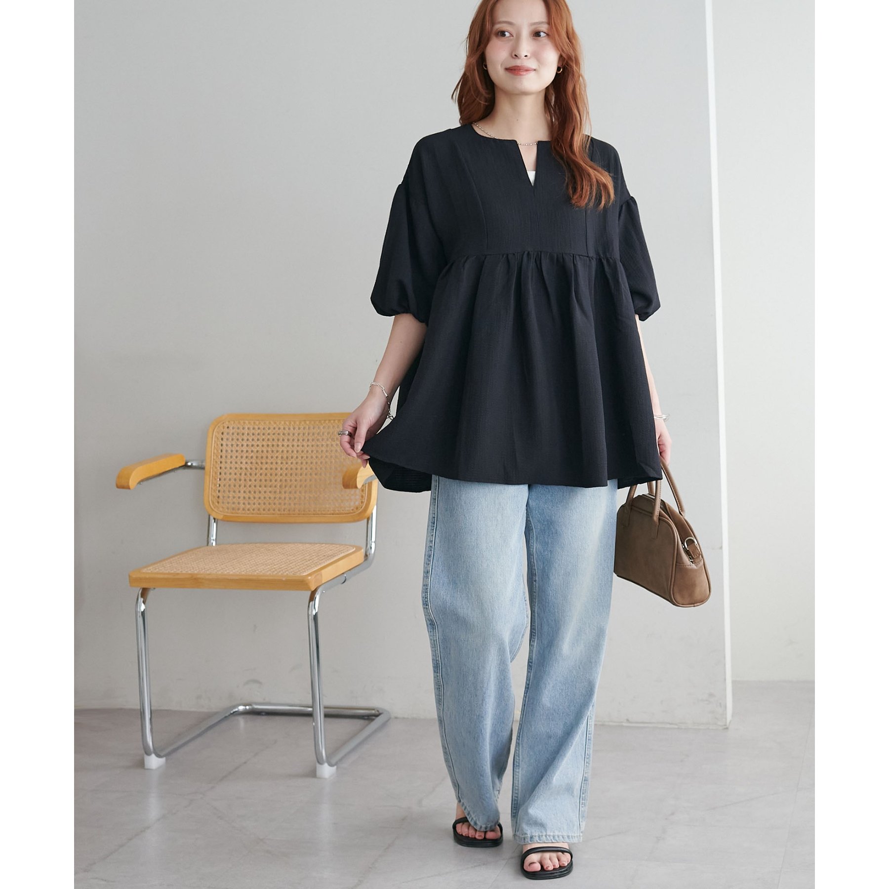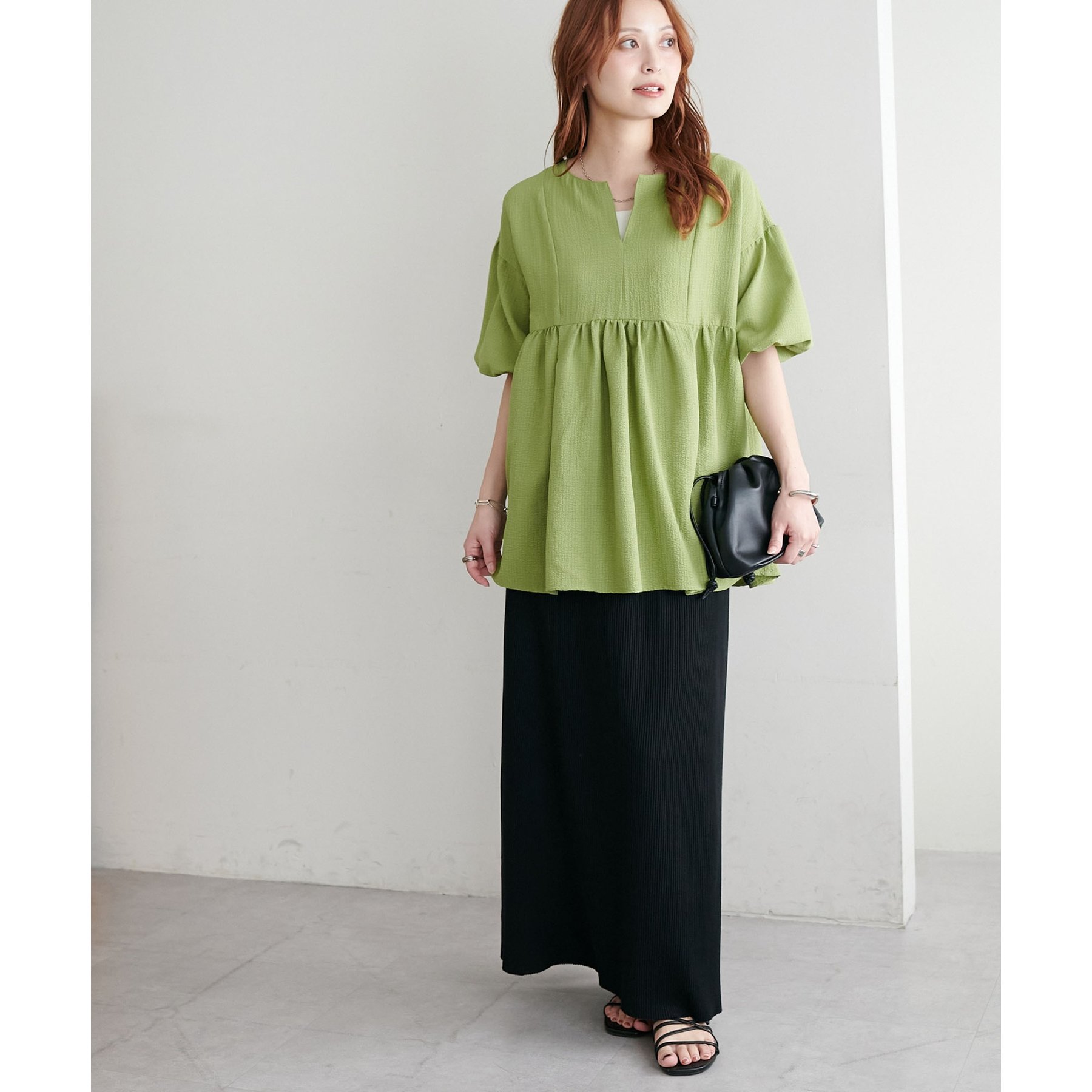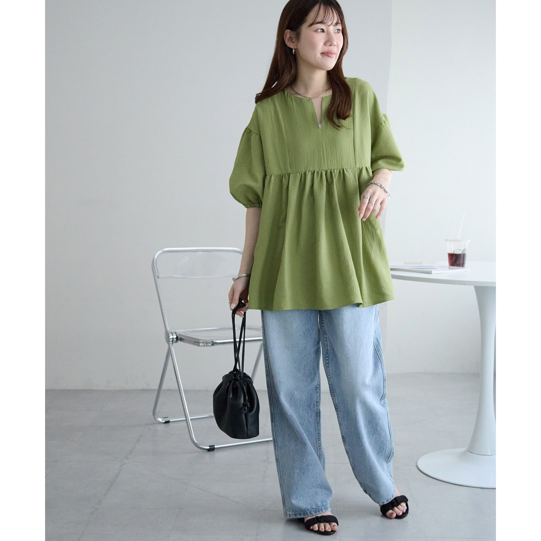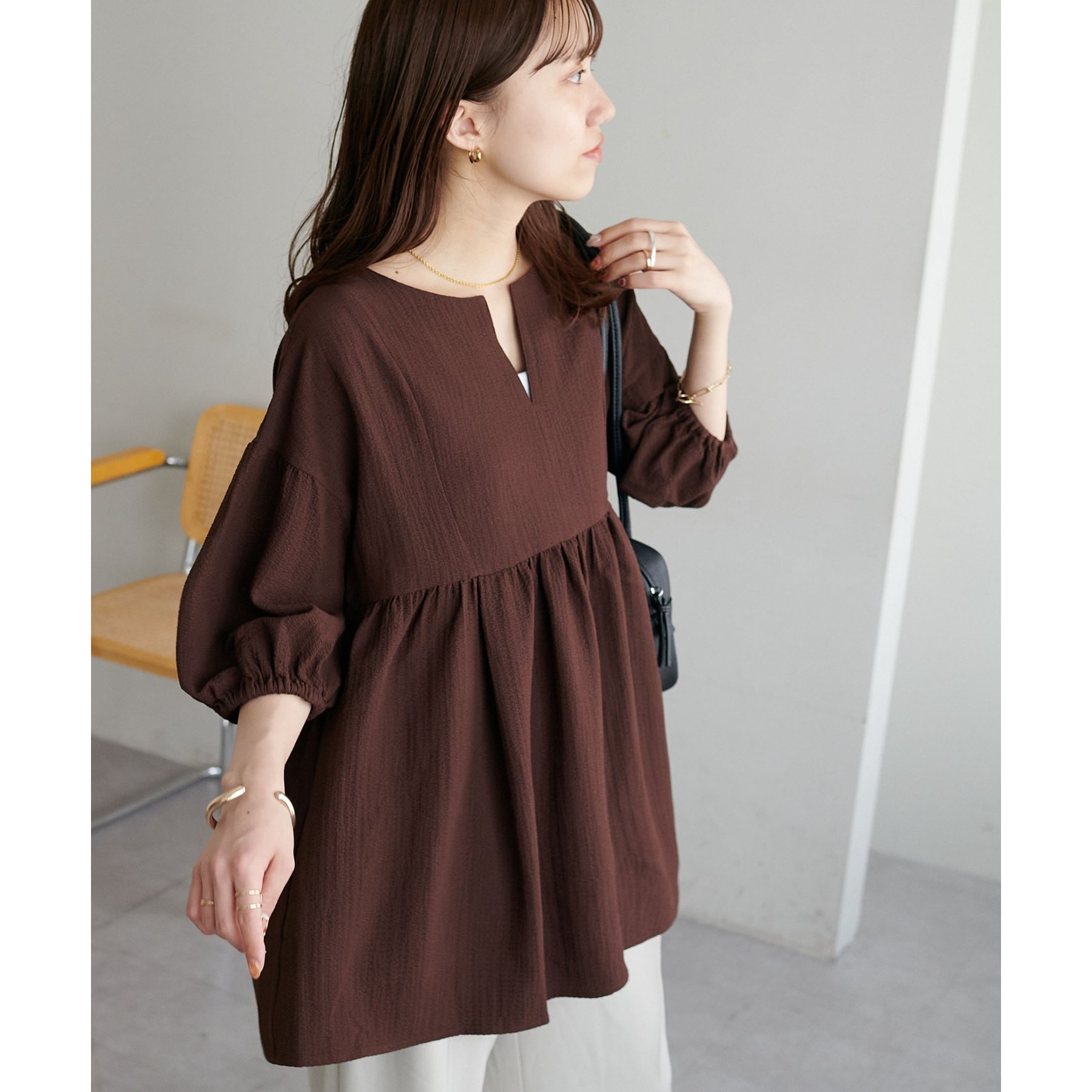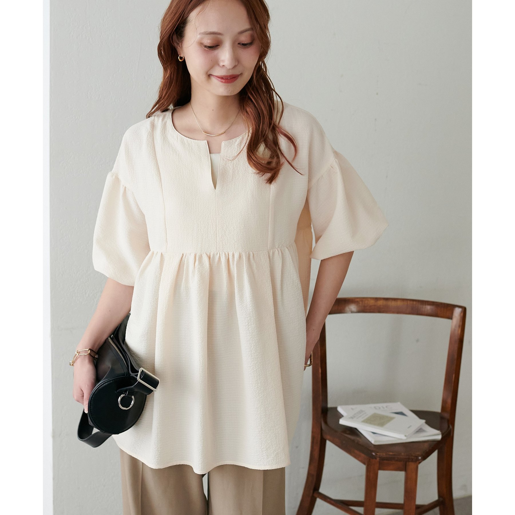 【新色追加!/WEB限定】キーネックペプラムブラウス