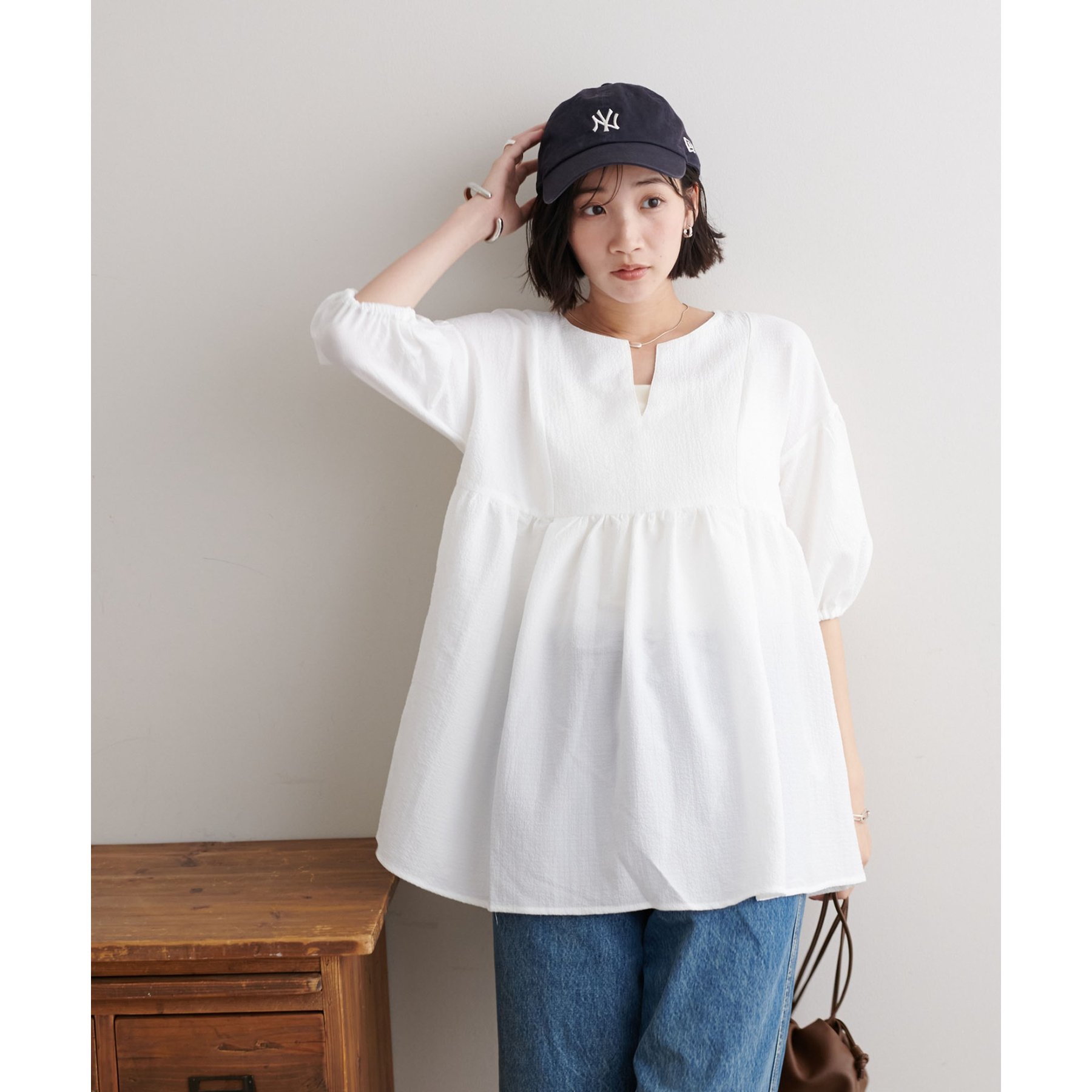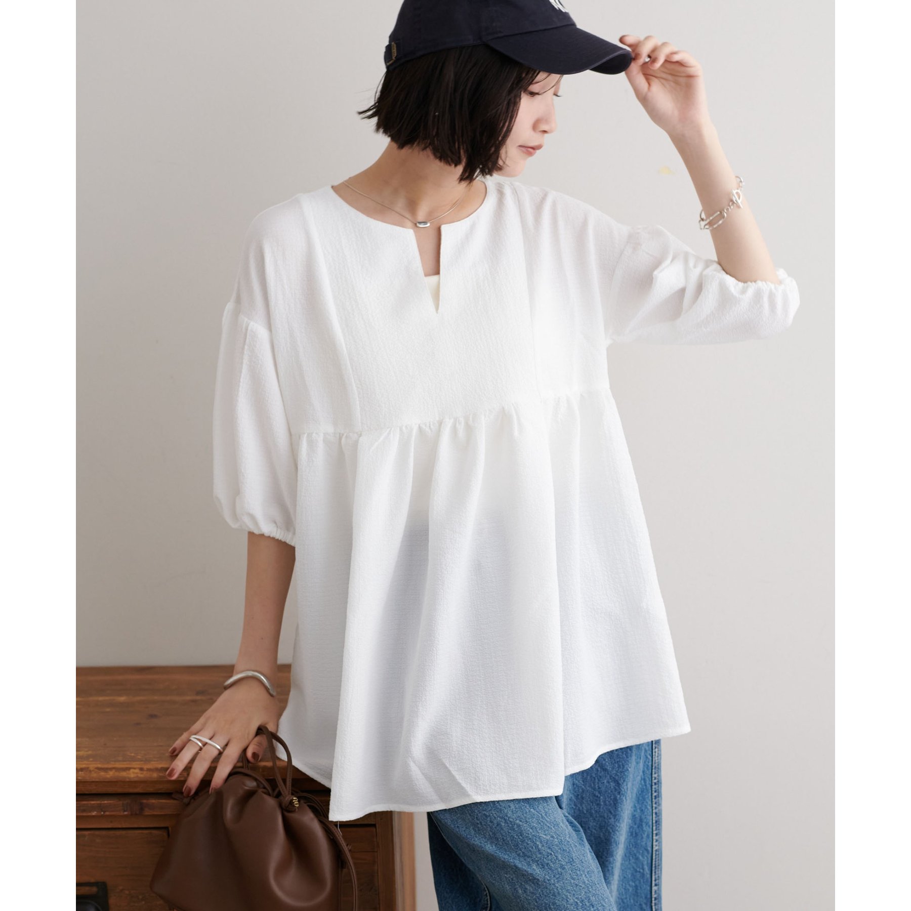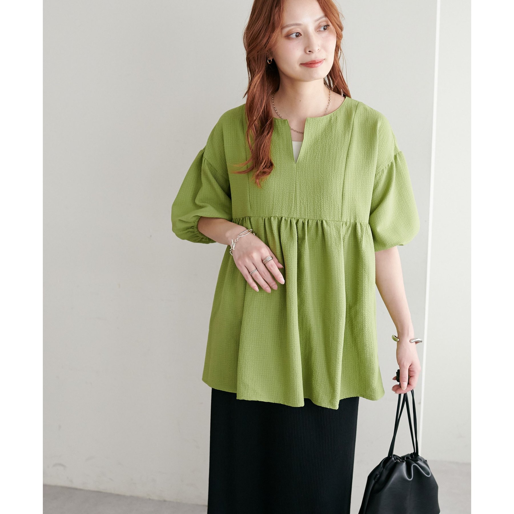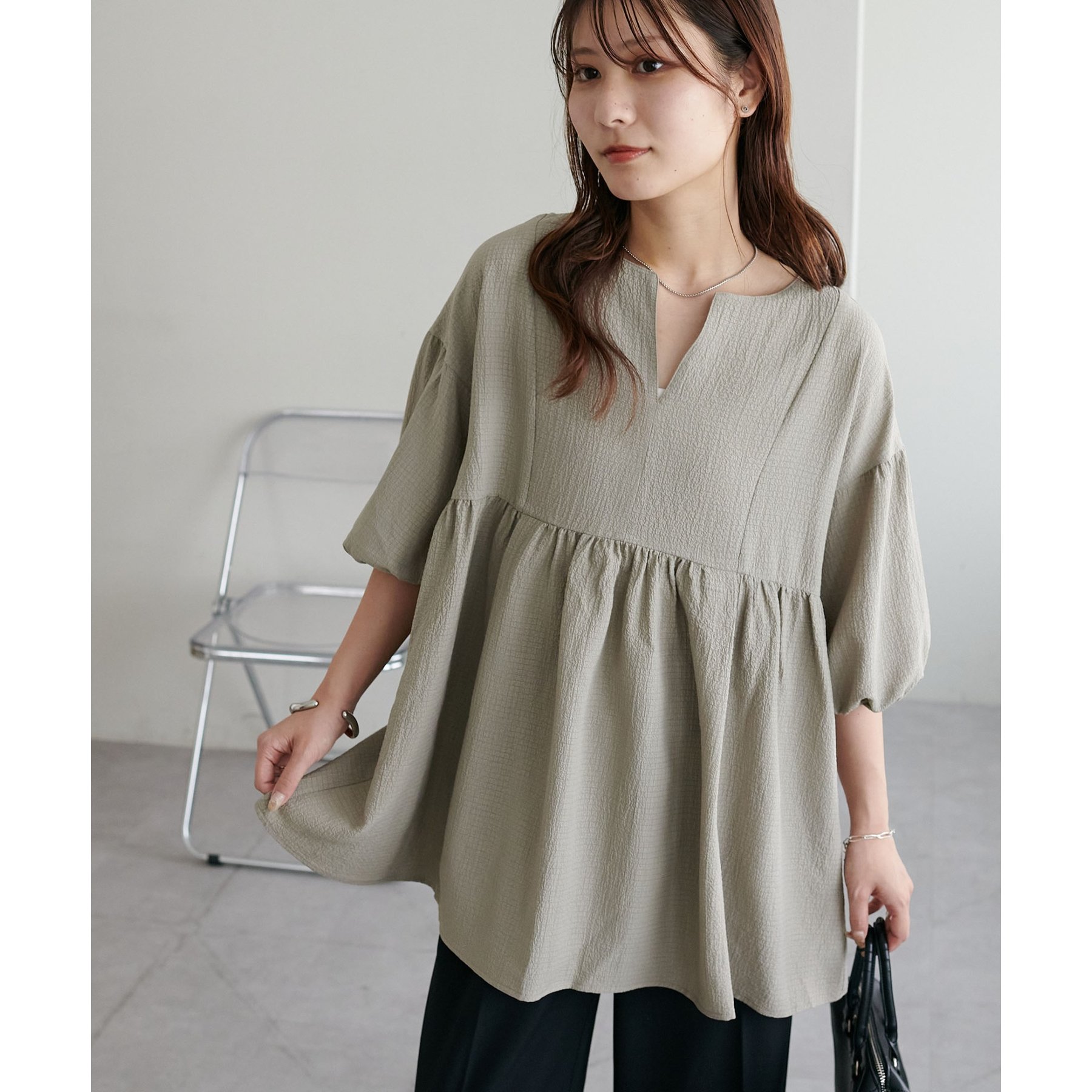 【新色追加!/WEB限定】キーネックペプラムブラウス