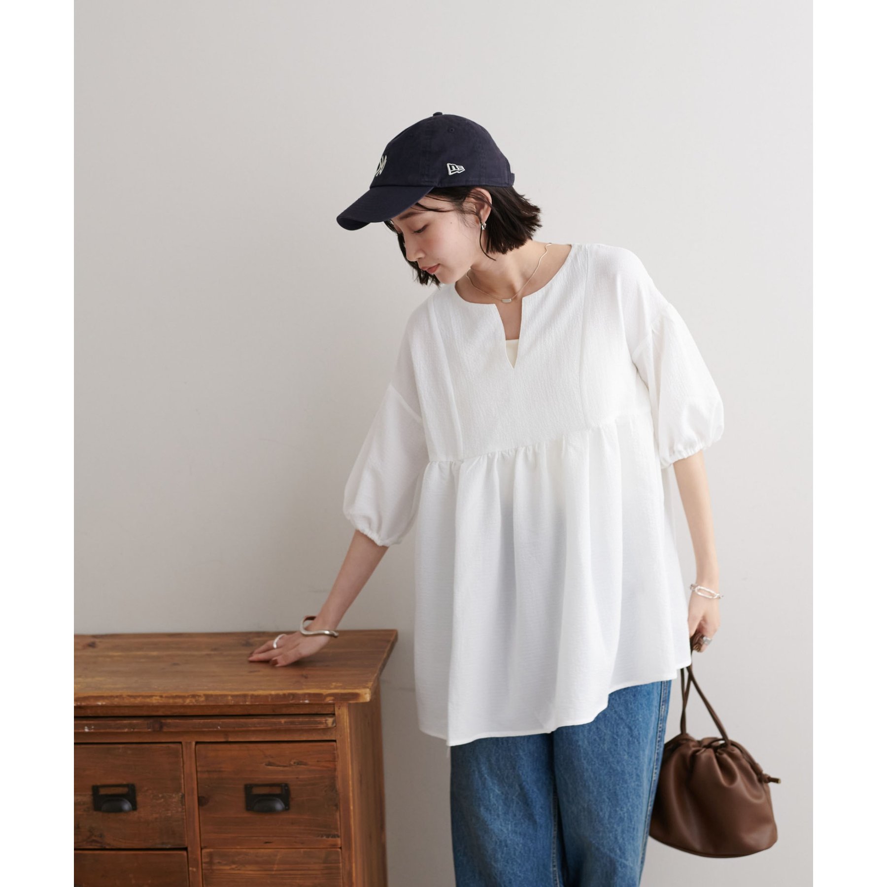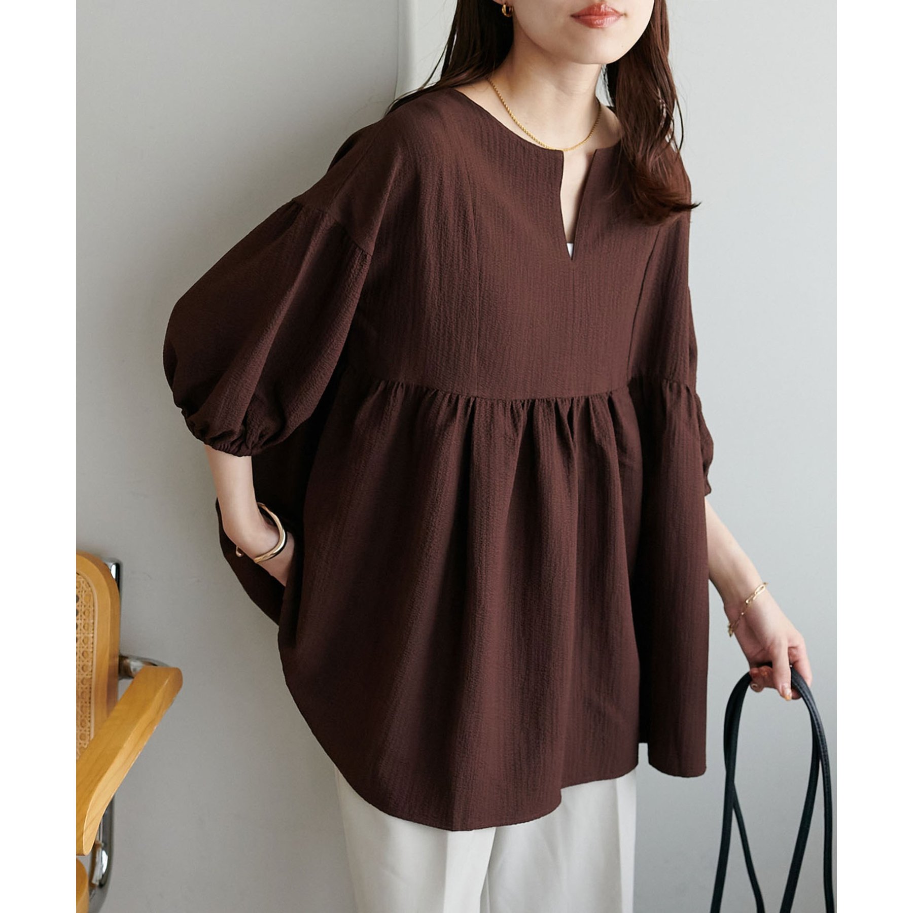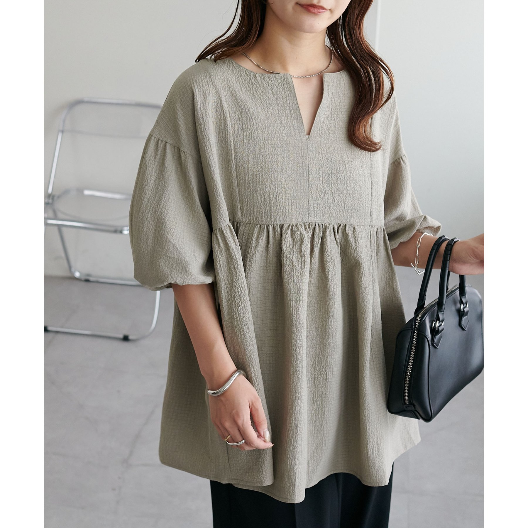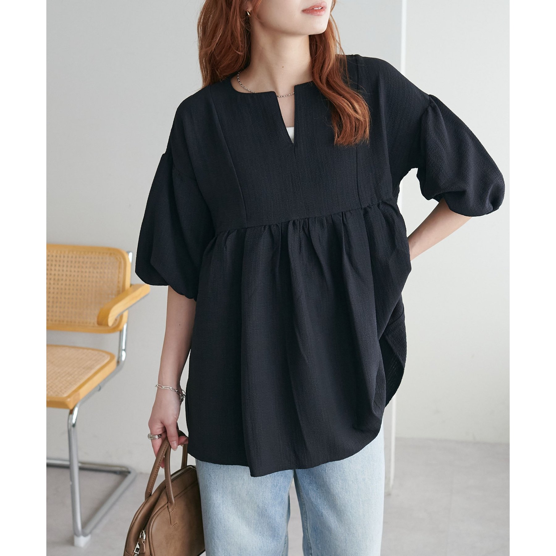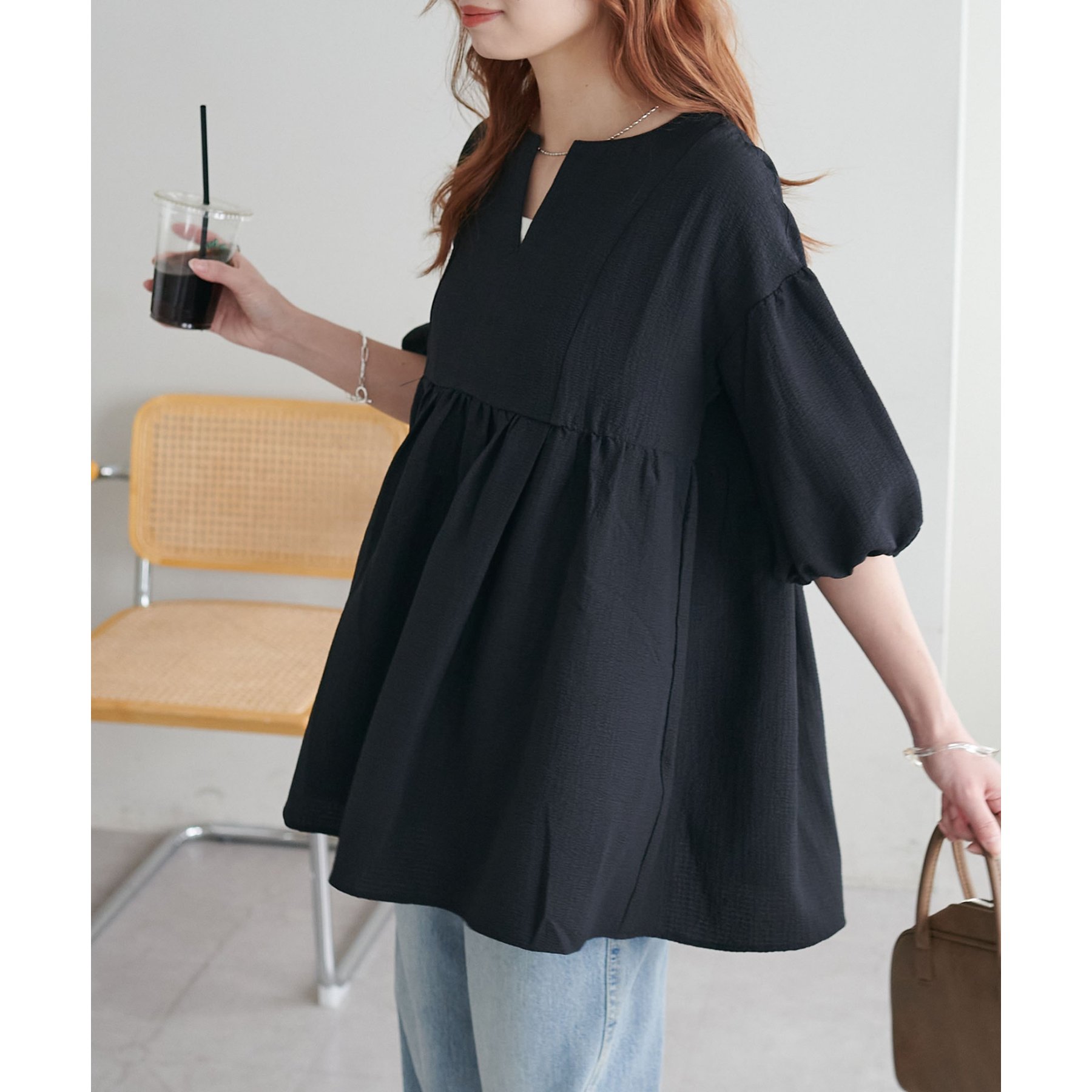 【新色追加!/WEB限定】キーネックペプラムブラウス