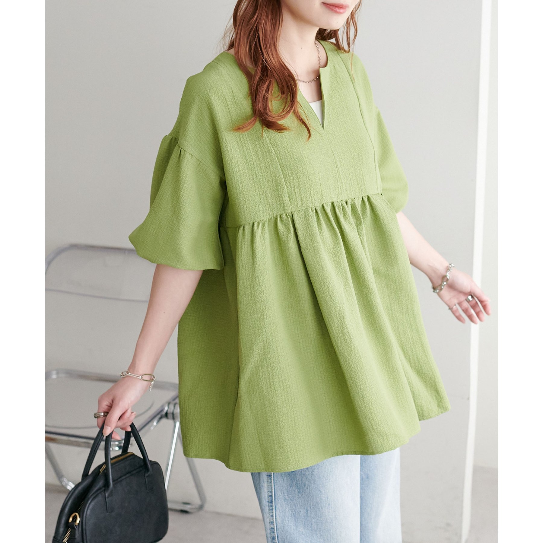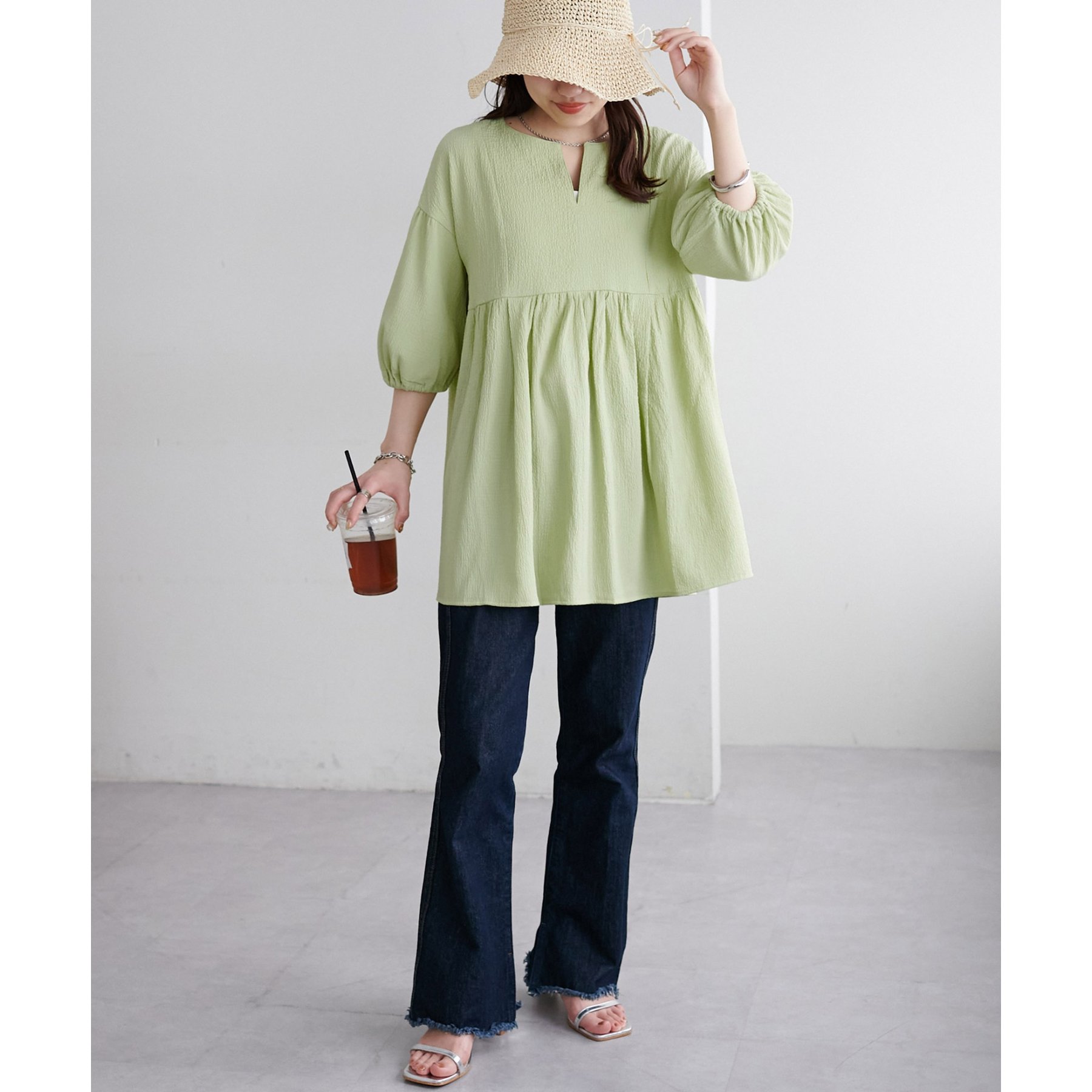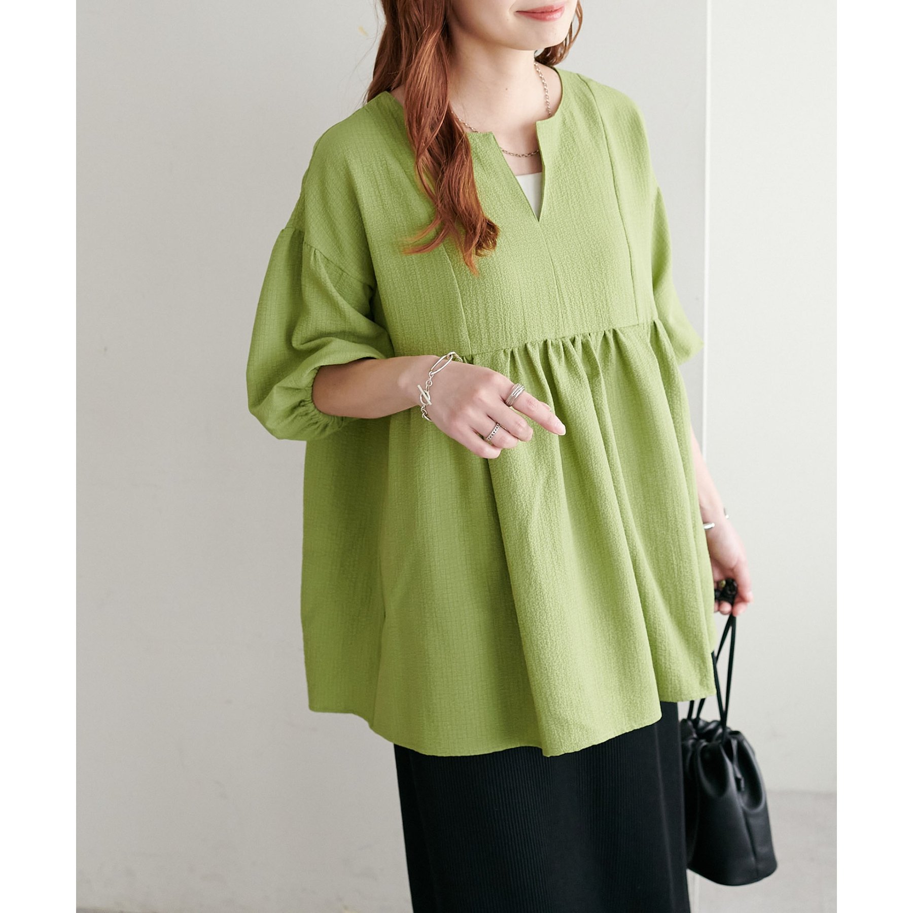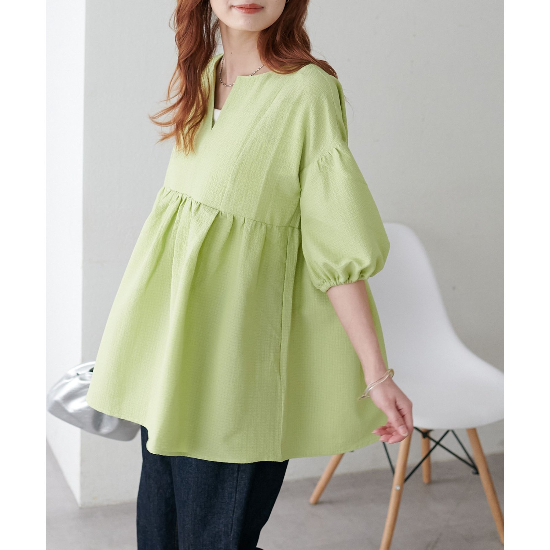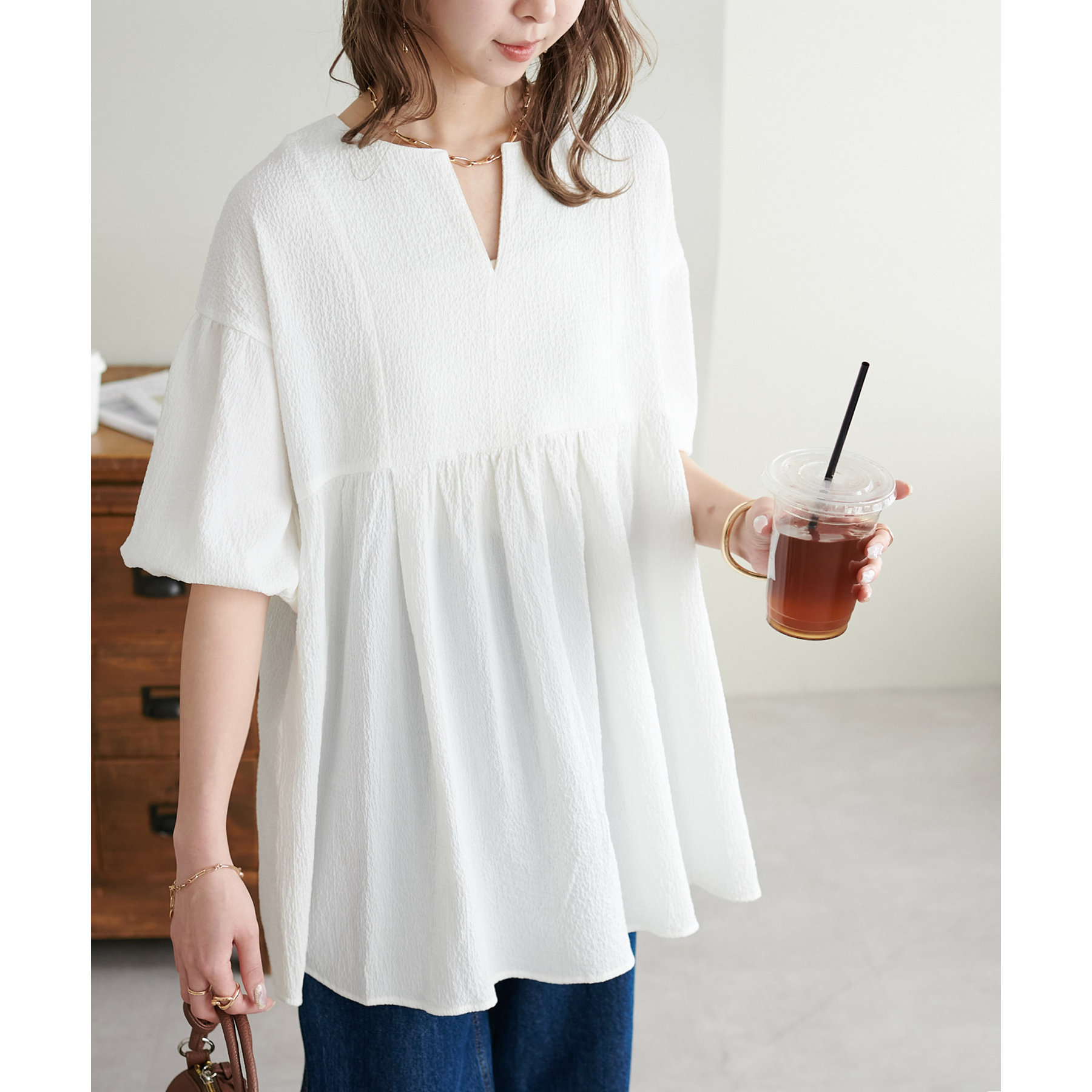 【新色追加!/WEB限定】キーネックペプラムブラウス
