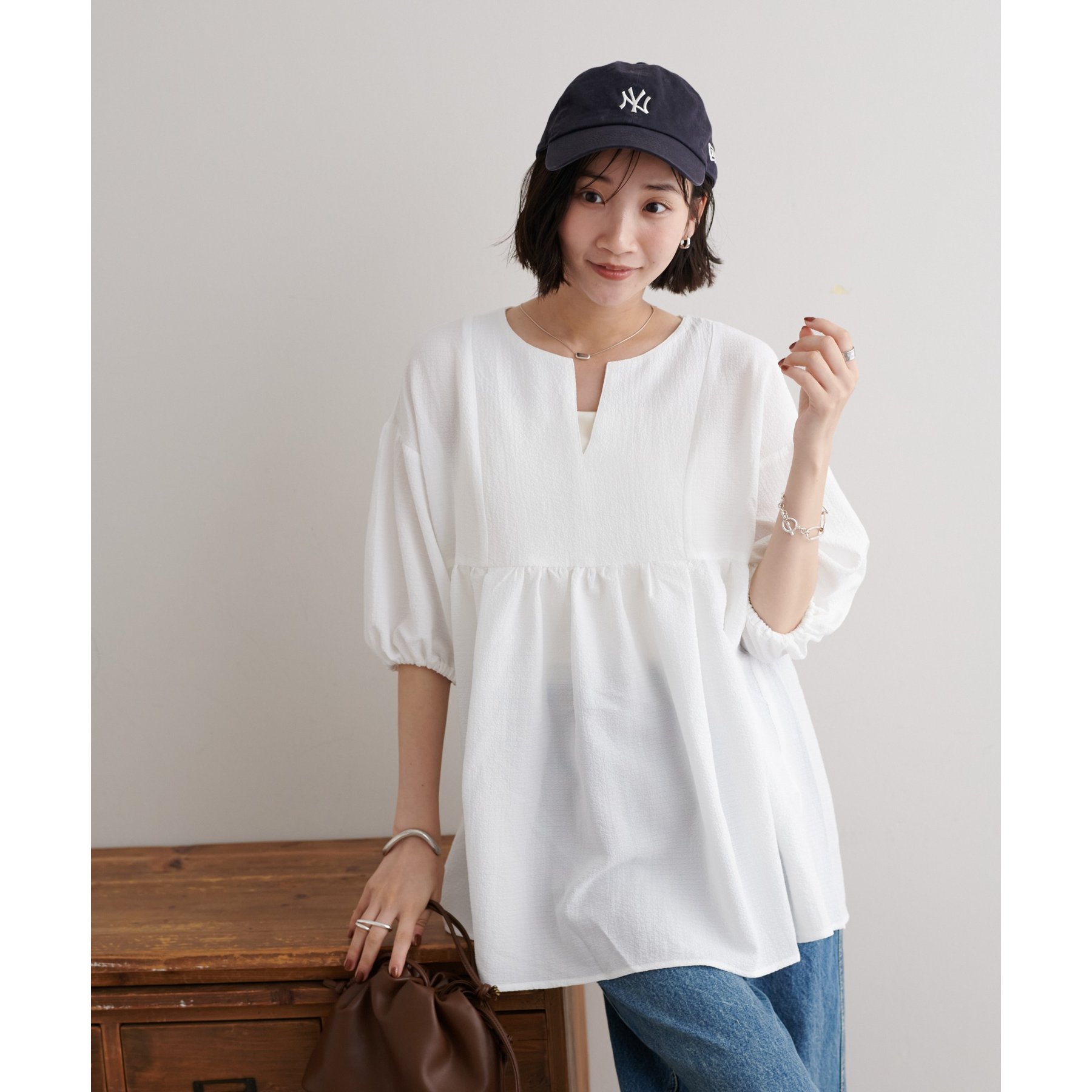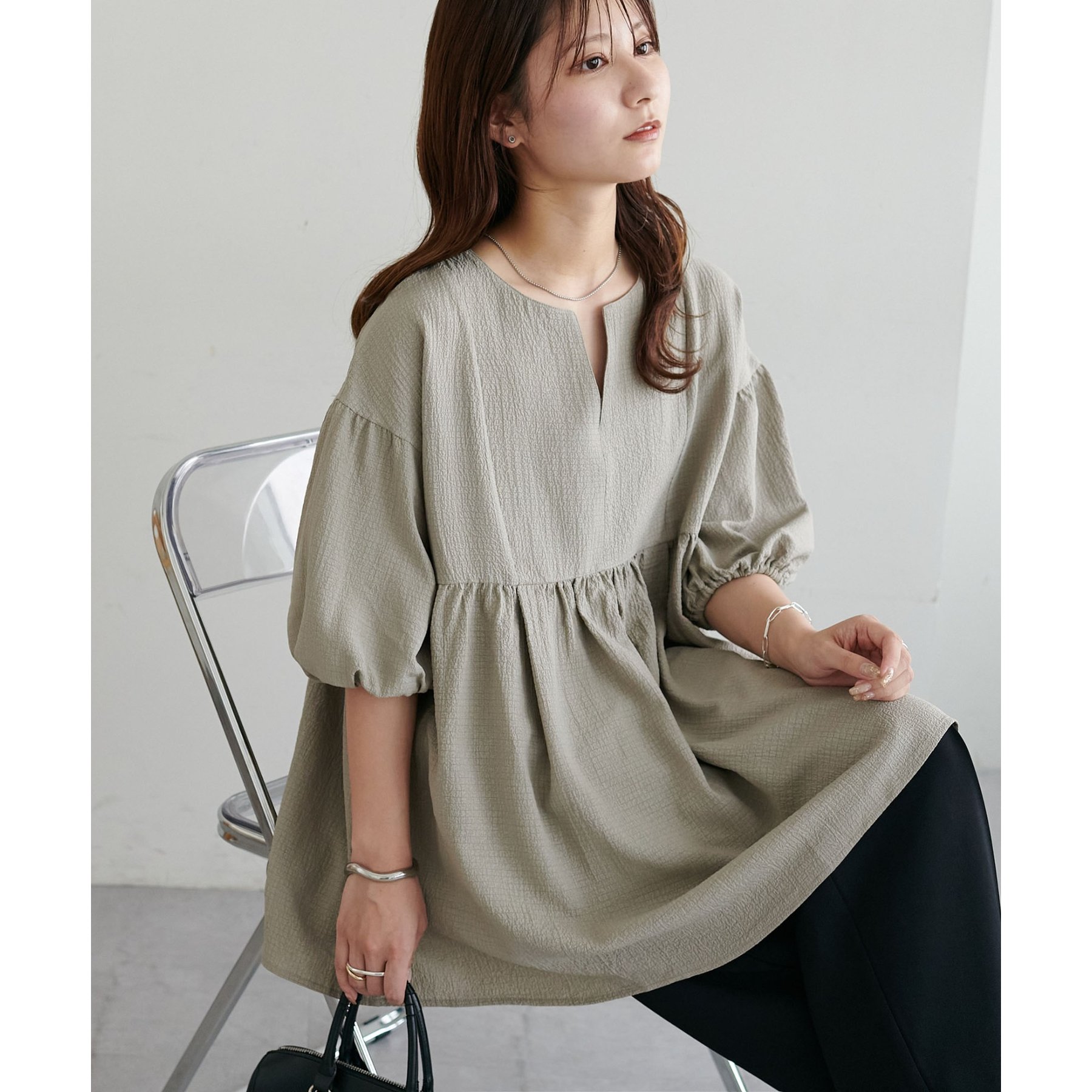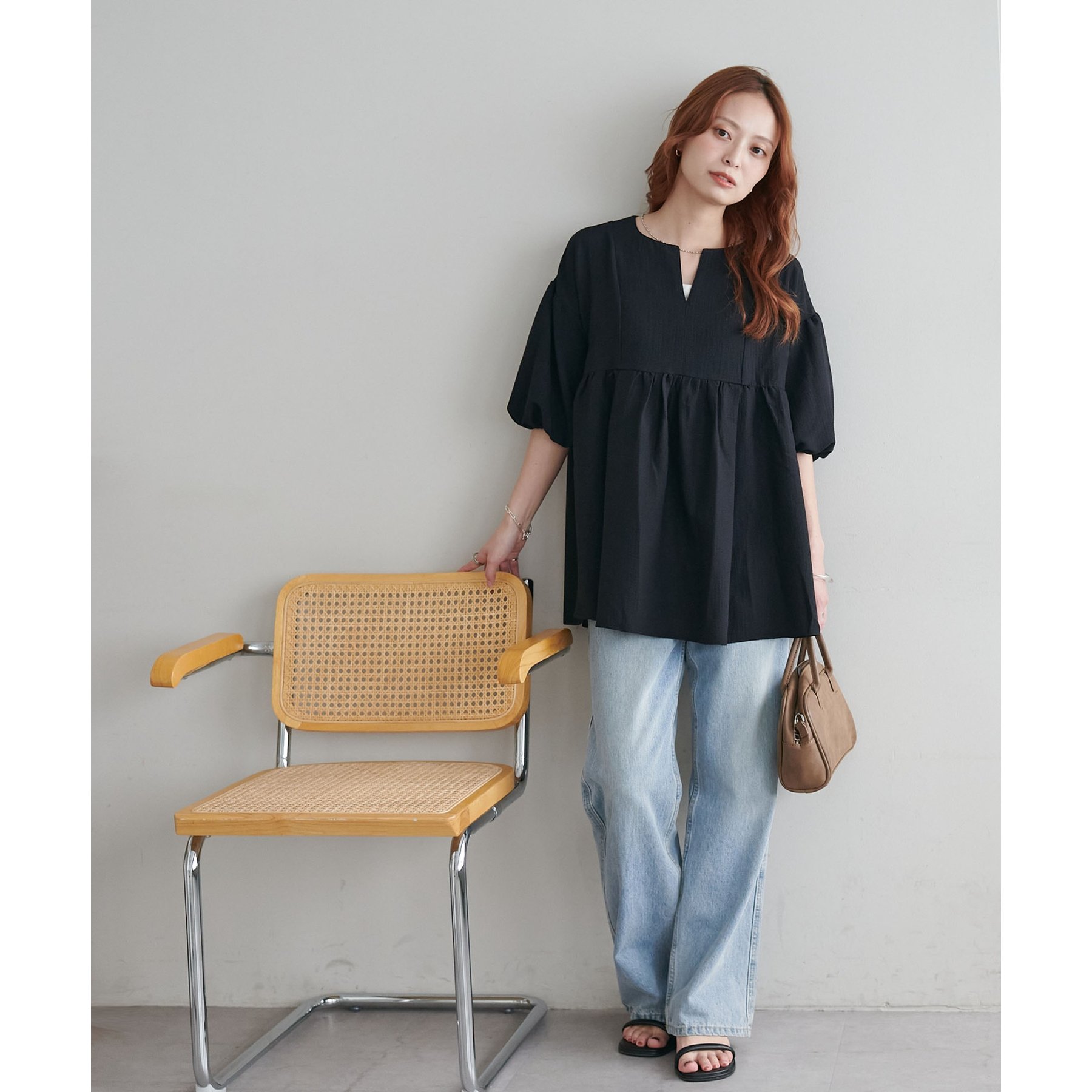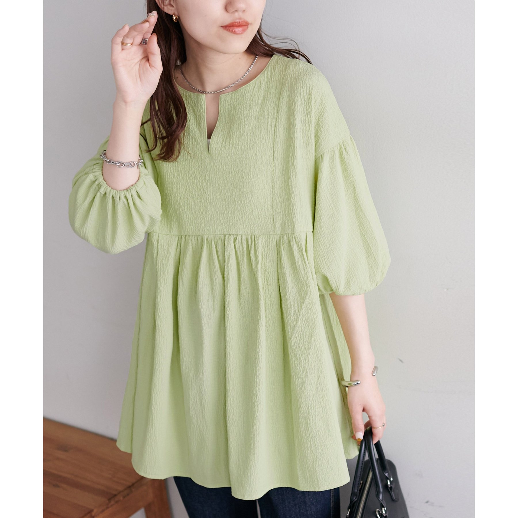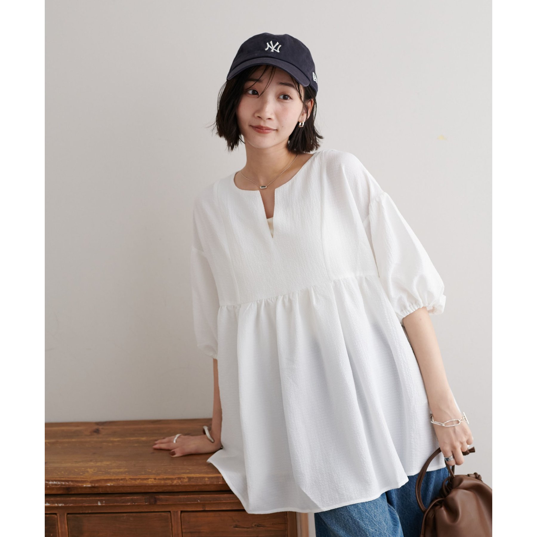 【新色追加!/WEB限定】キーネックペプラムブラウス