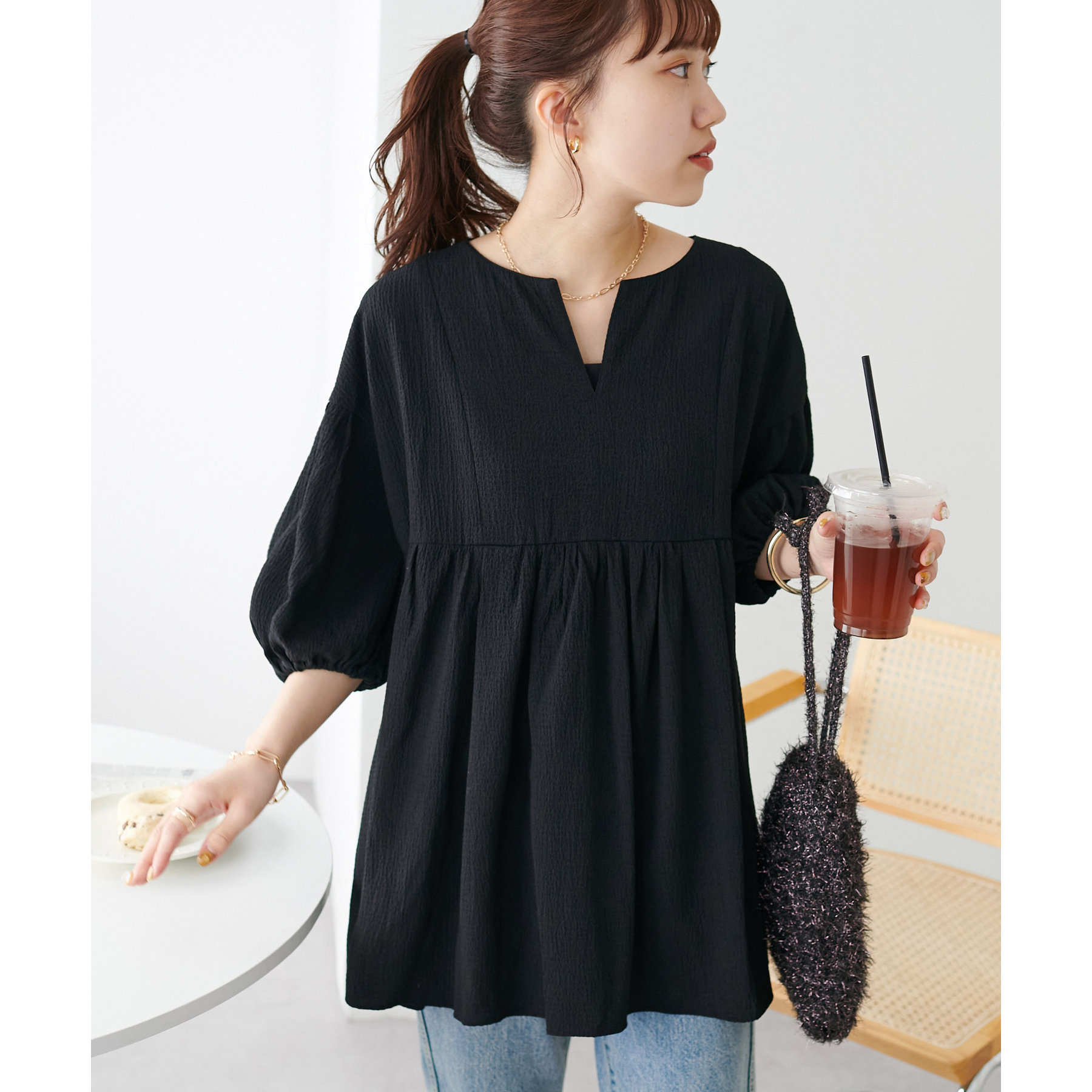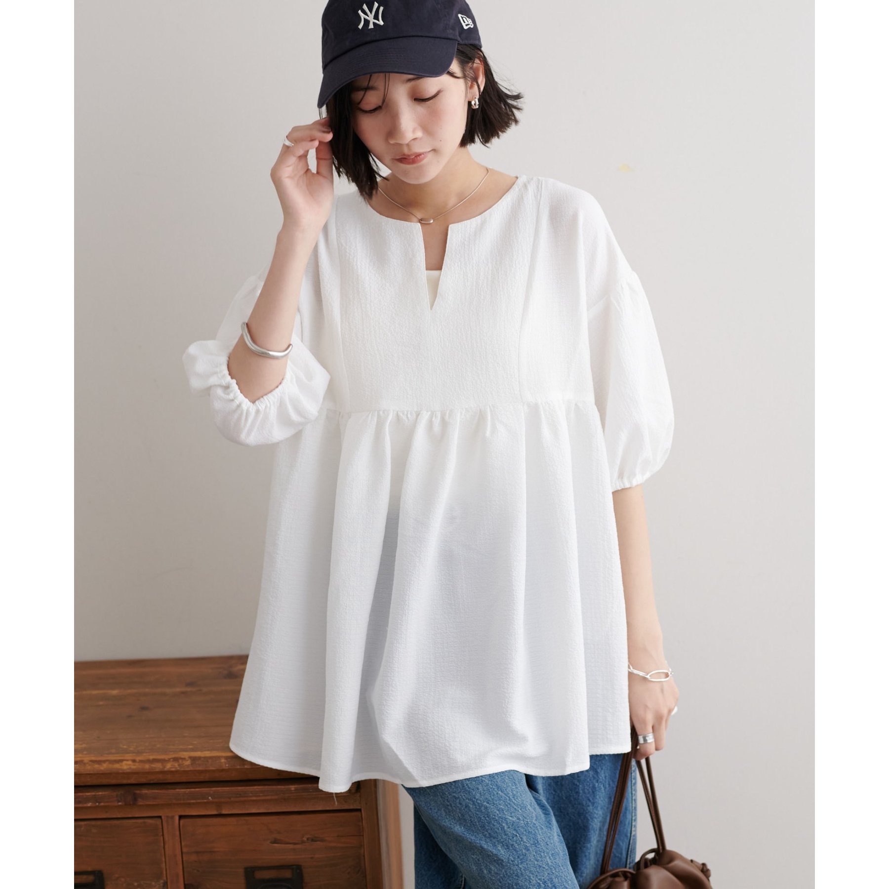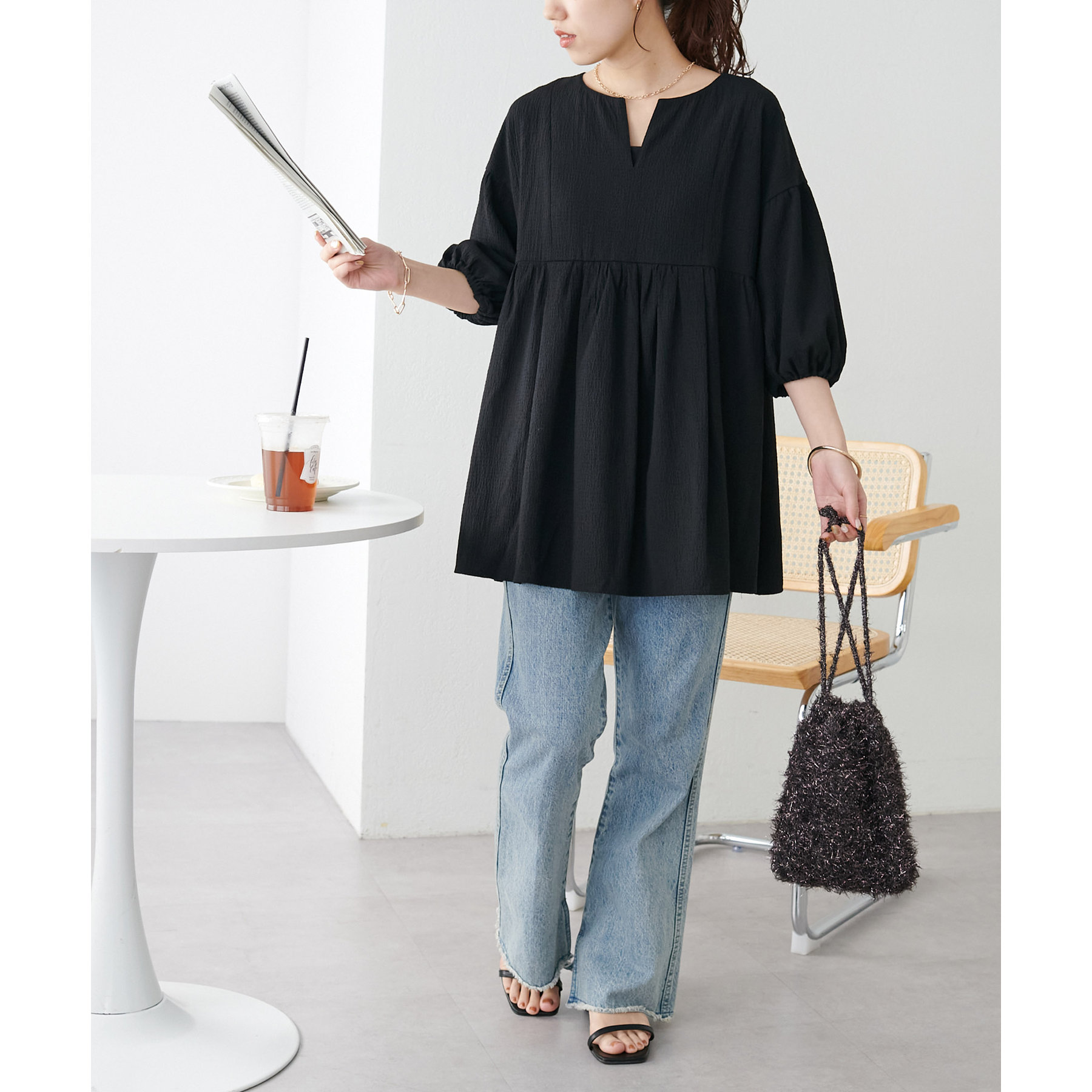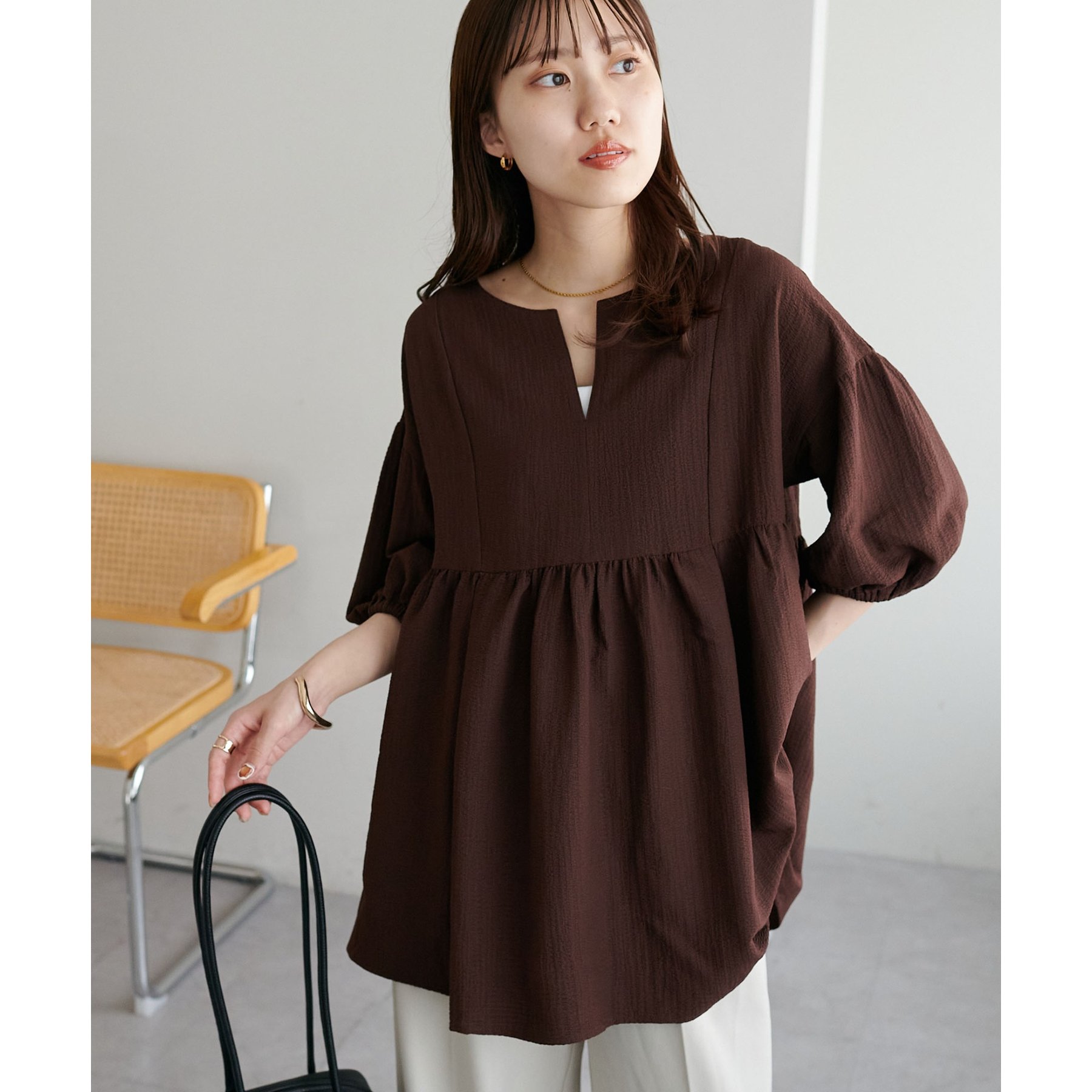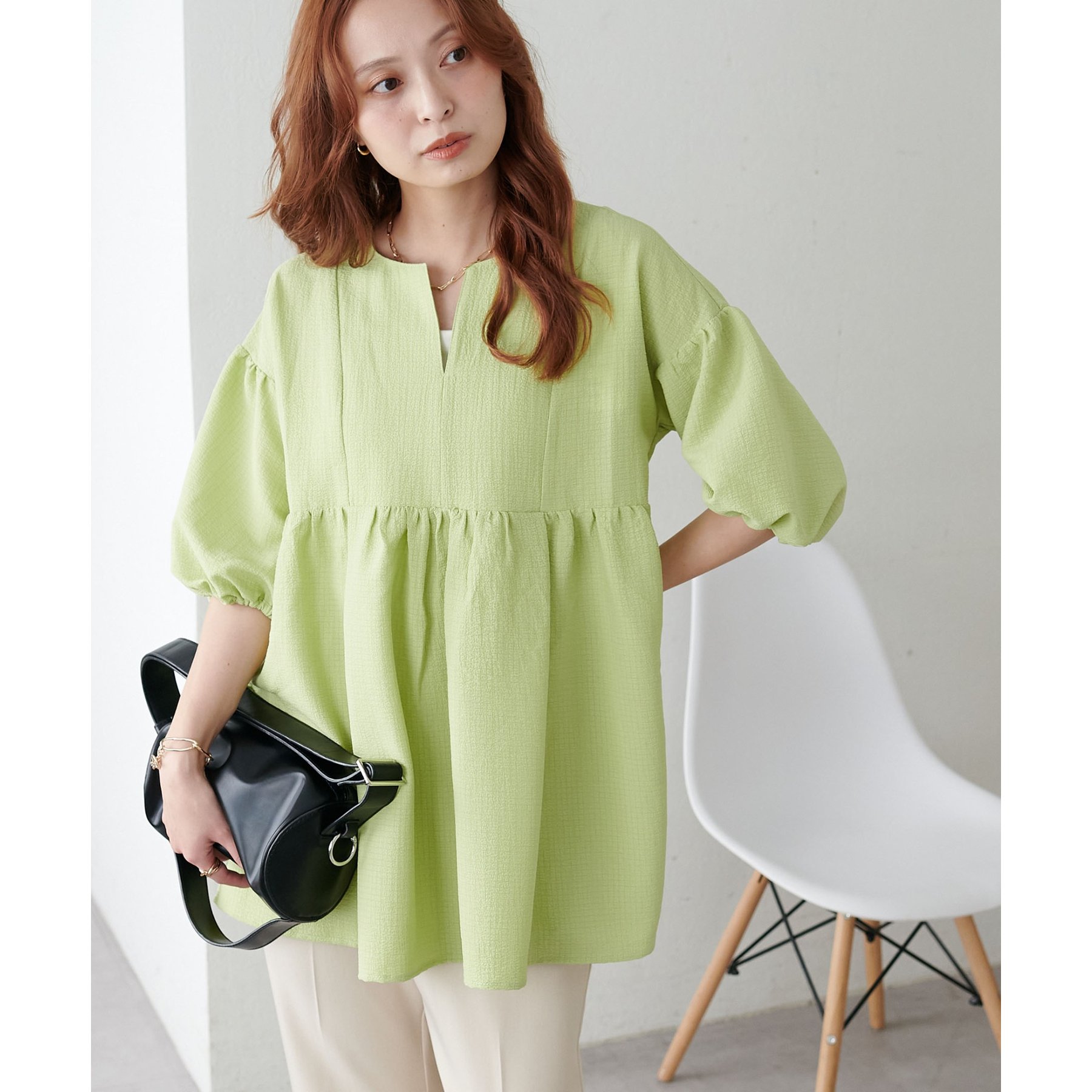 【新色追加!/WEB限定】キーネックペプラムブラウス