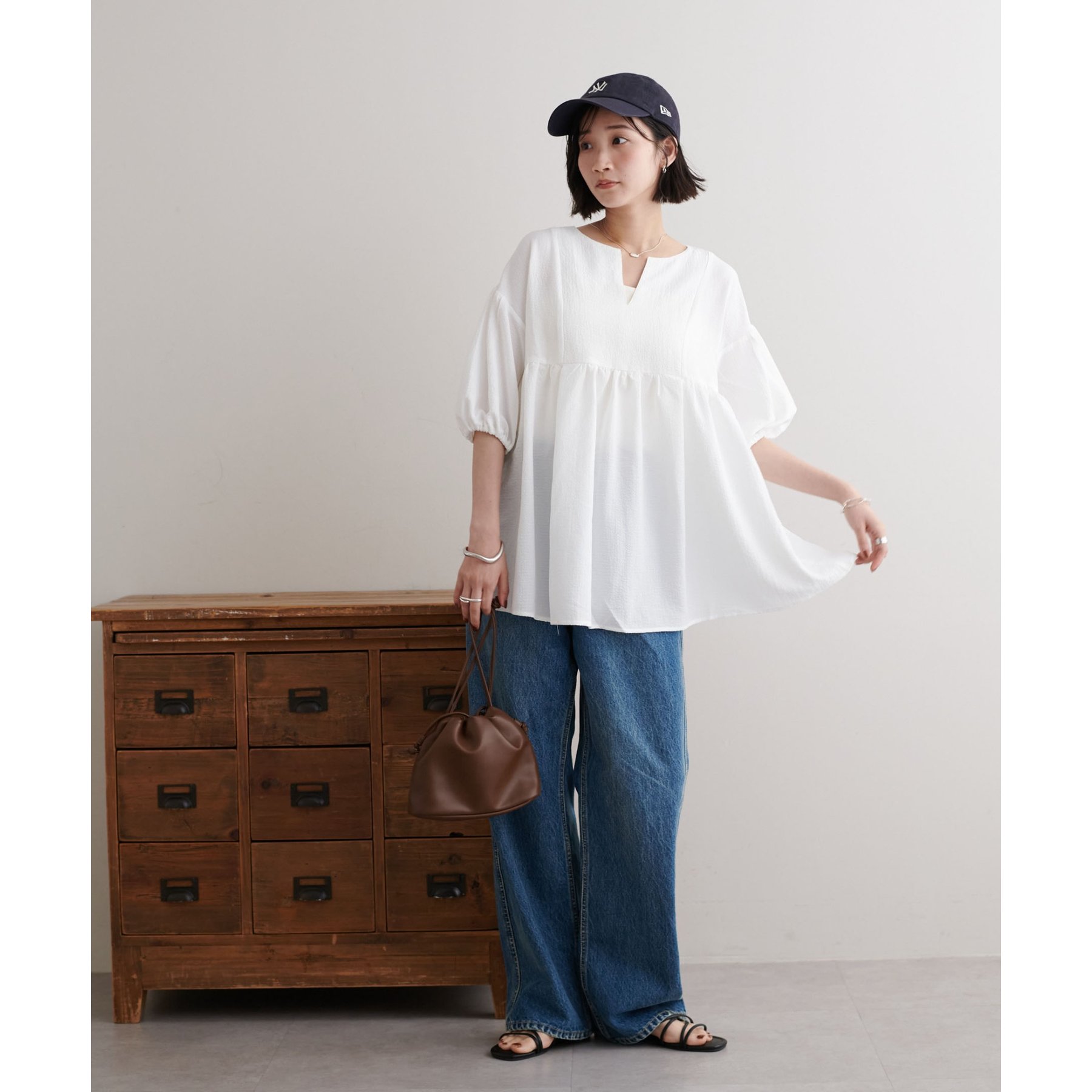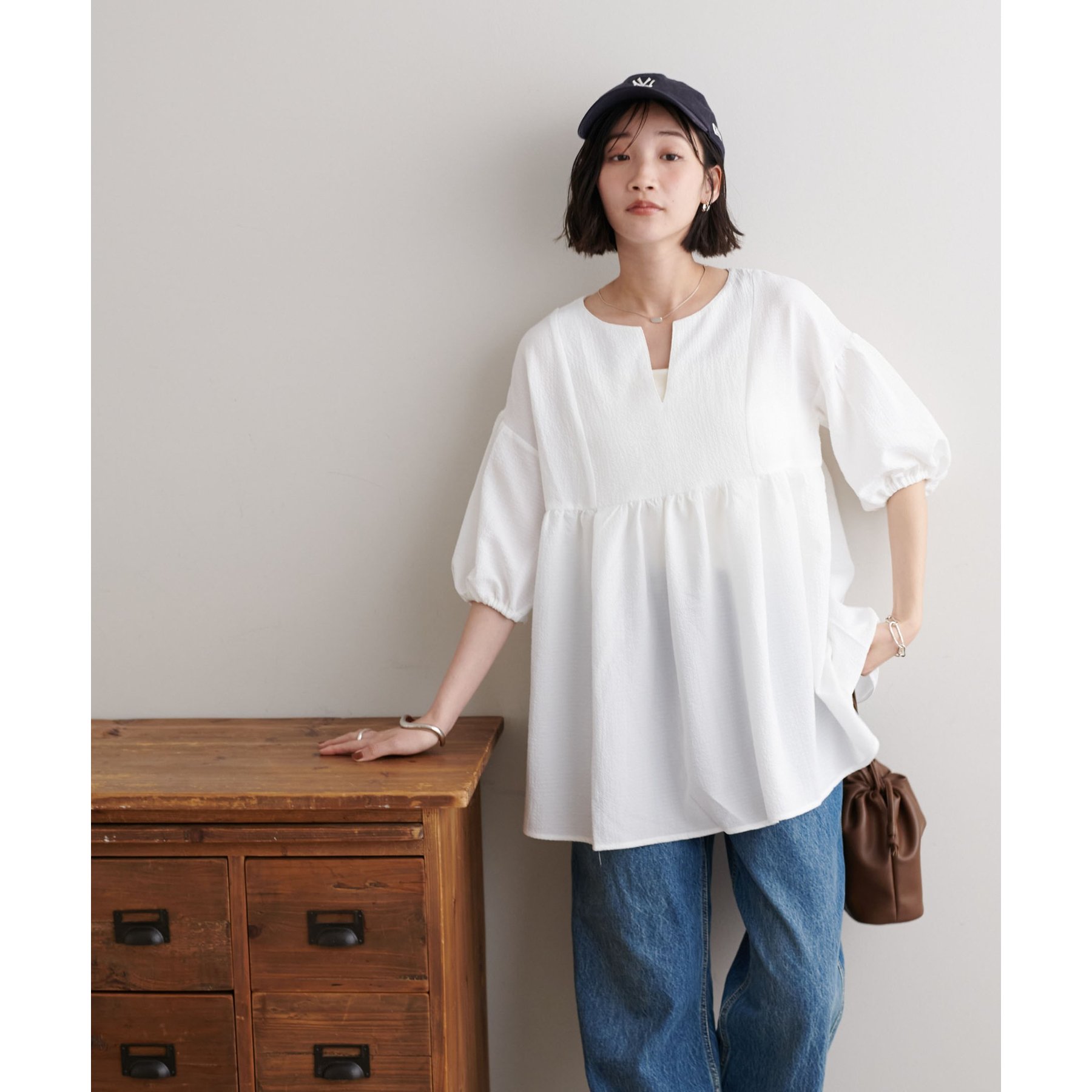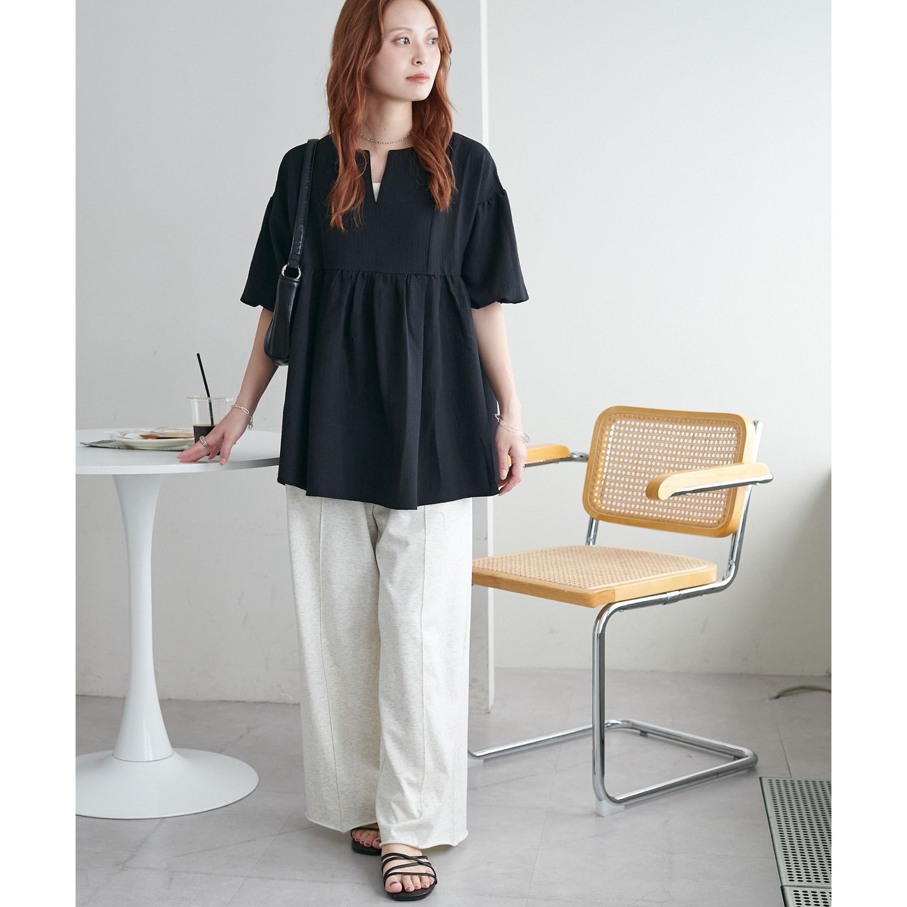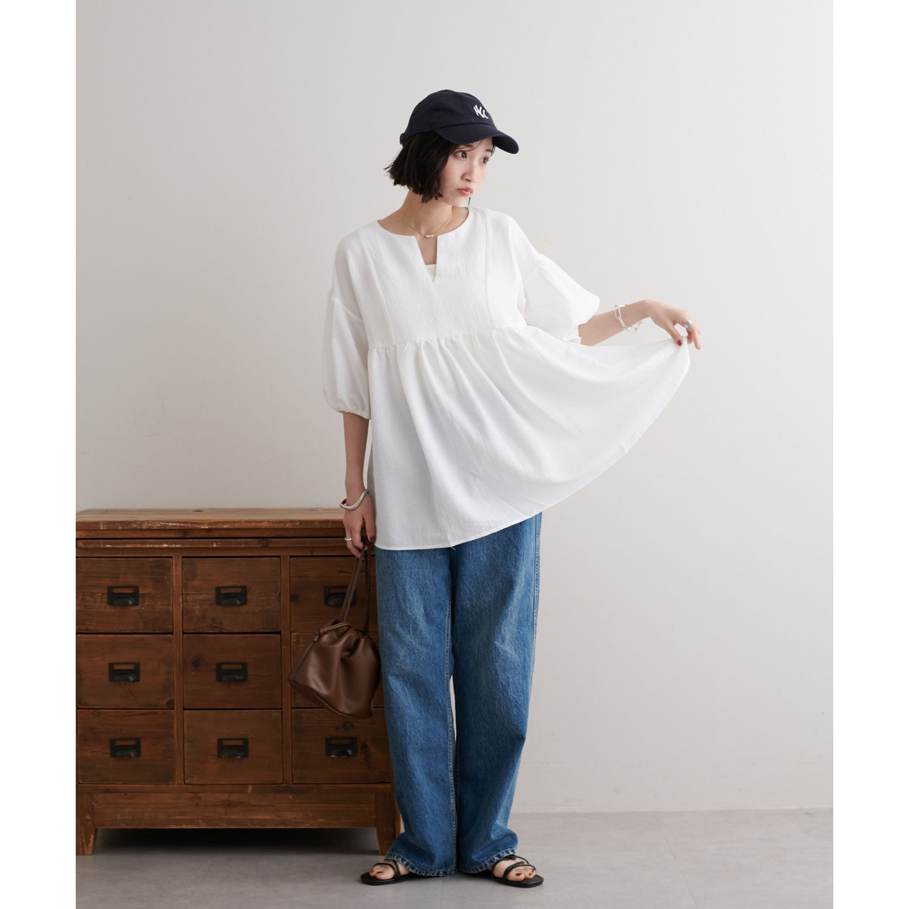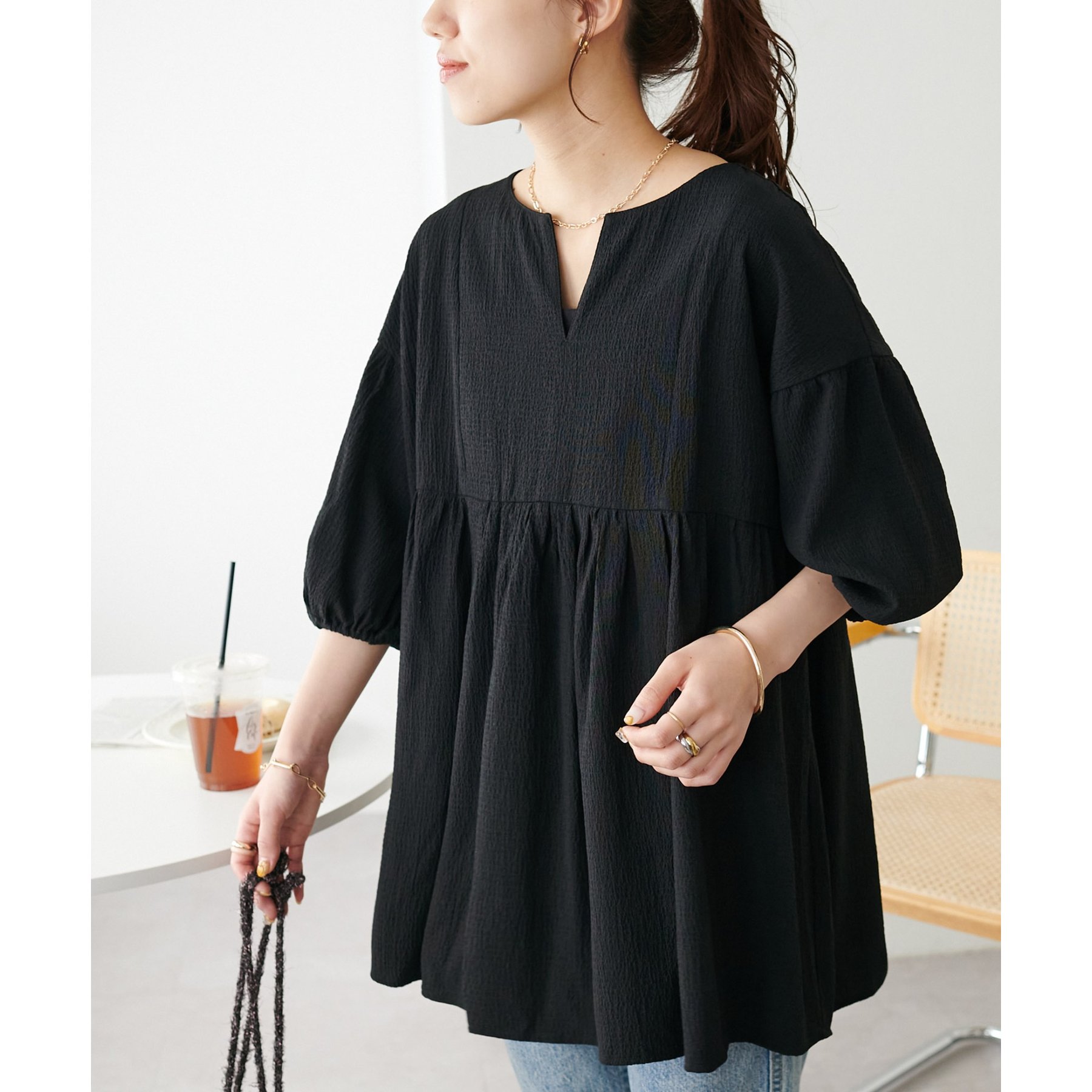【新色追加!/WEB限定】キーネックペプラムブラウス