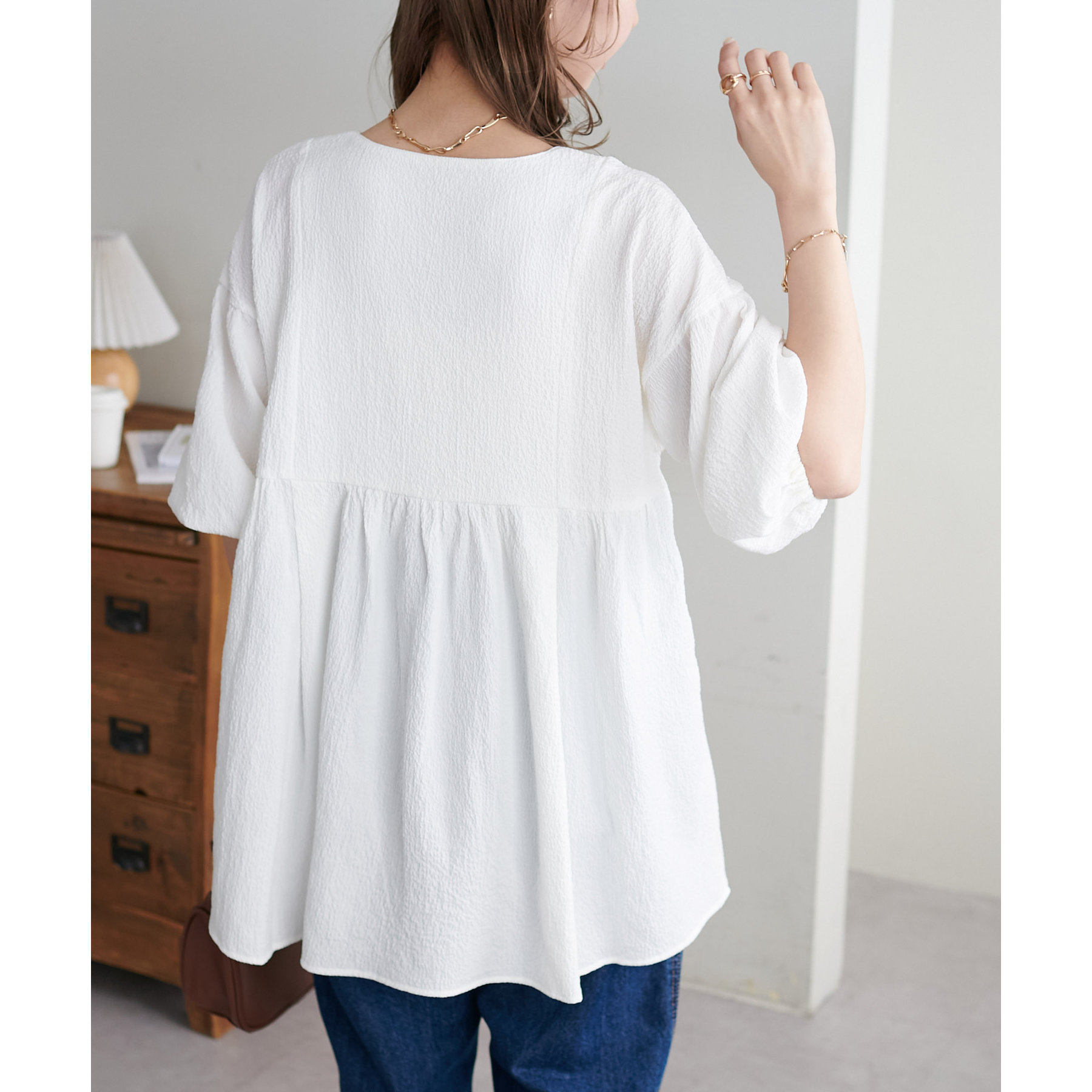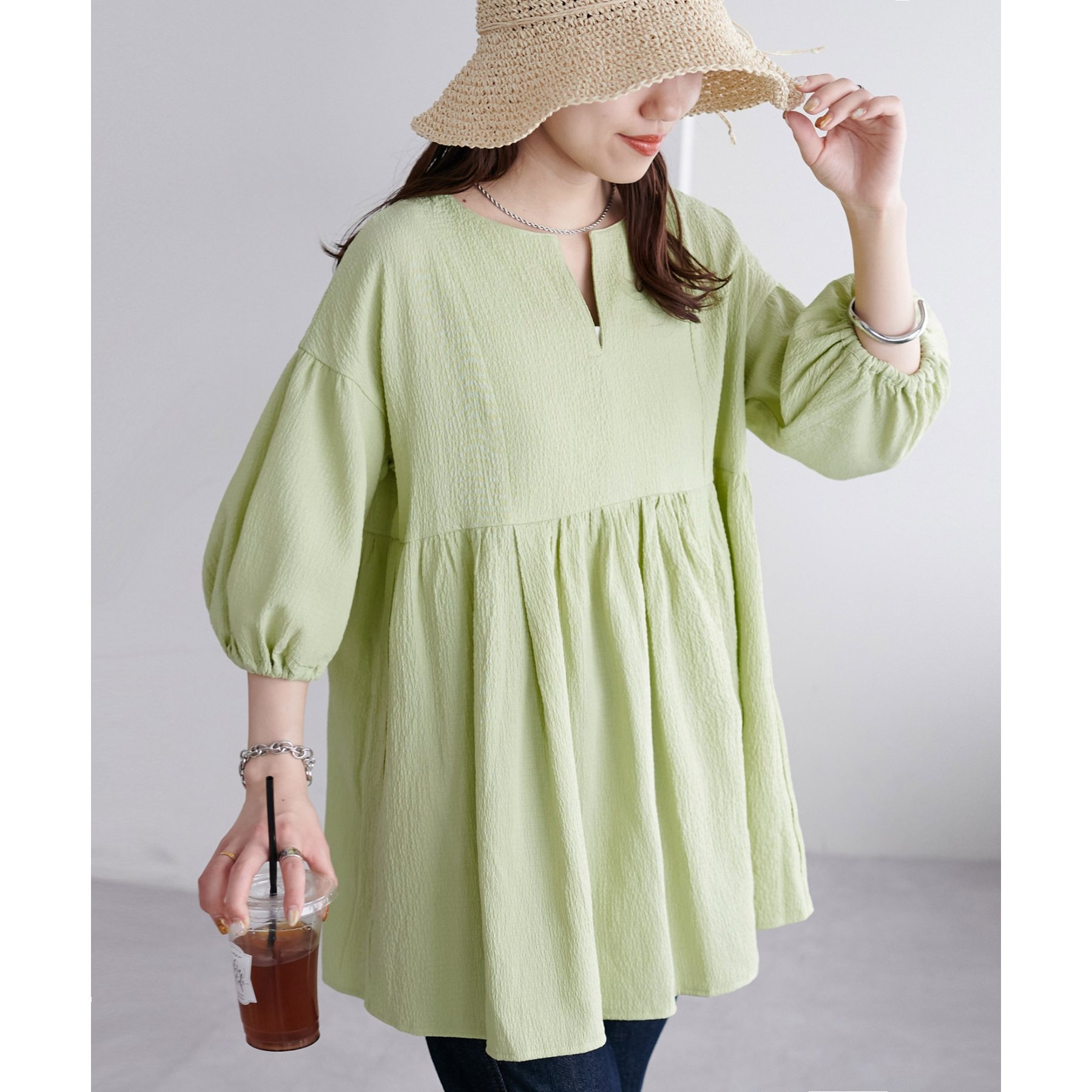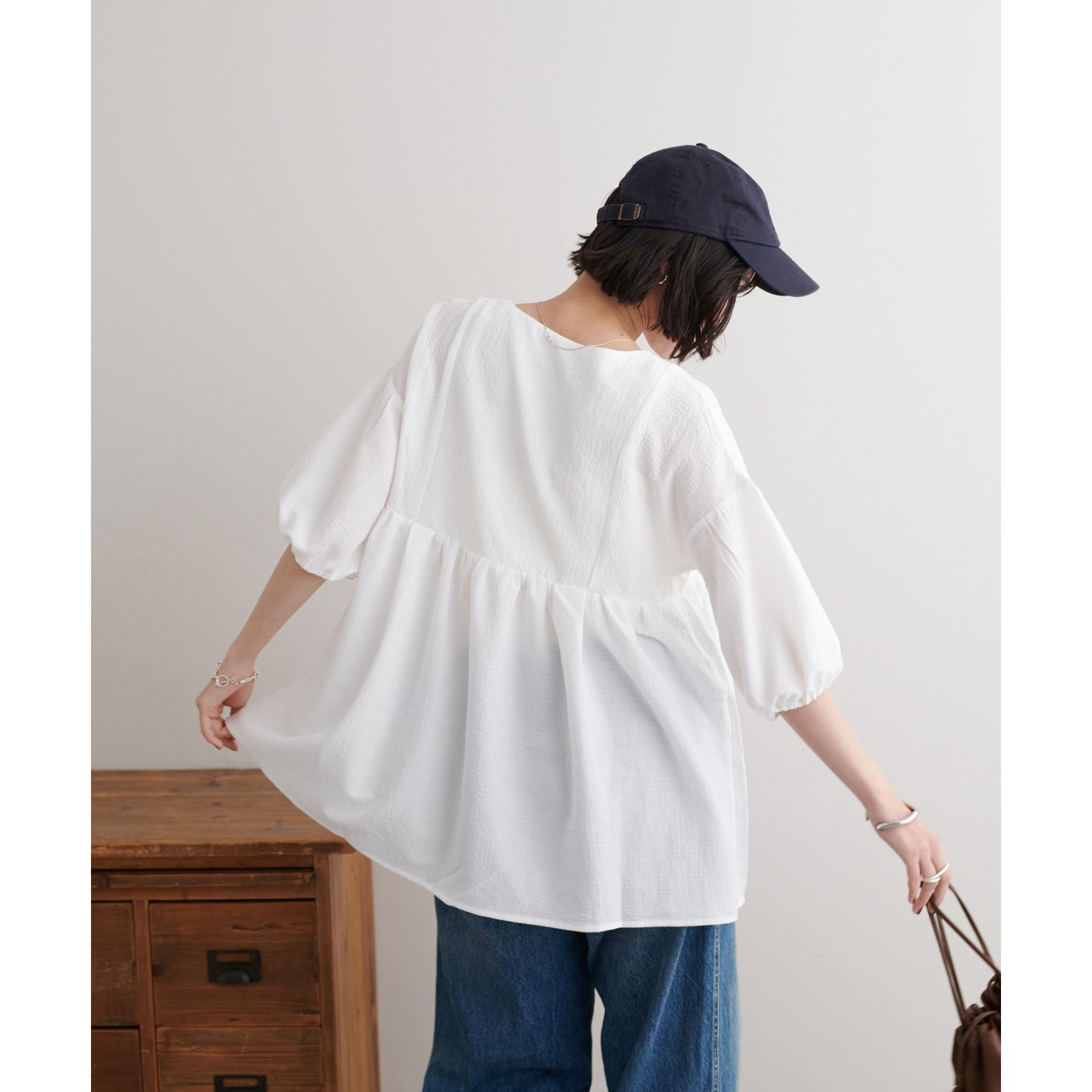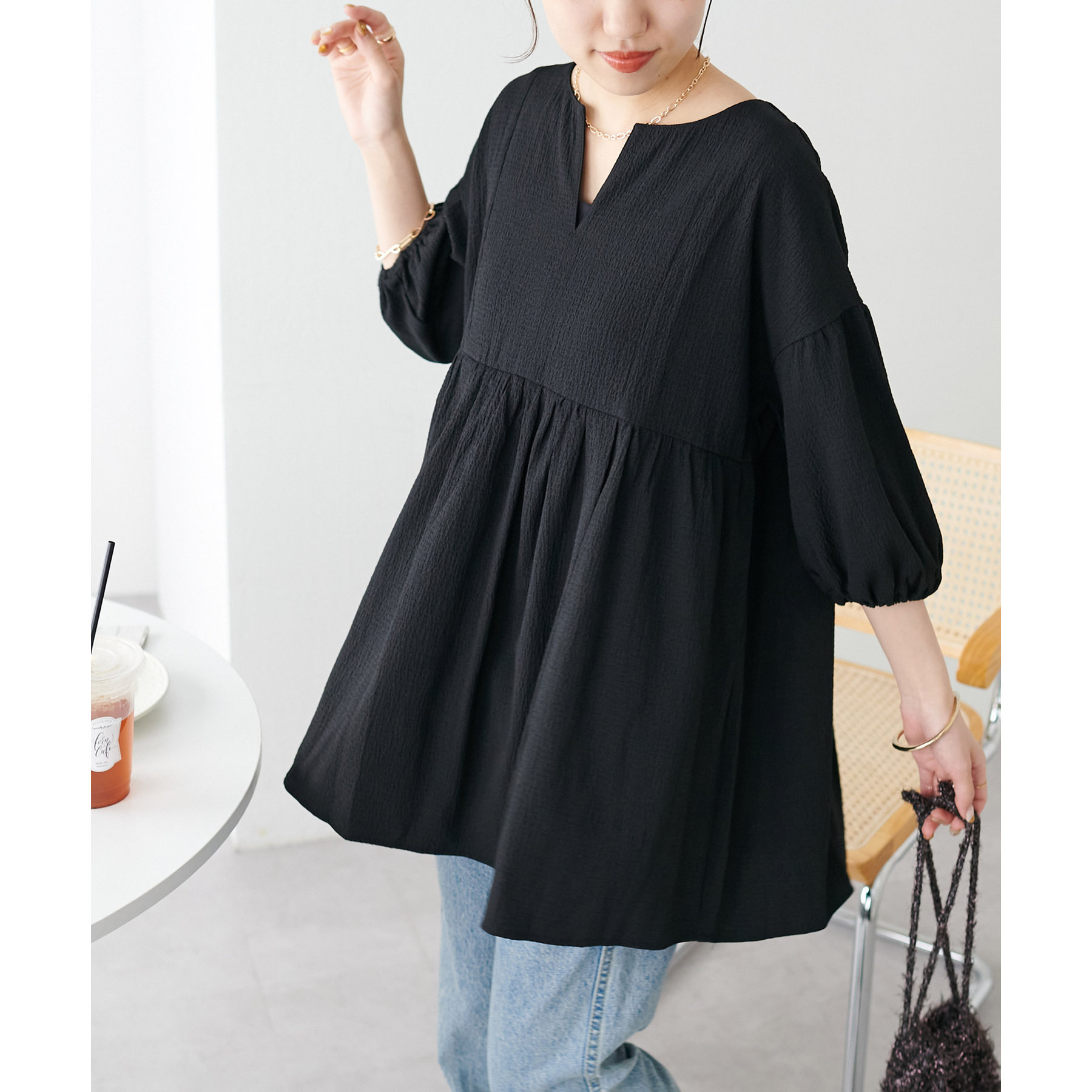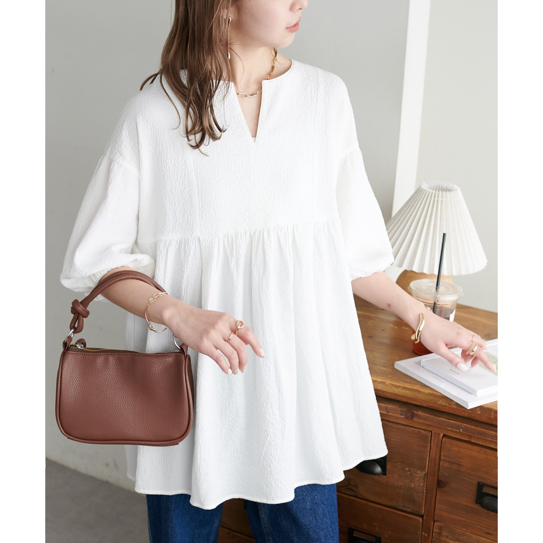 【新色追加!/WEB限定】キーネックペプラムブラウス