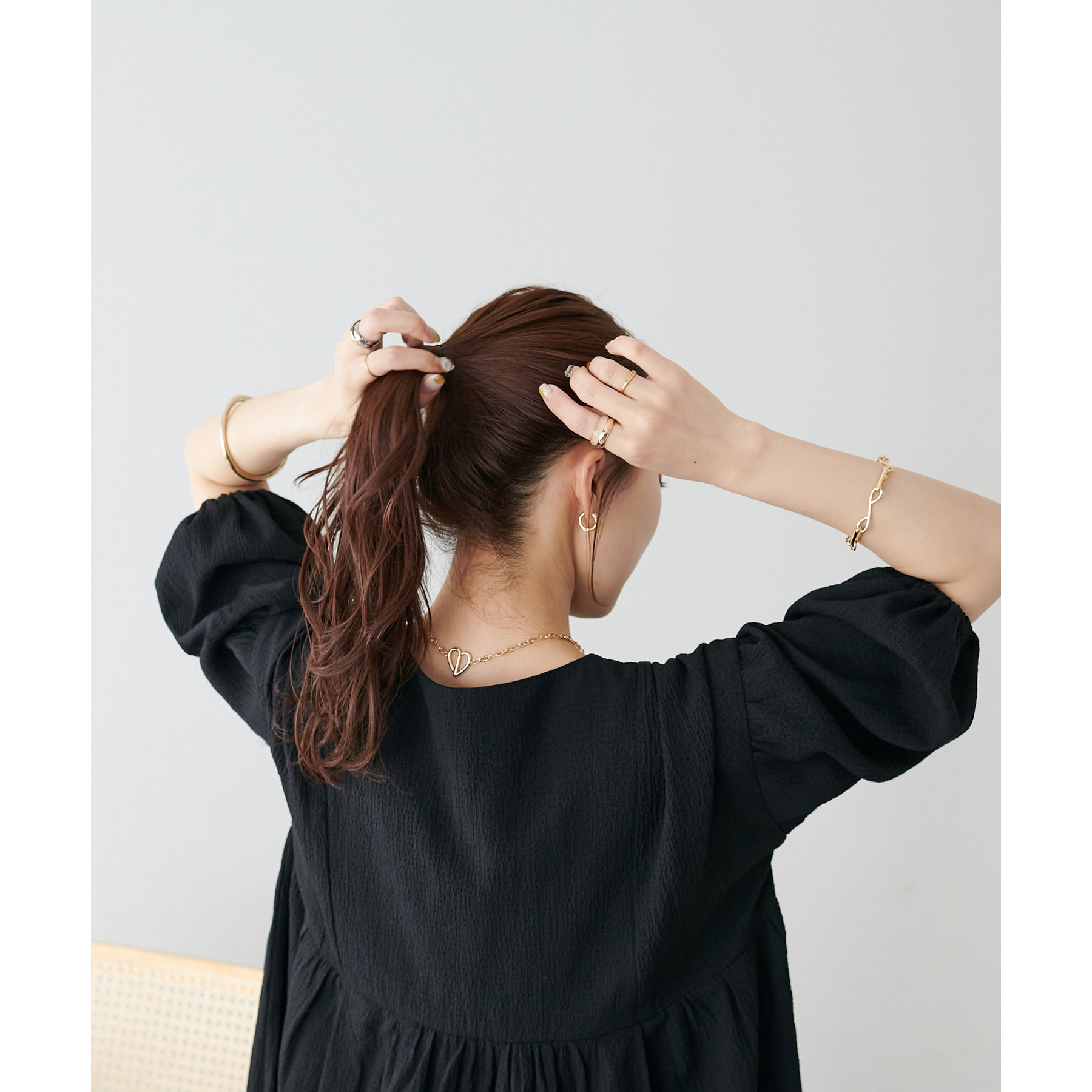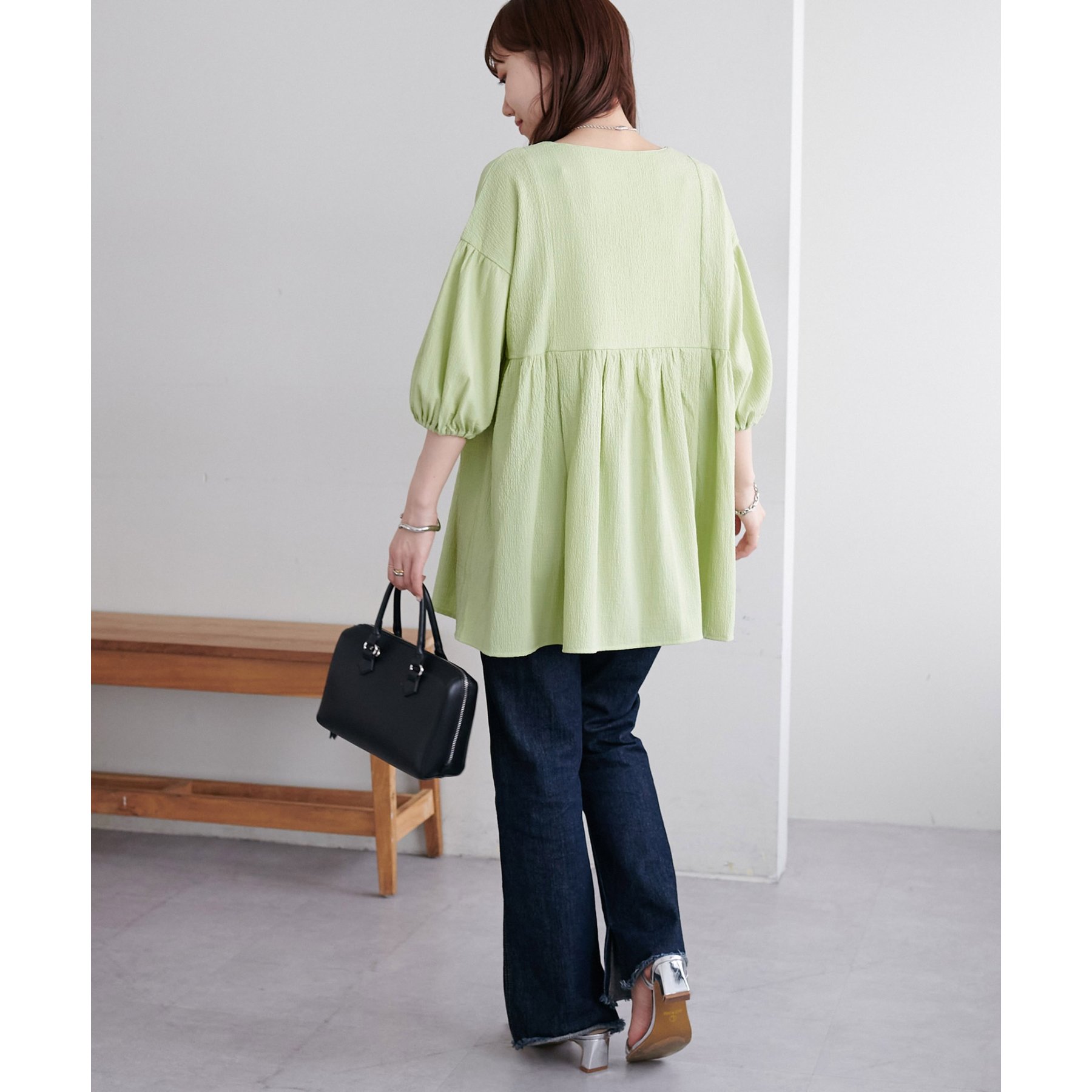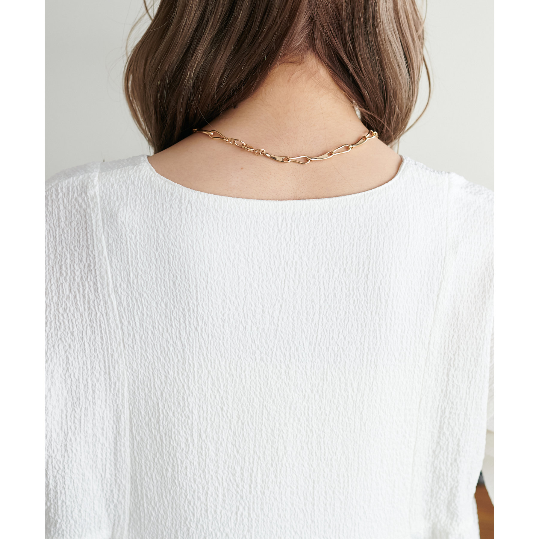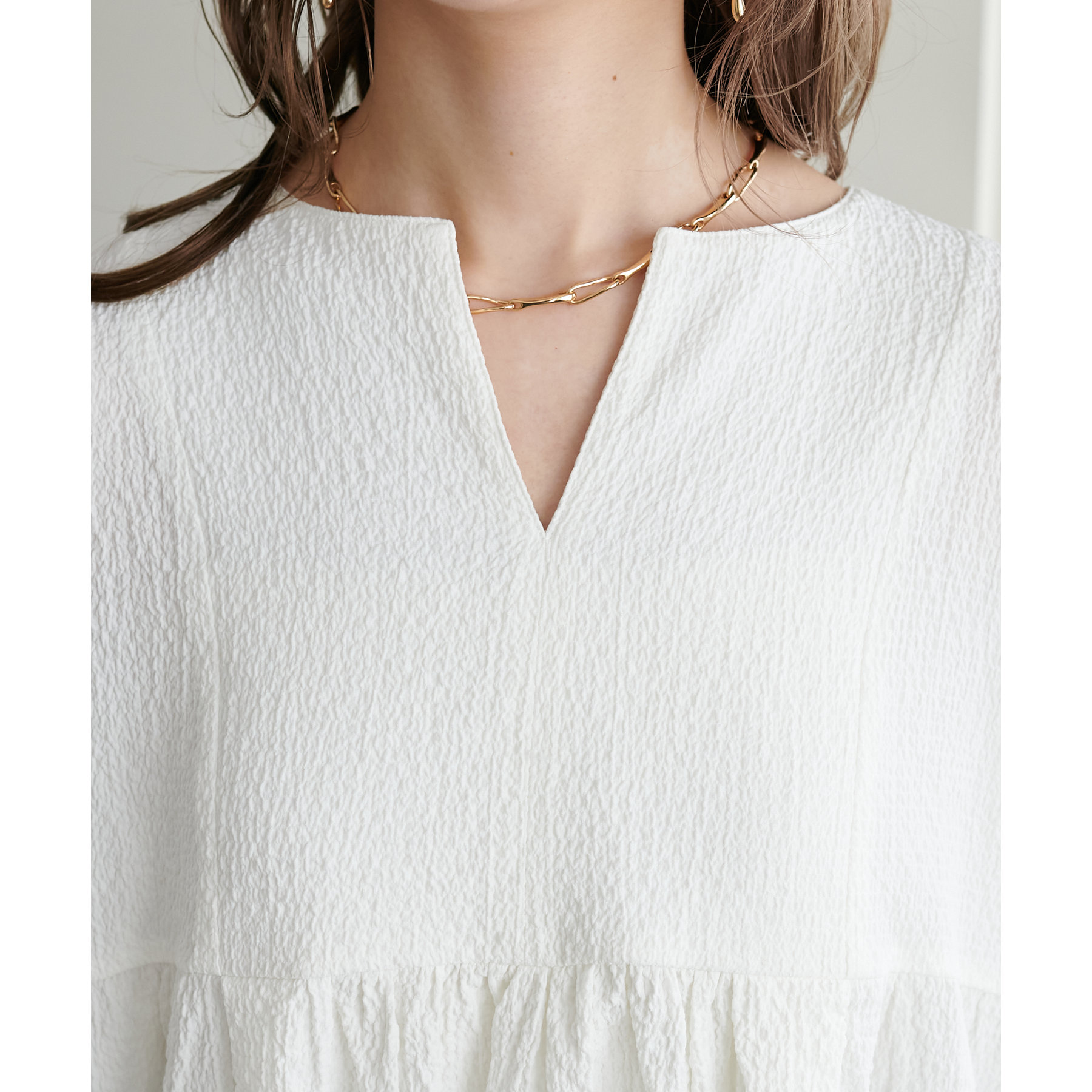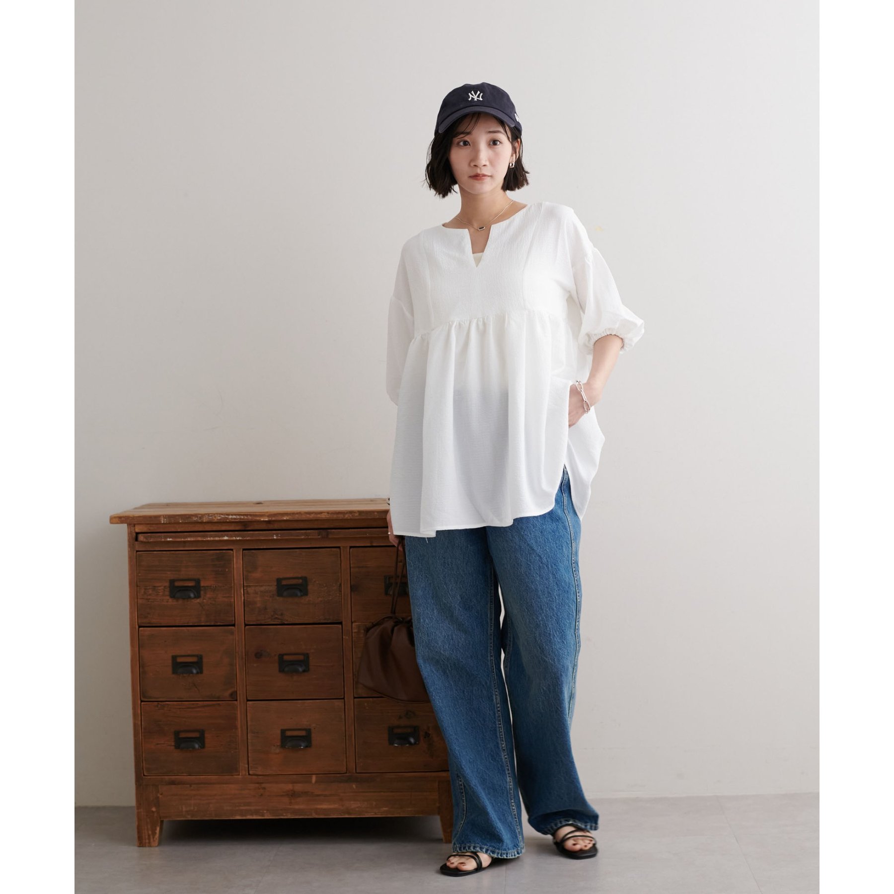 155cmスタッフ:キーネックが顔まわりをスッキリ見せてくれて、アクセサリーとも相性抜群◎オフィススタイルにもおすすめです。