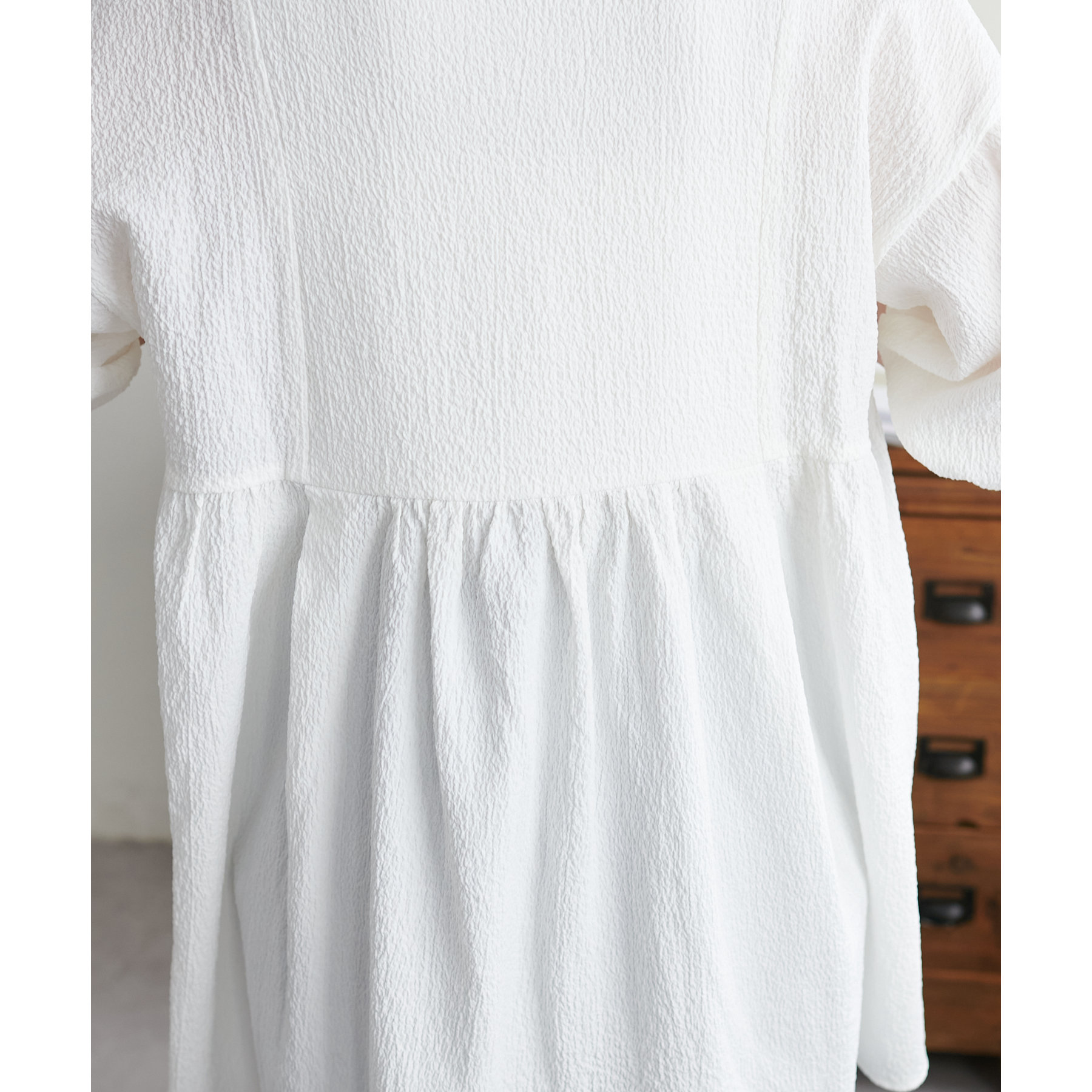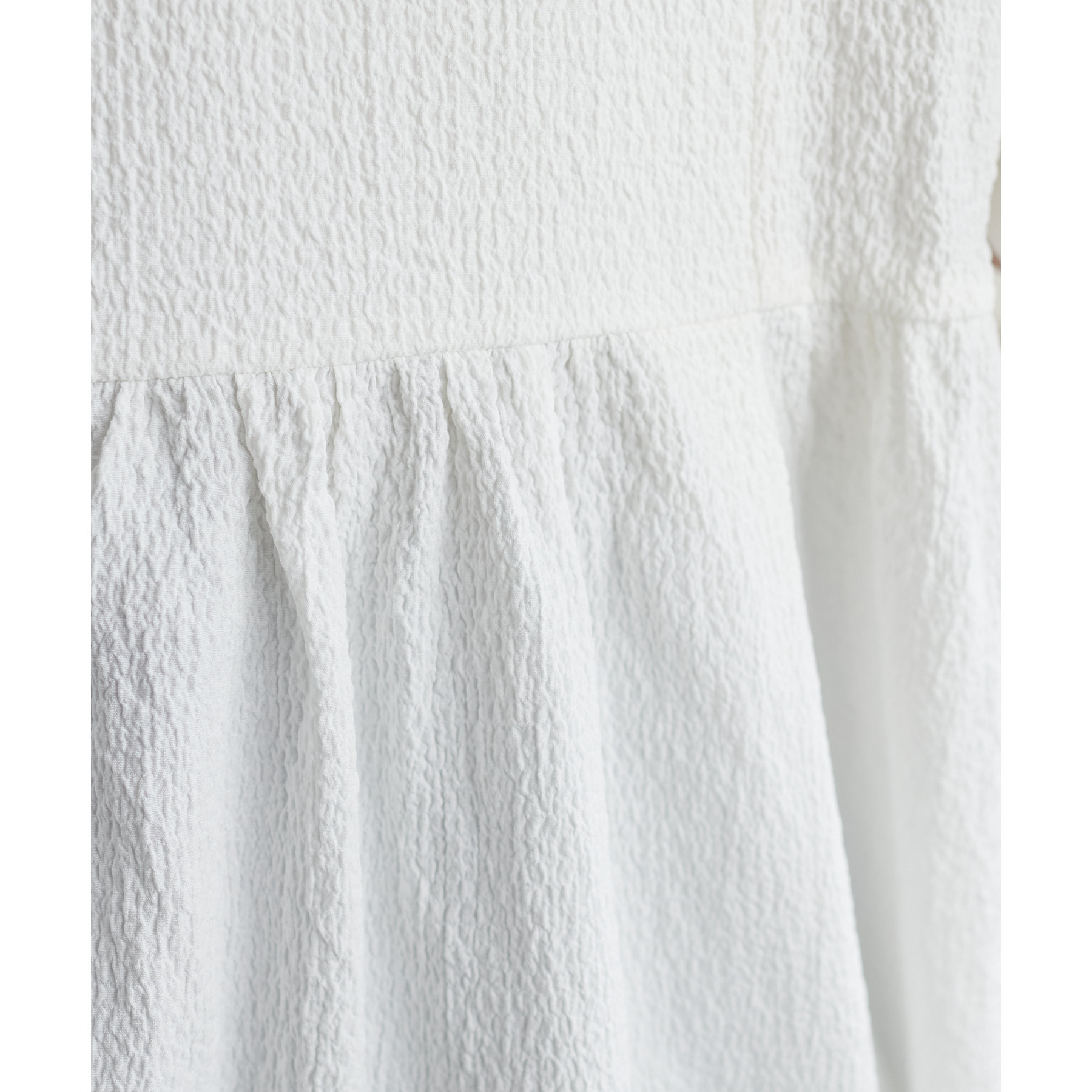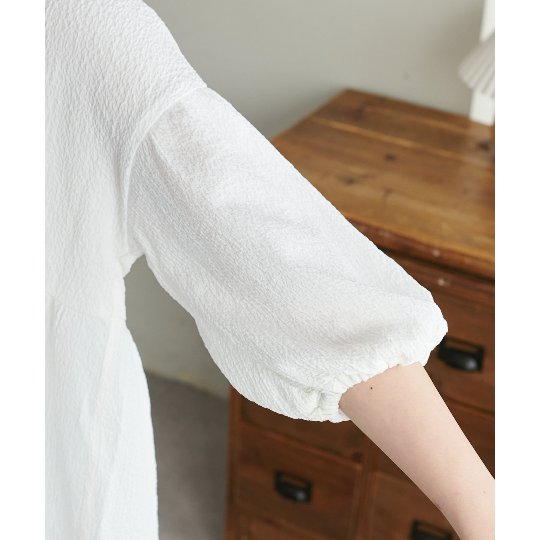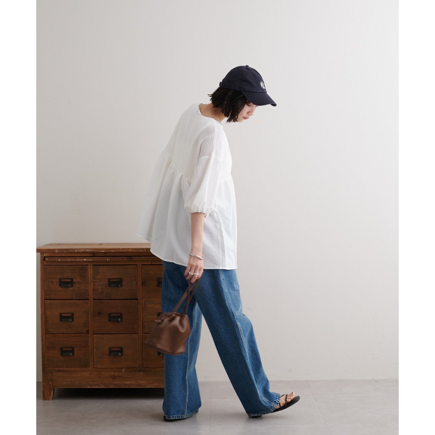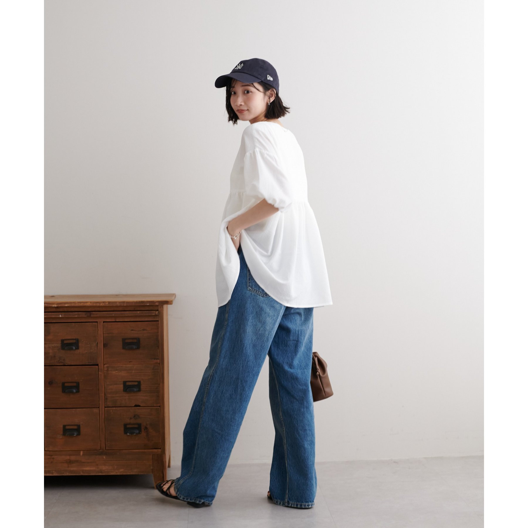 ・ウエストよりやや高めのペプラム切替えでふんわり広がるシルエット