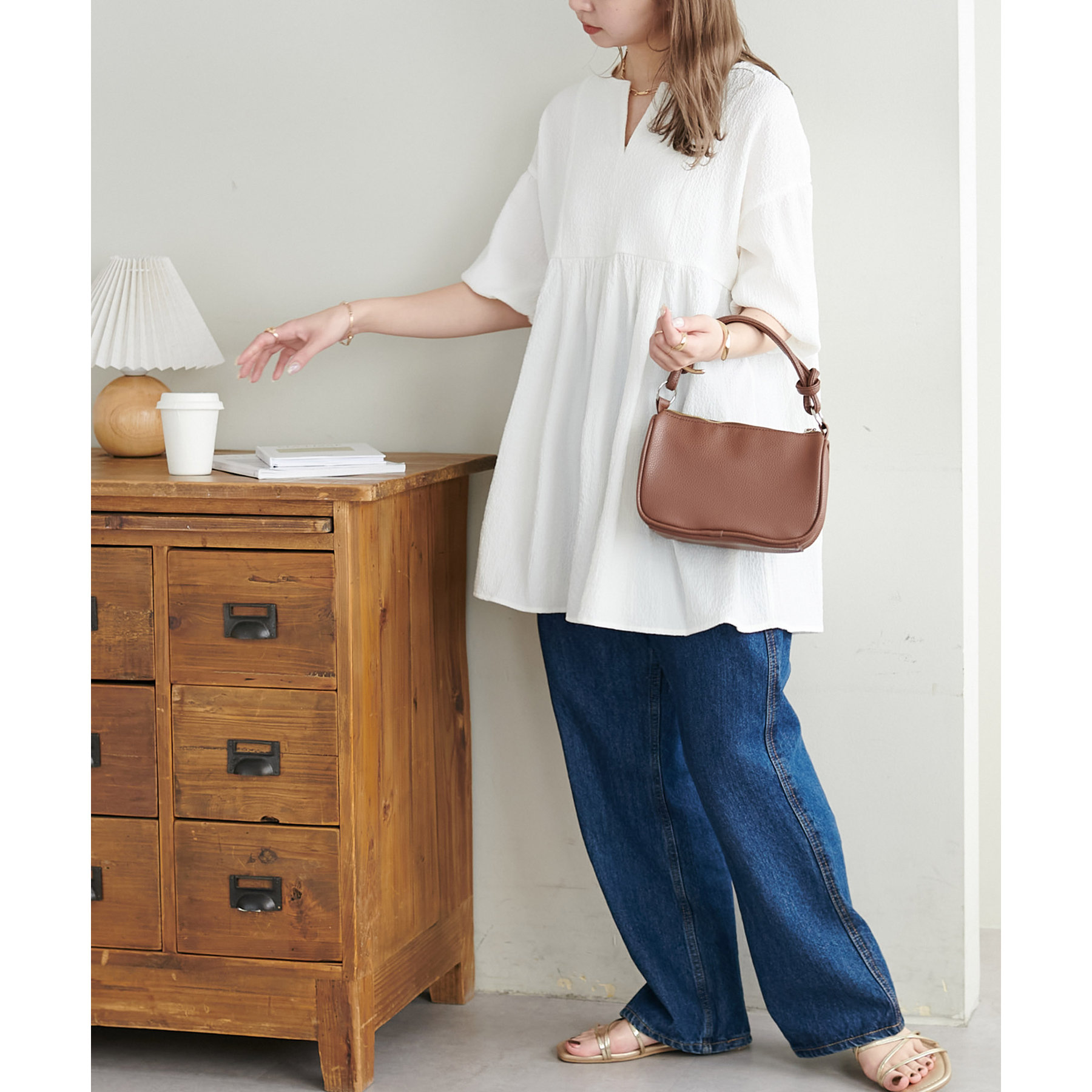 ・柔らかな風合いで女性らしさを引き立てるキーネック
