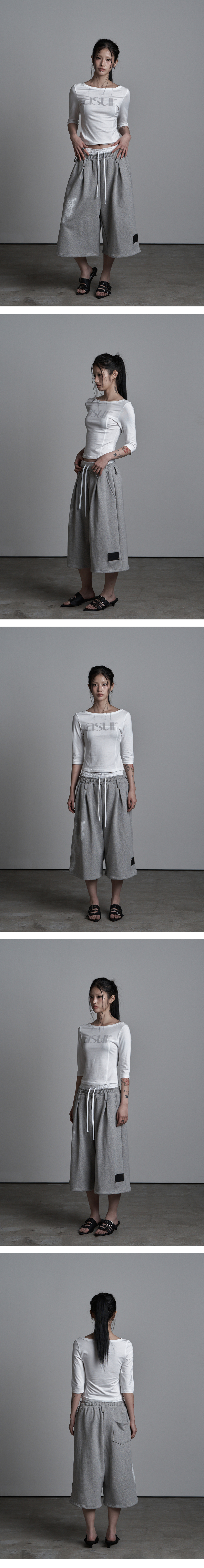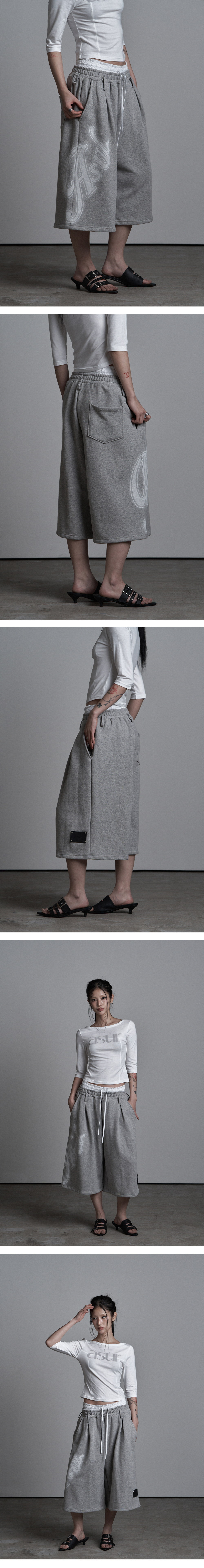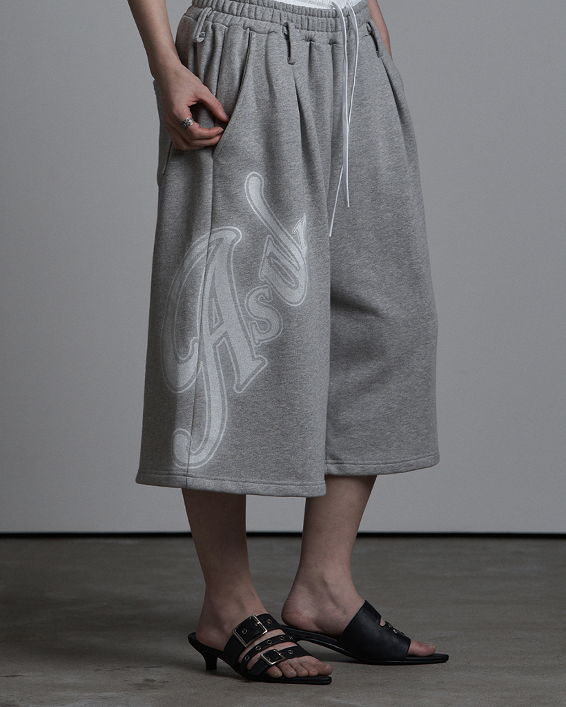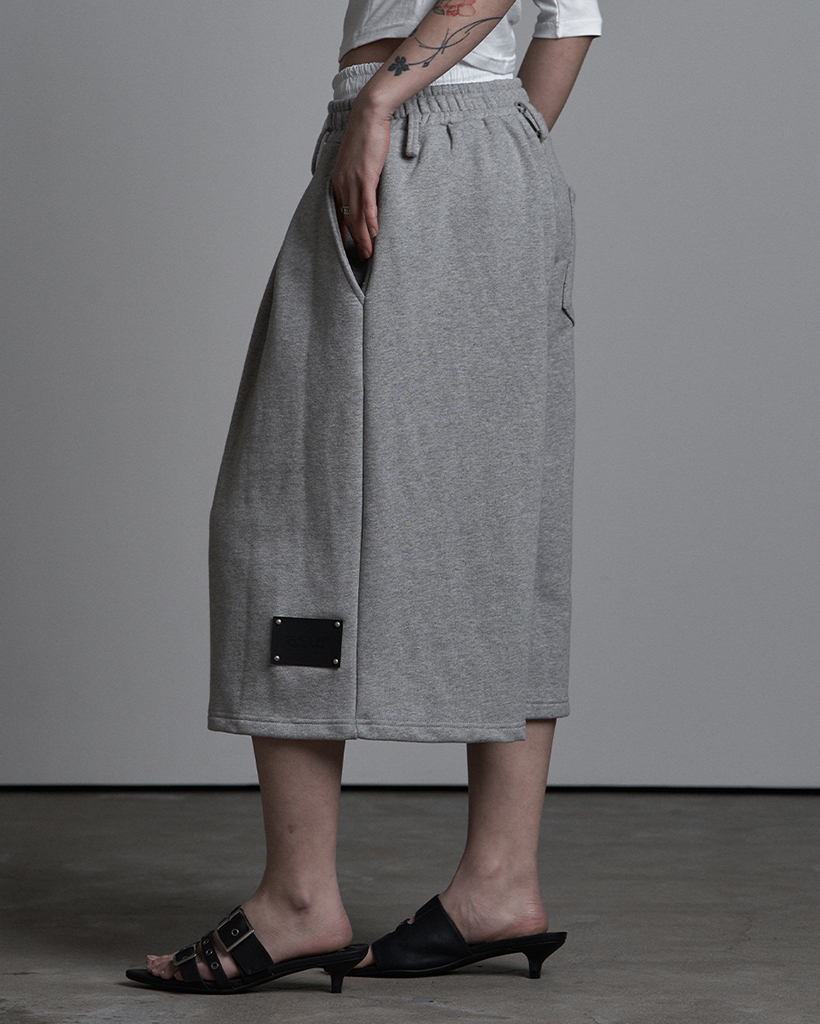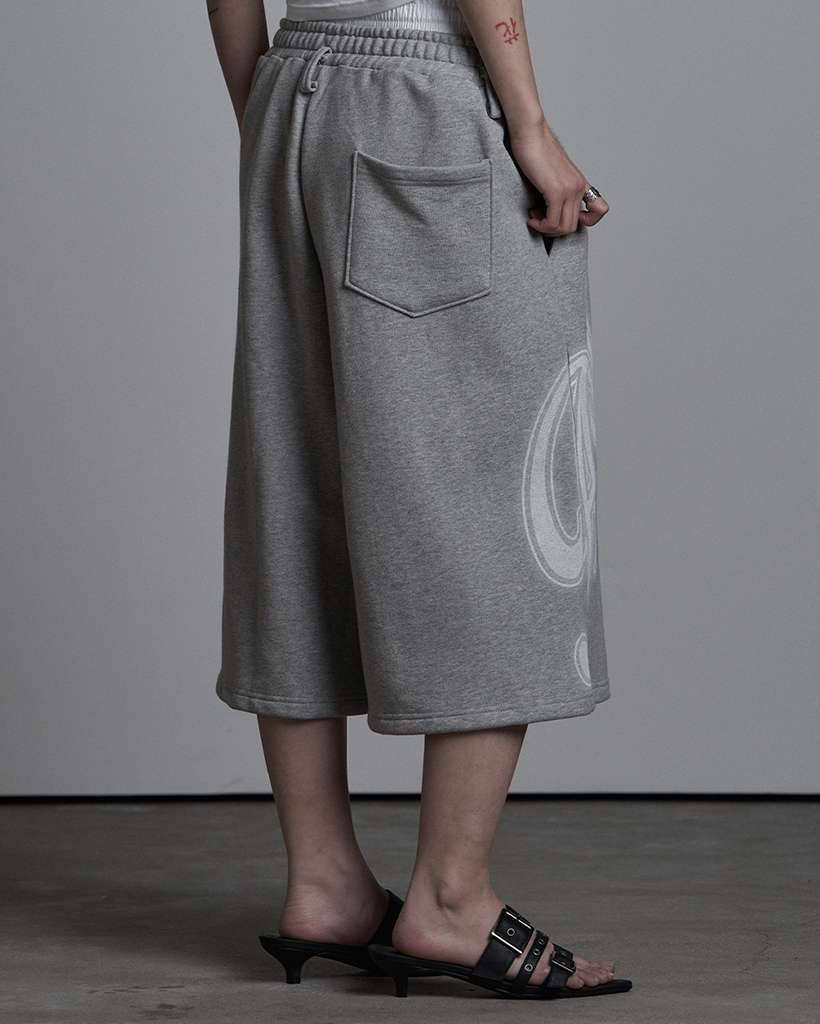 SAGGING FLARE BERMUDA PANTS MELANGE