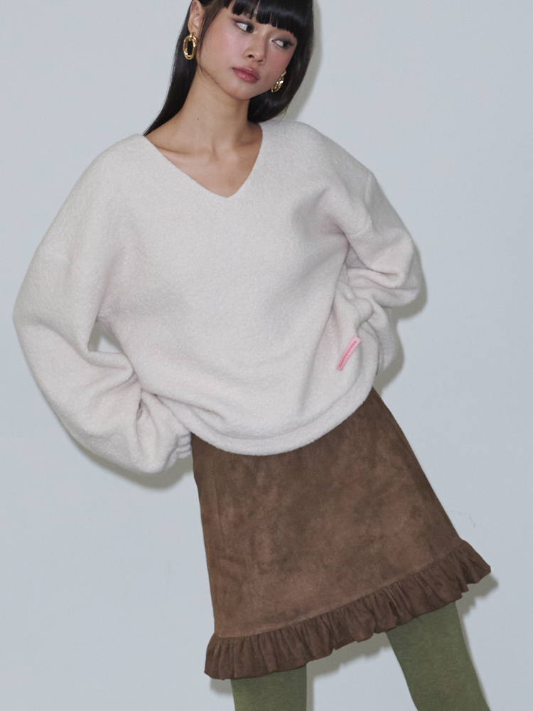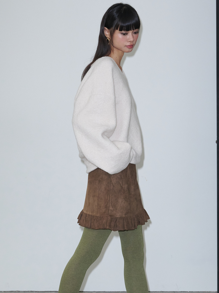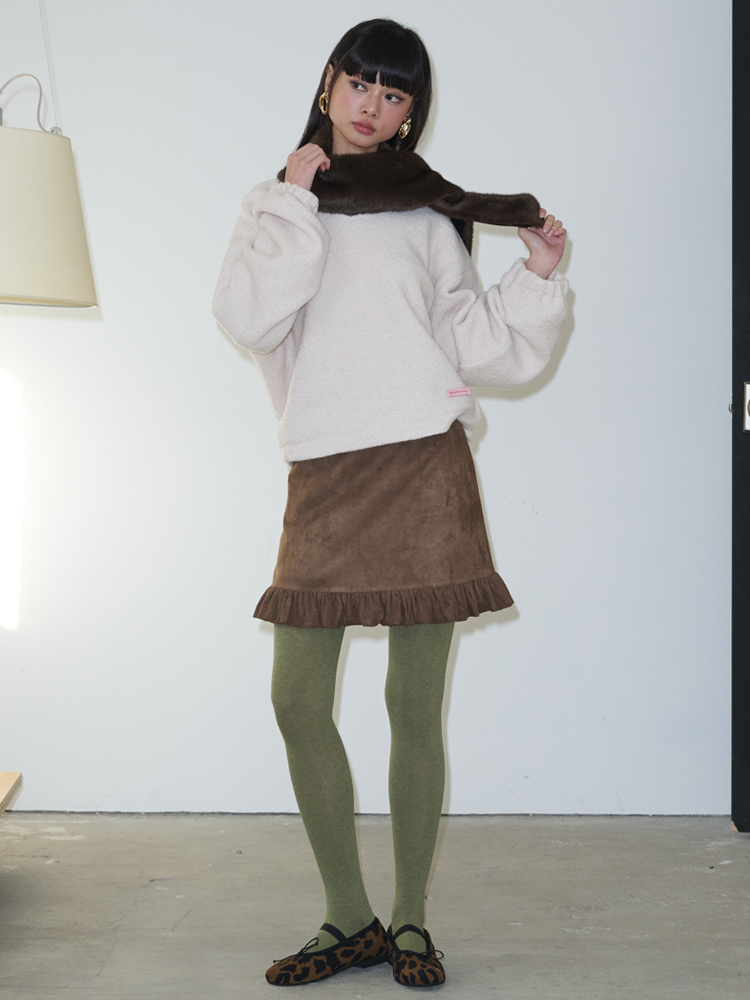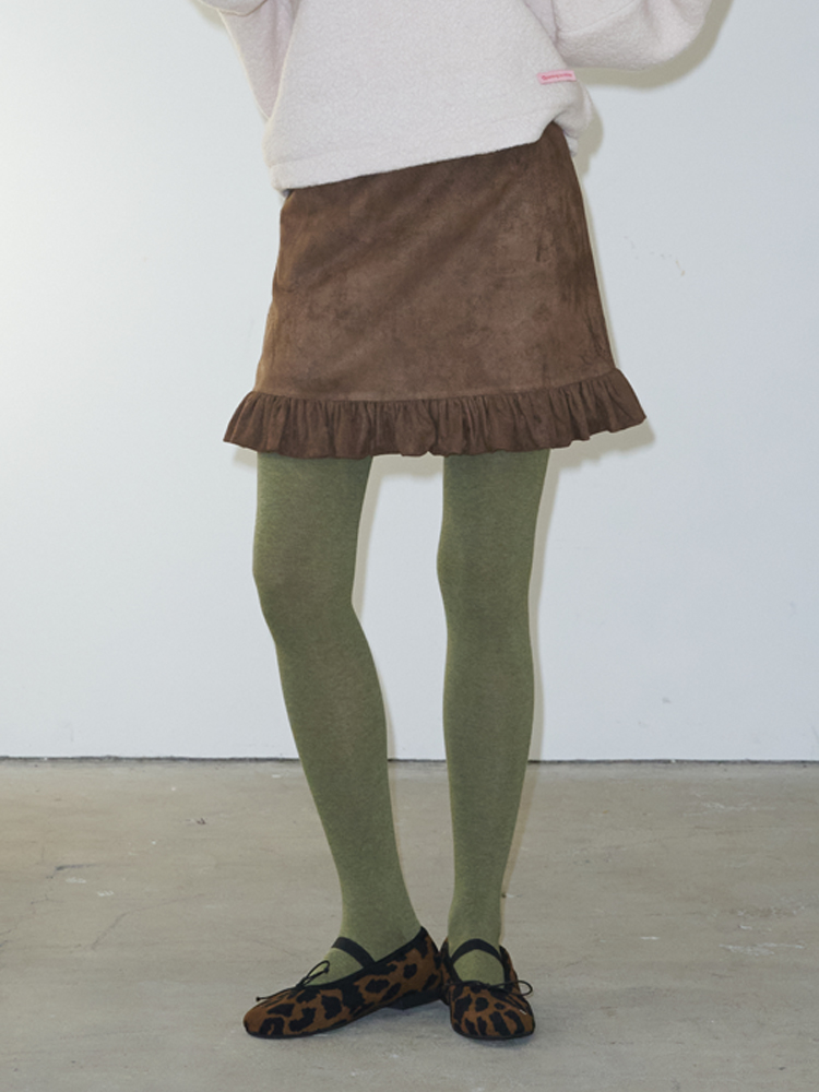 Suede Frill Mini Skirt_Brown