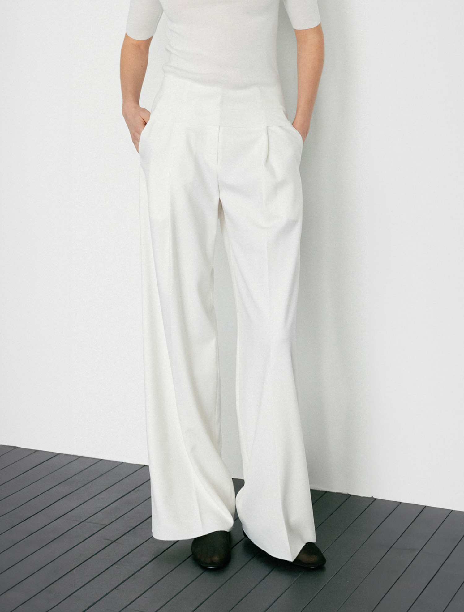 Wool Blend One-Tuck Pants - Ivory