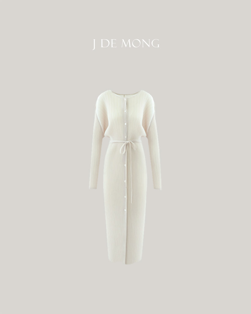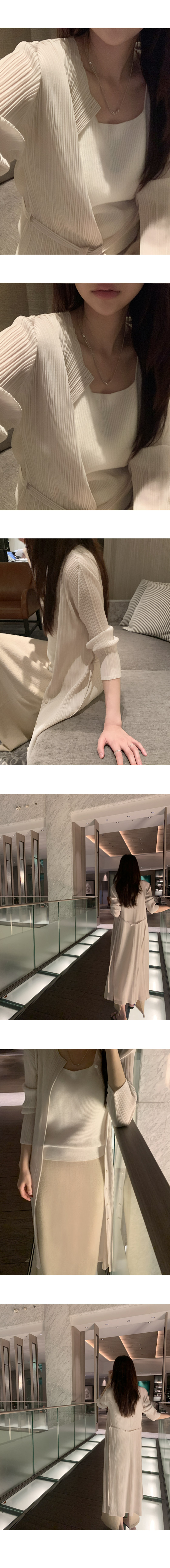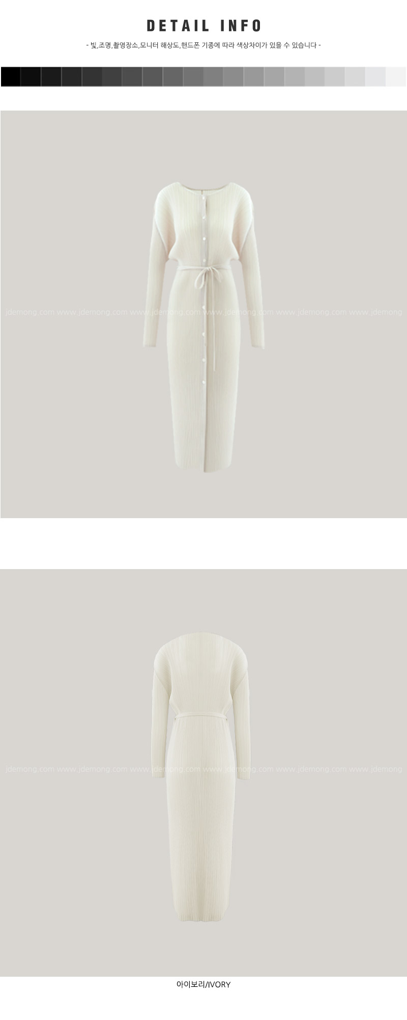 [PLEATS] Fluor Button Round Long Cardigan - Ivory