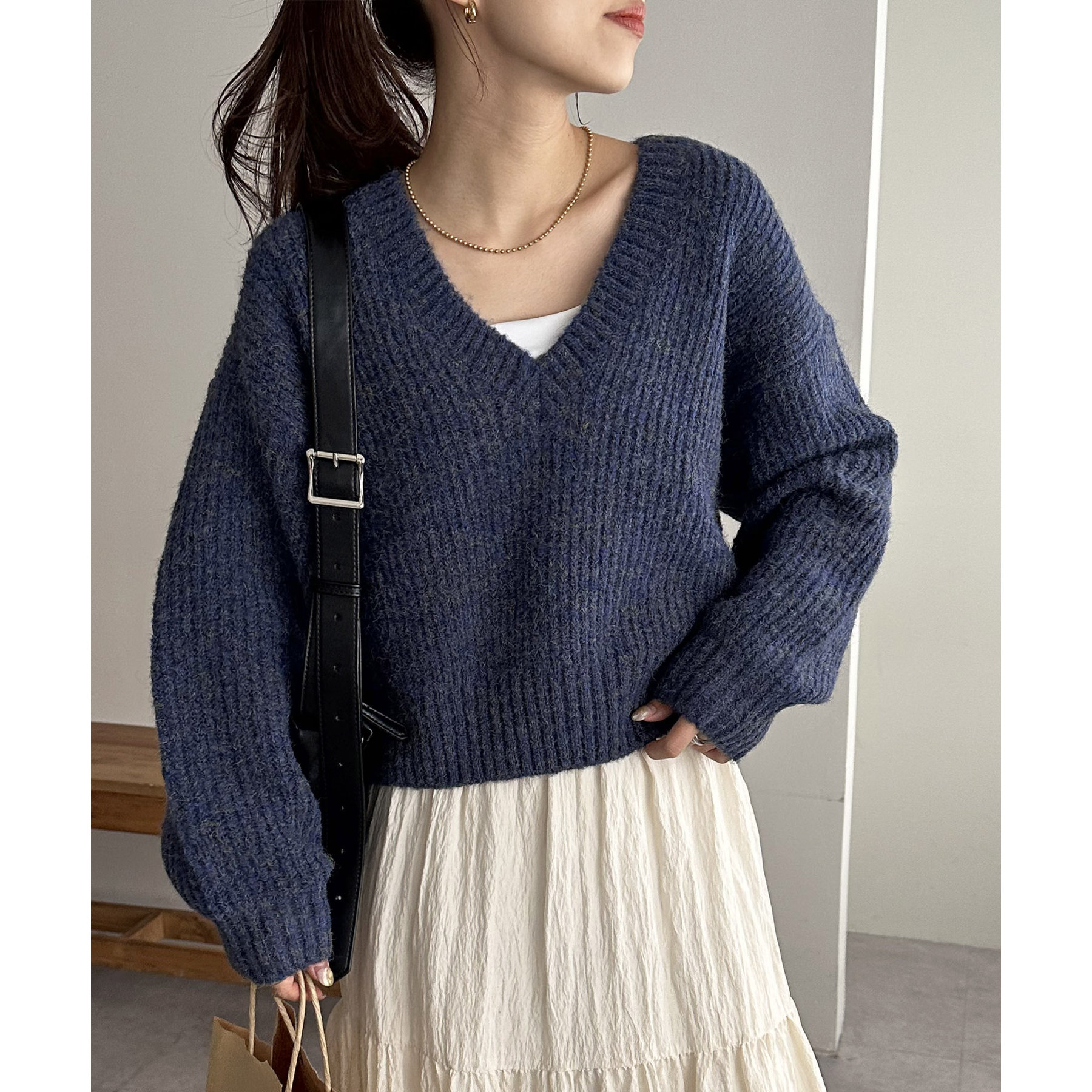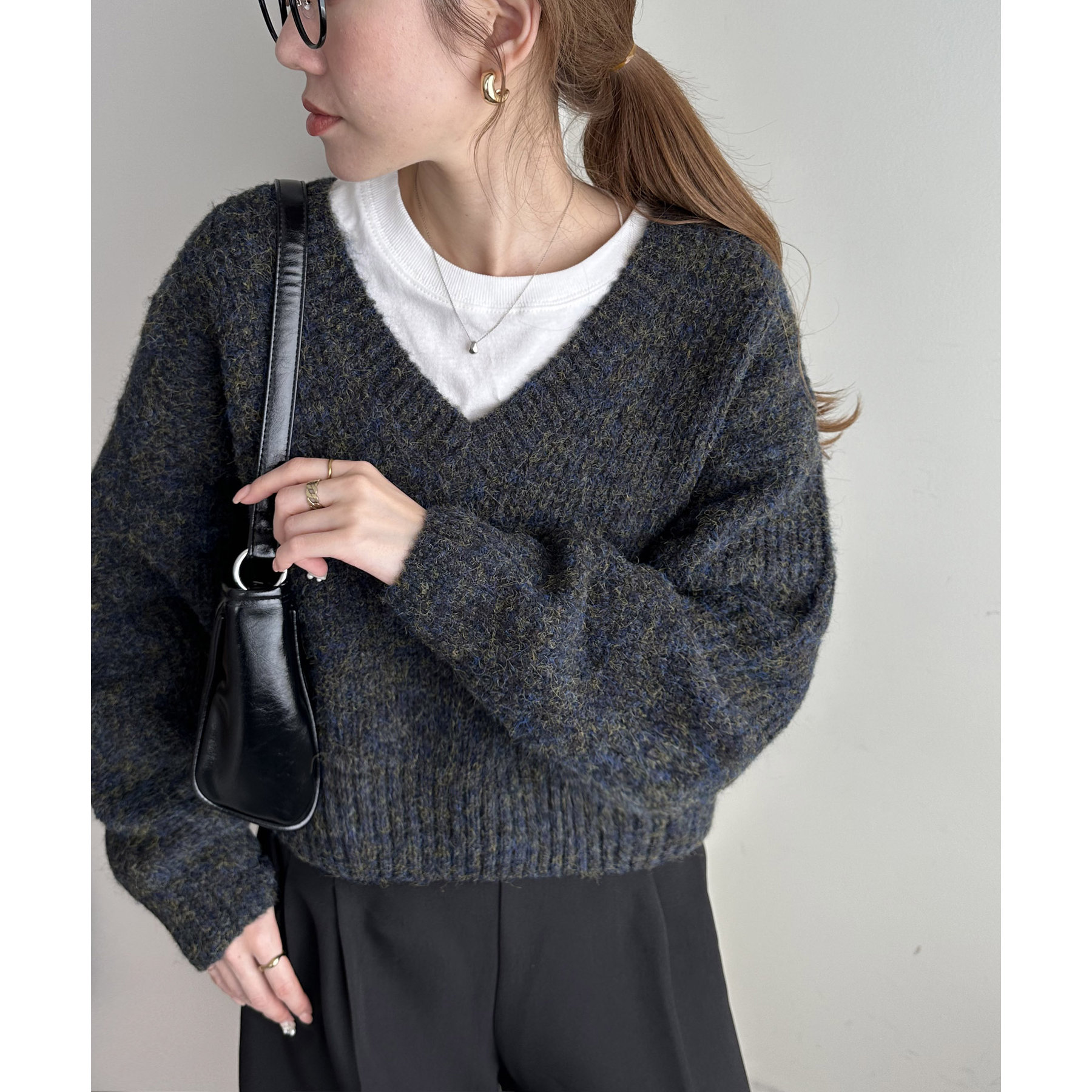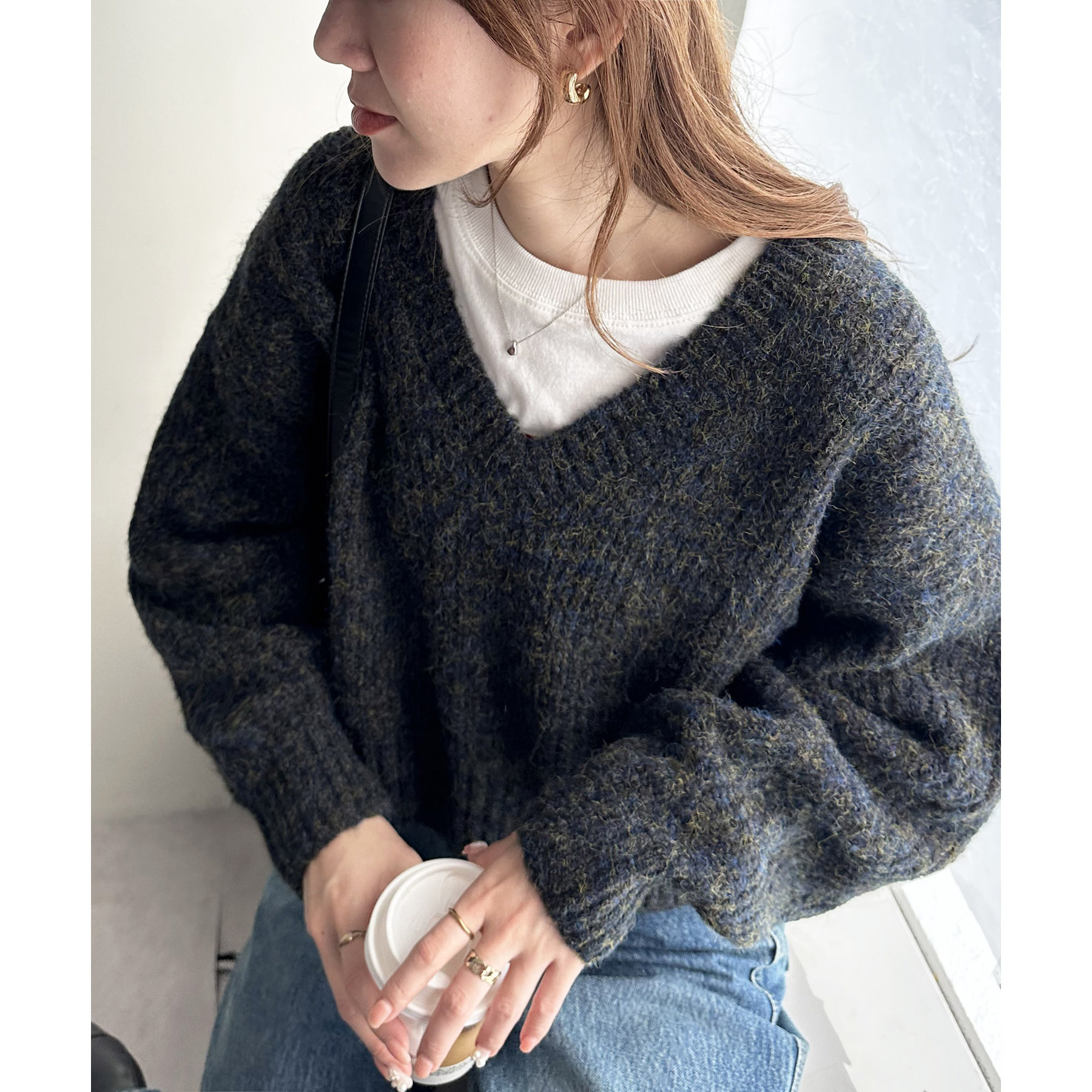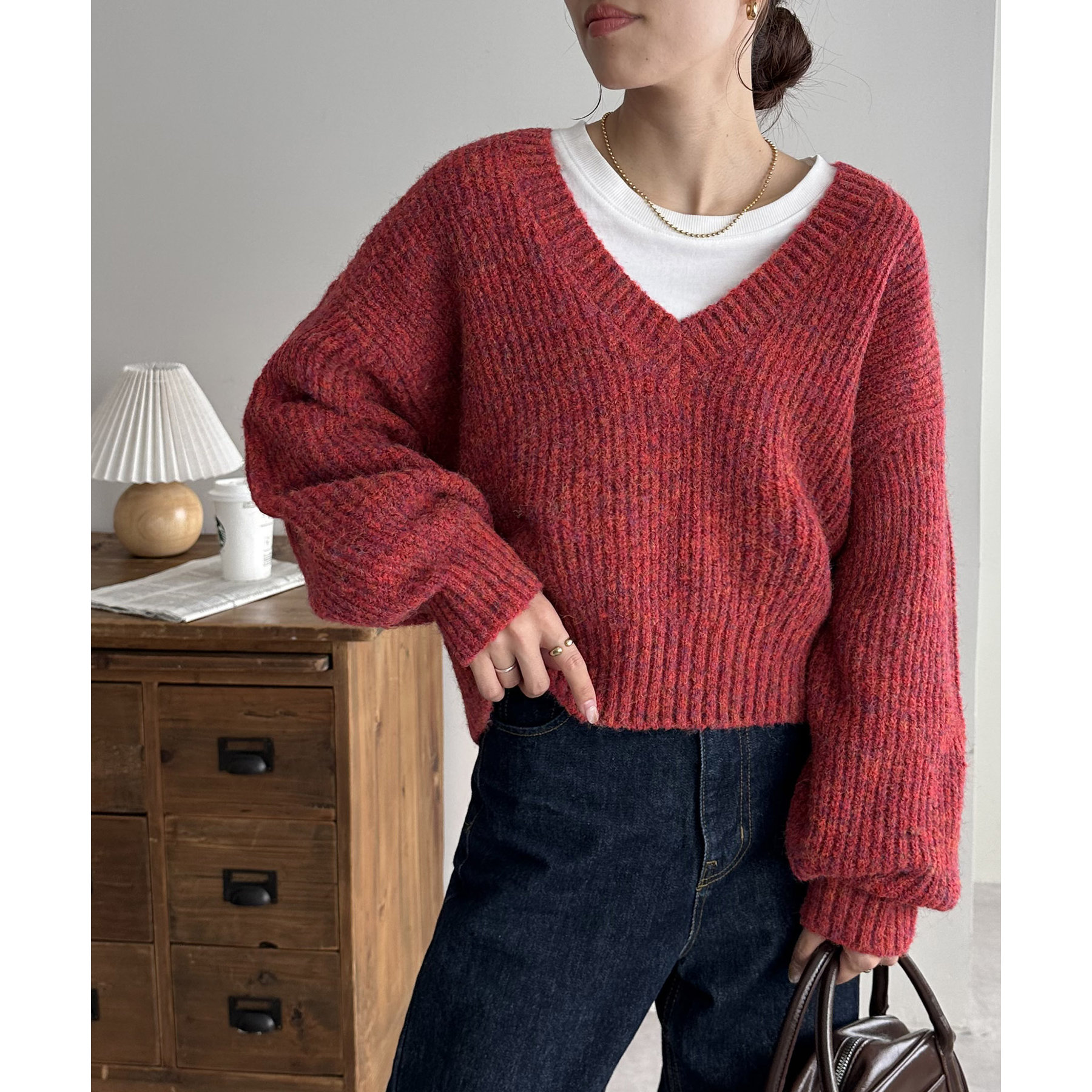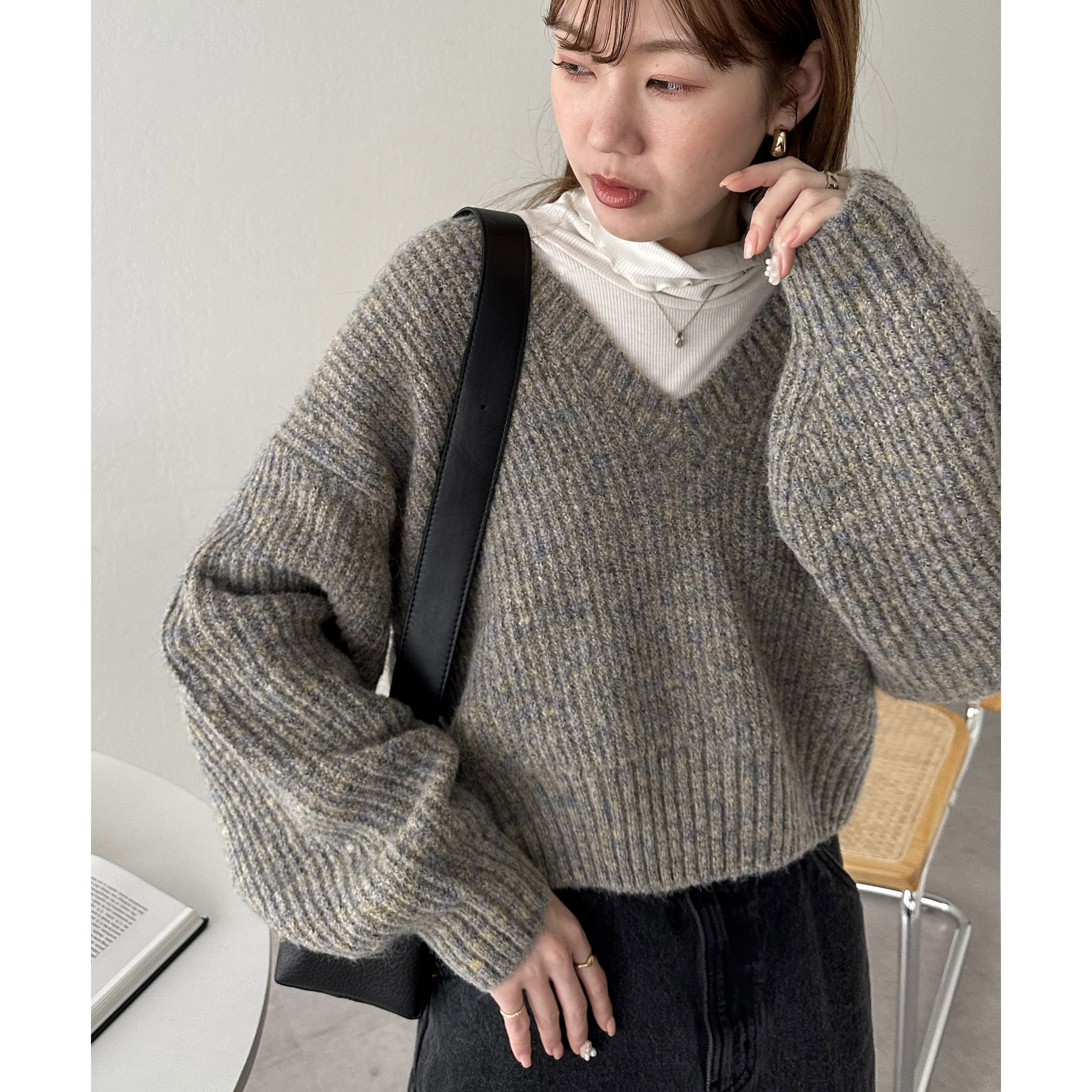 一枚で抜け感の出るVネックニット