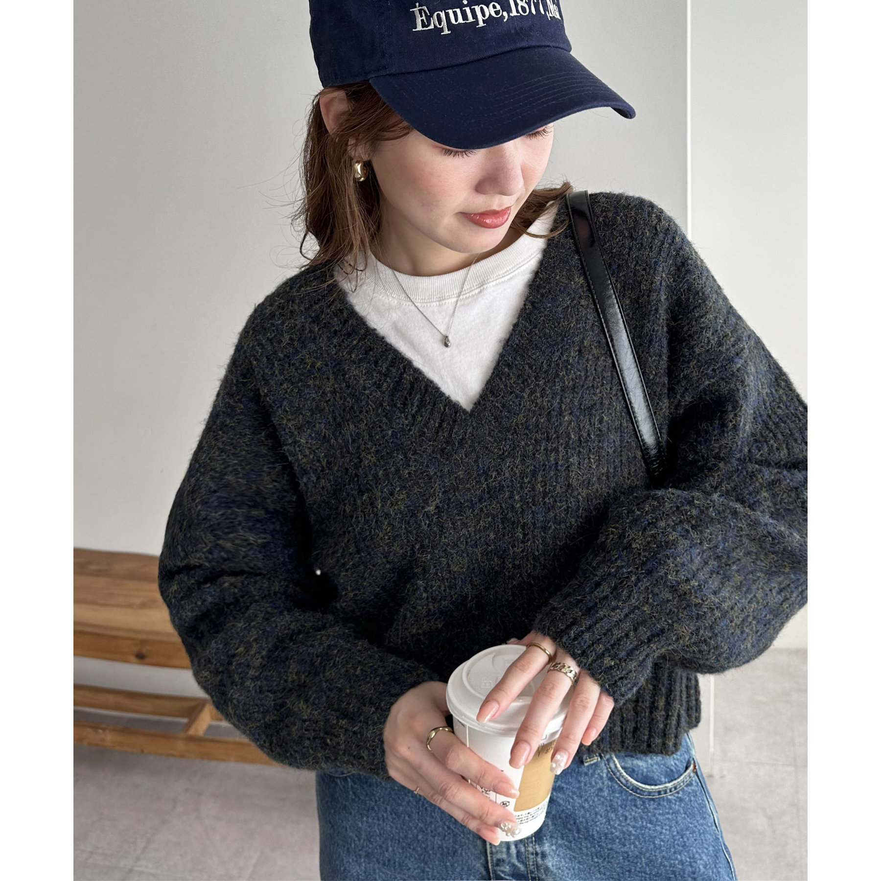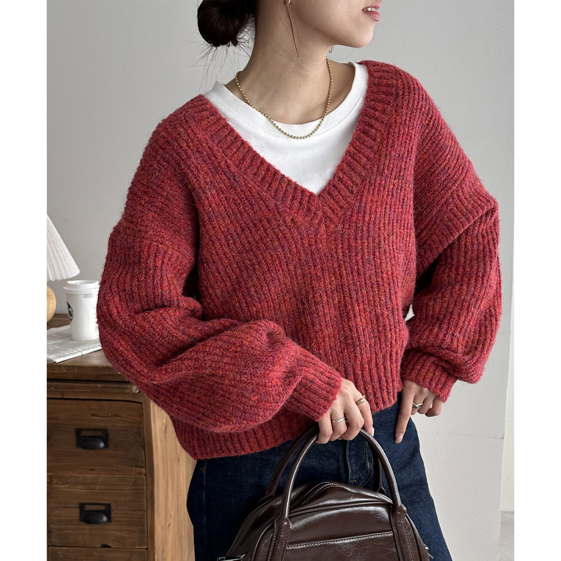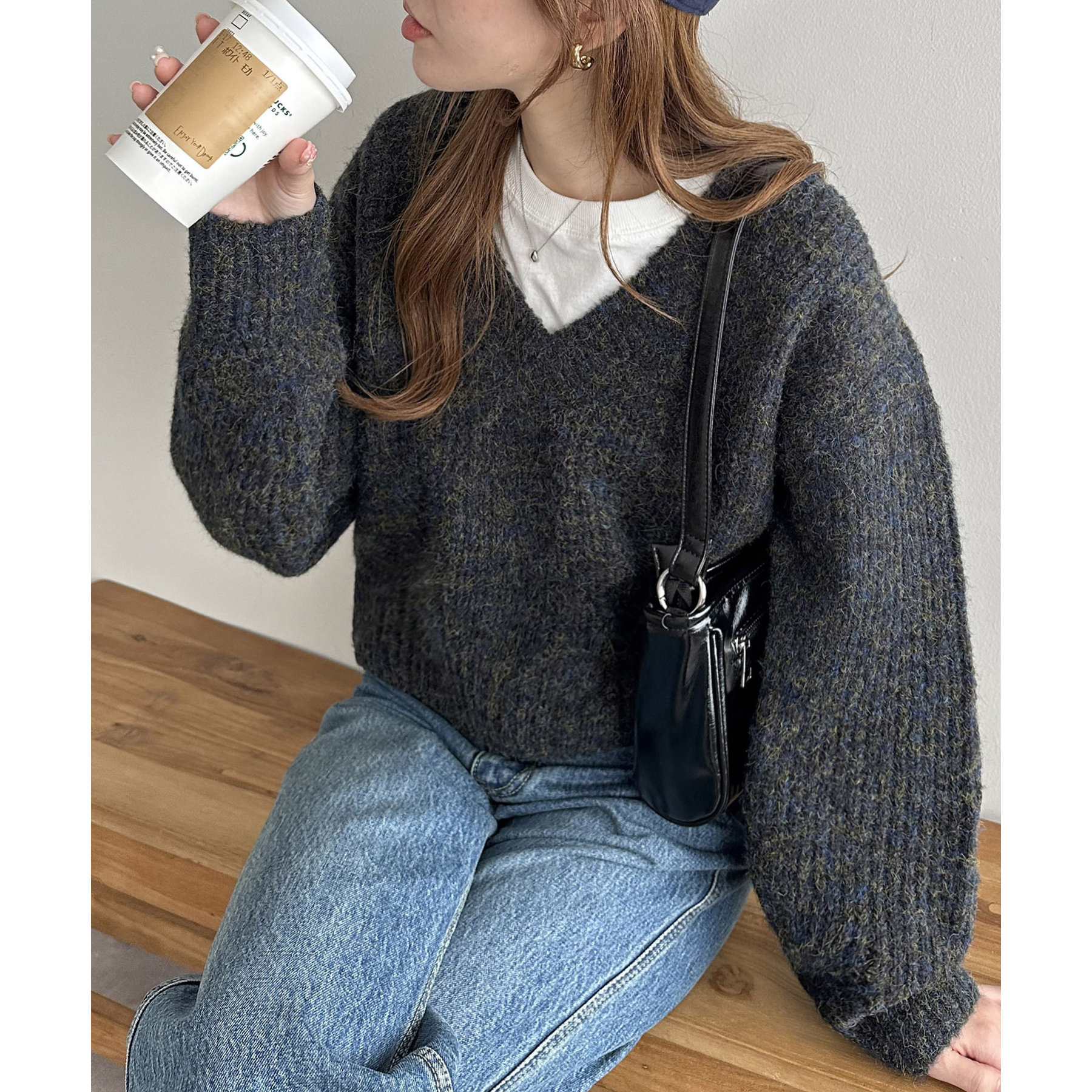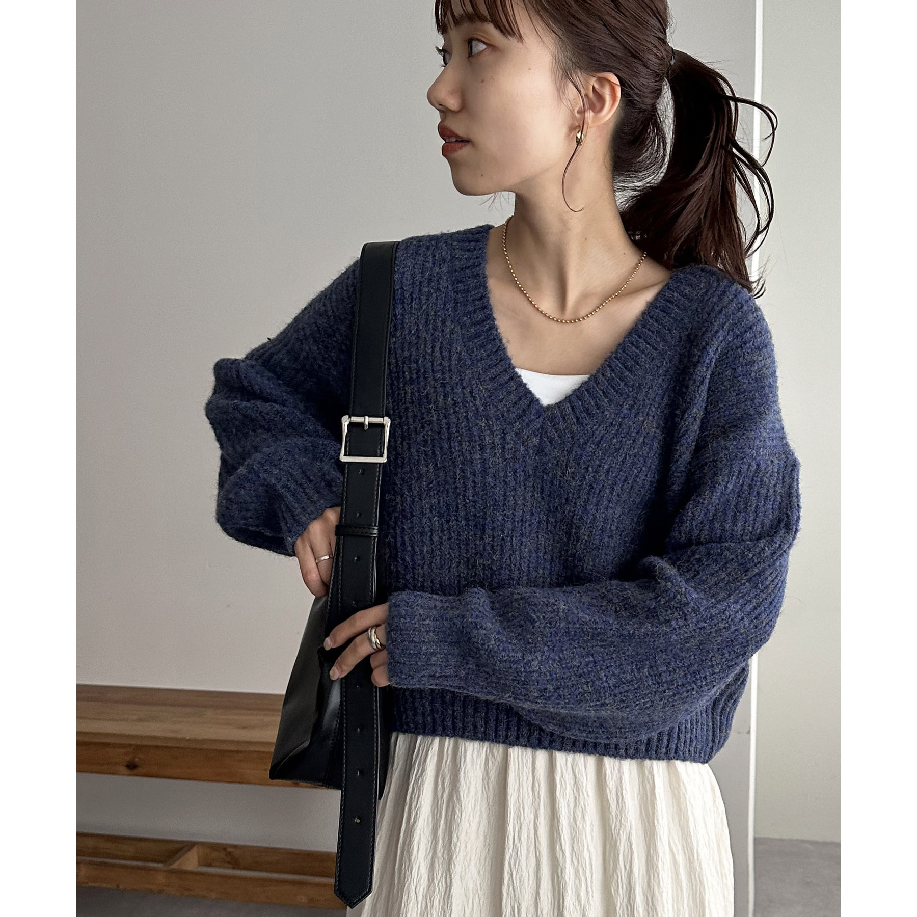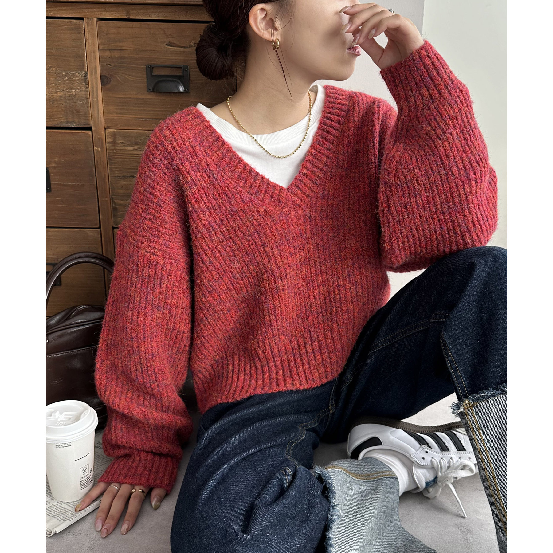 一枚で抜け感の出るVネックニット